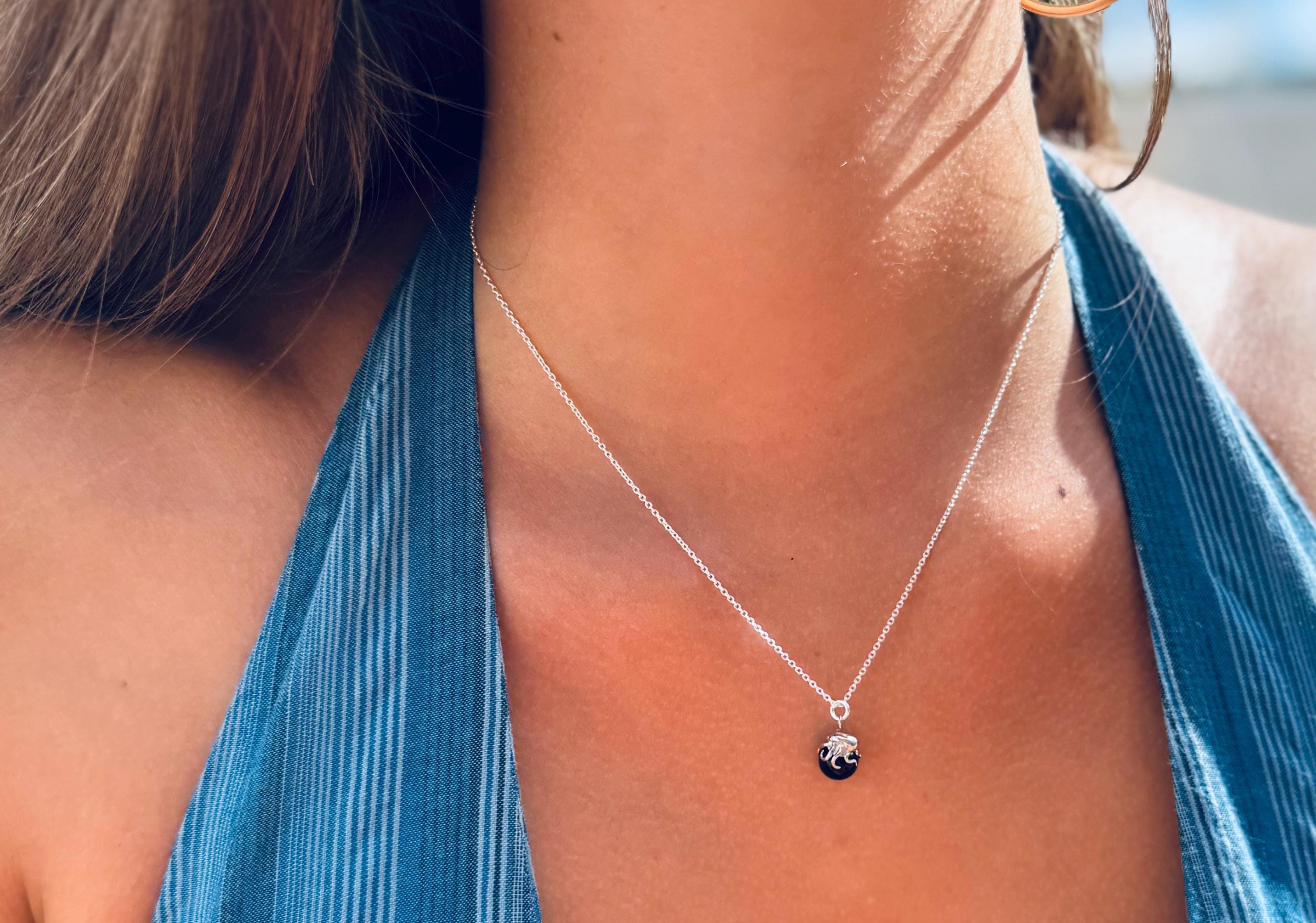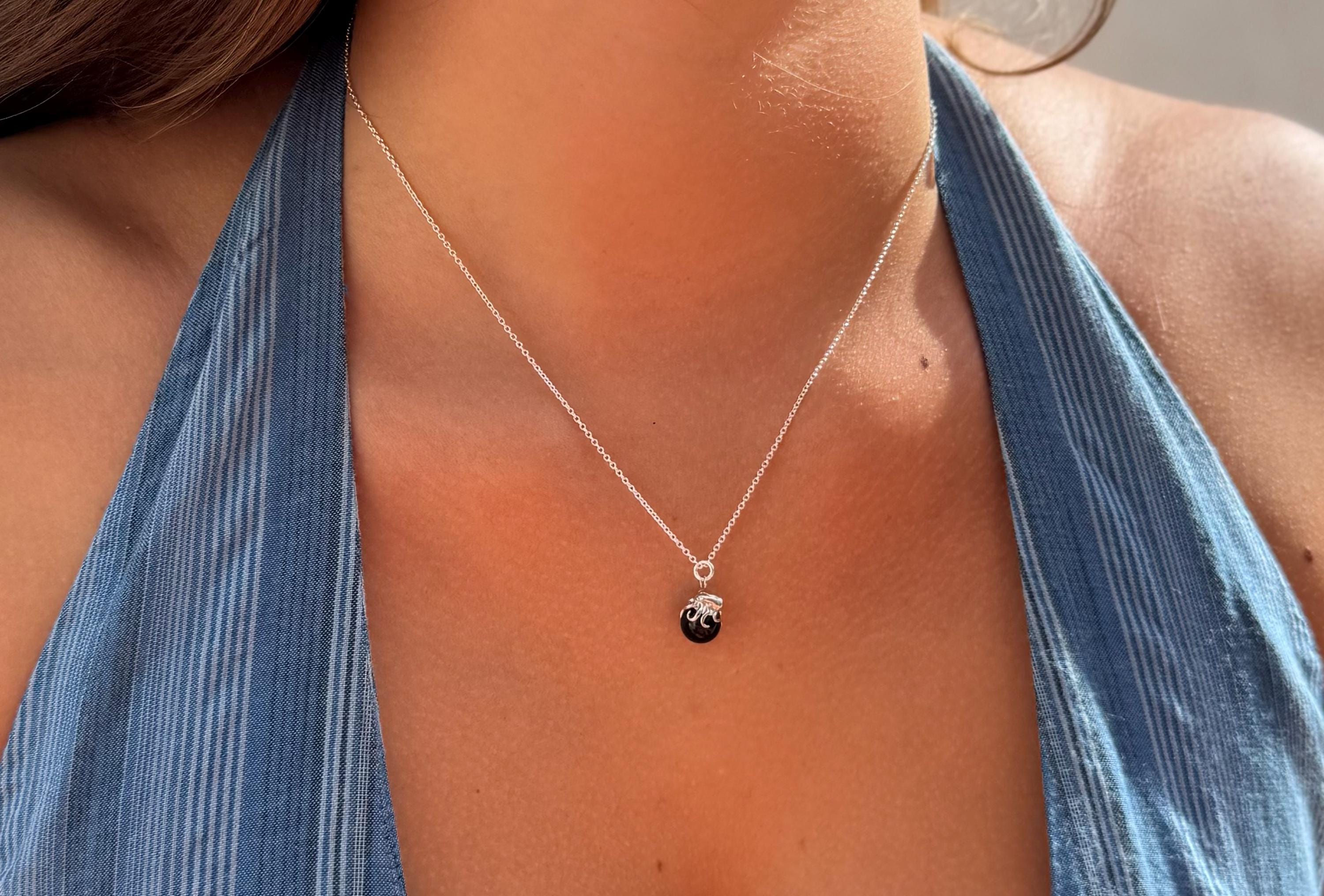 This extraordinary necklace combines timeless elegance with a touch of mysticism. The jet-black, smoothly polished stone is entwined with an artfully crafted octopus.