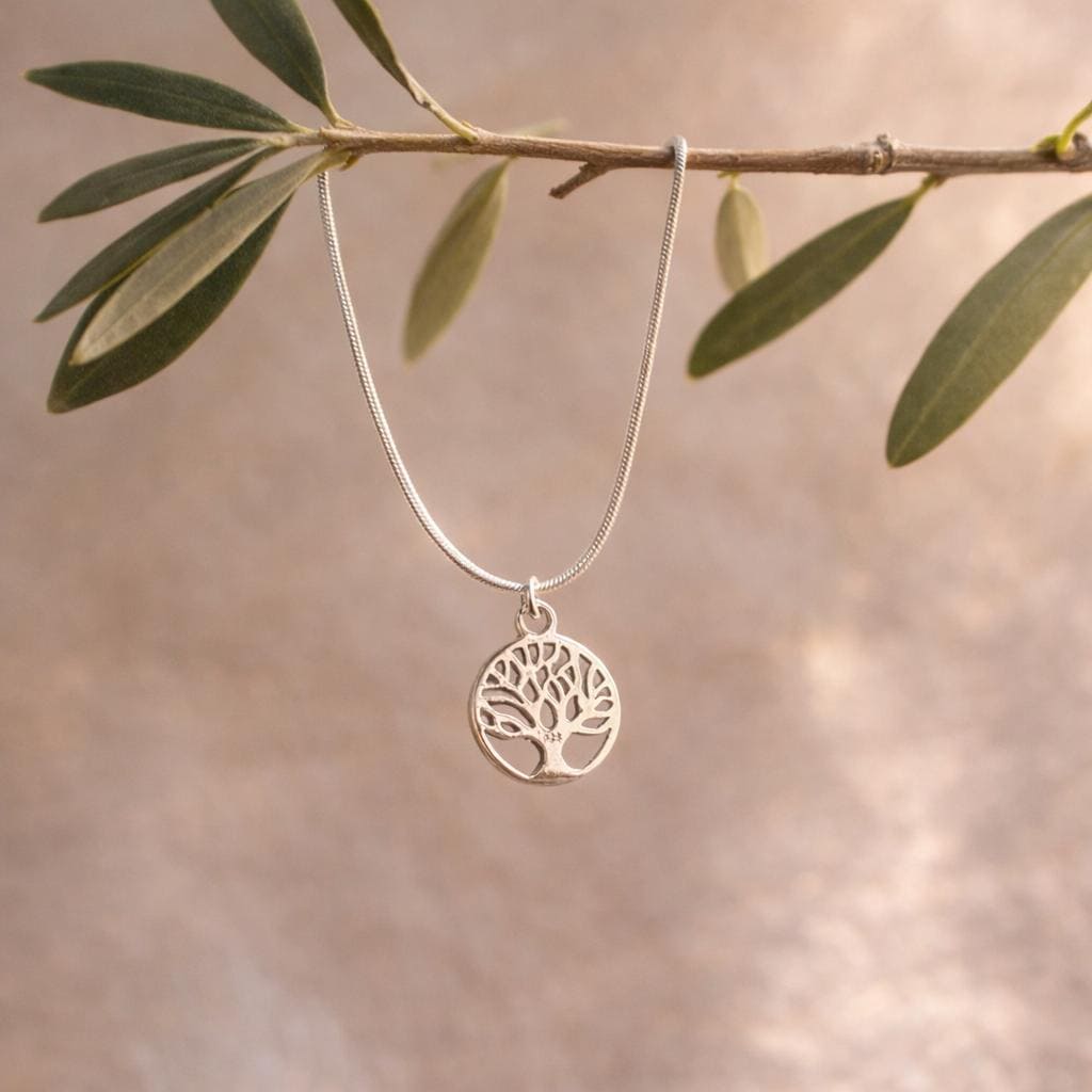 A delicate Tree of Life necklace in 925 sterling silver – a timeless symbol of growth, connection, and new beginnings.