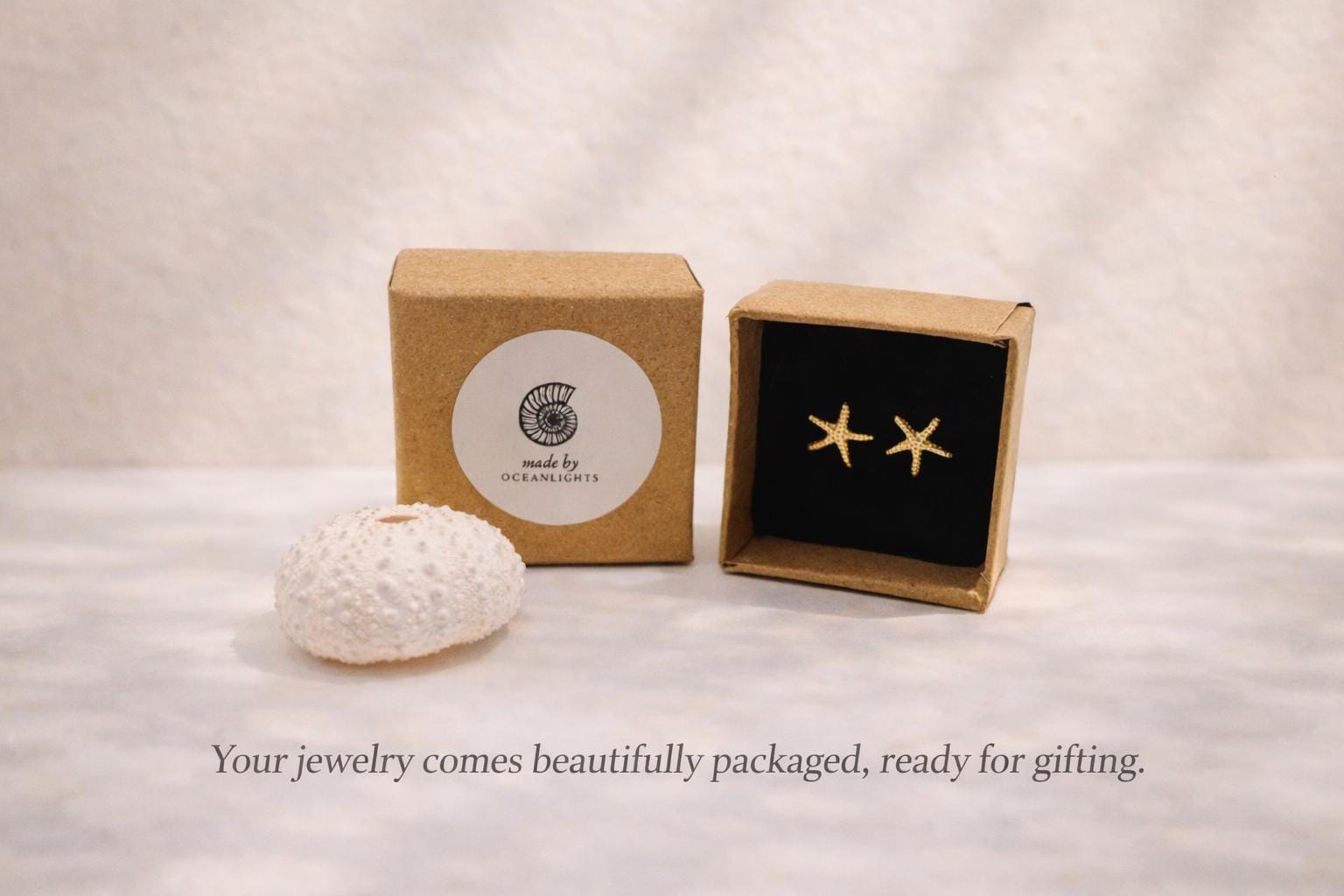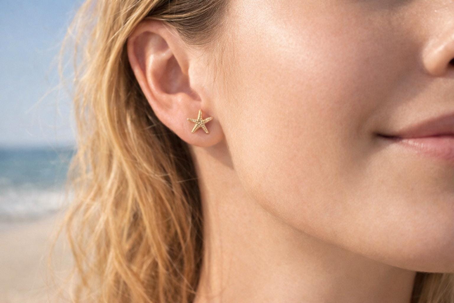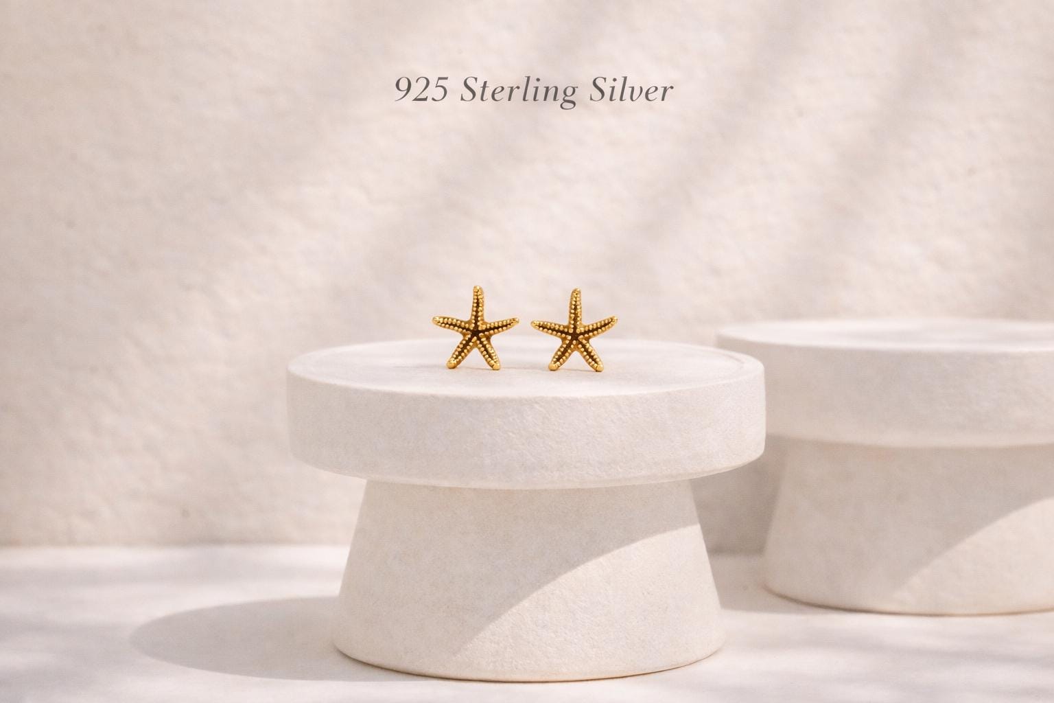 Fine starfish earrings, gold-plated on 925 sterling silver - delicate stud earrings with a clear shape and elegant shine. These minimalist starfish earrings are pleasantly light, skin-friendly, and ideal for everyday wear or special occasions. The design combines timeless simplicity with a touch of elegance - perfect for anyone who loves understated gold jewelry.