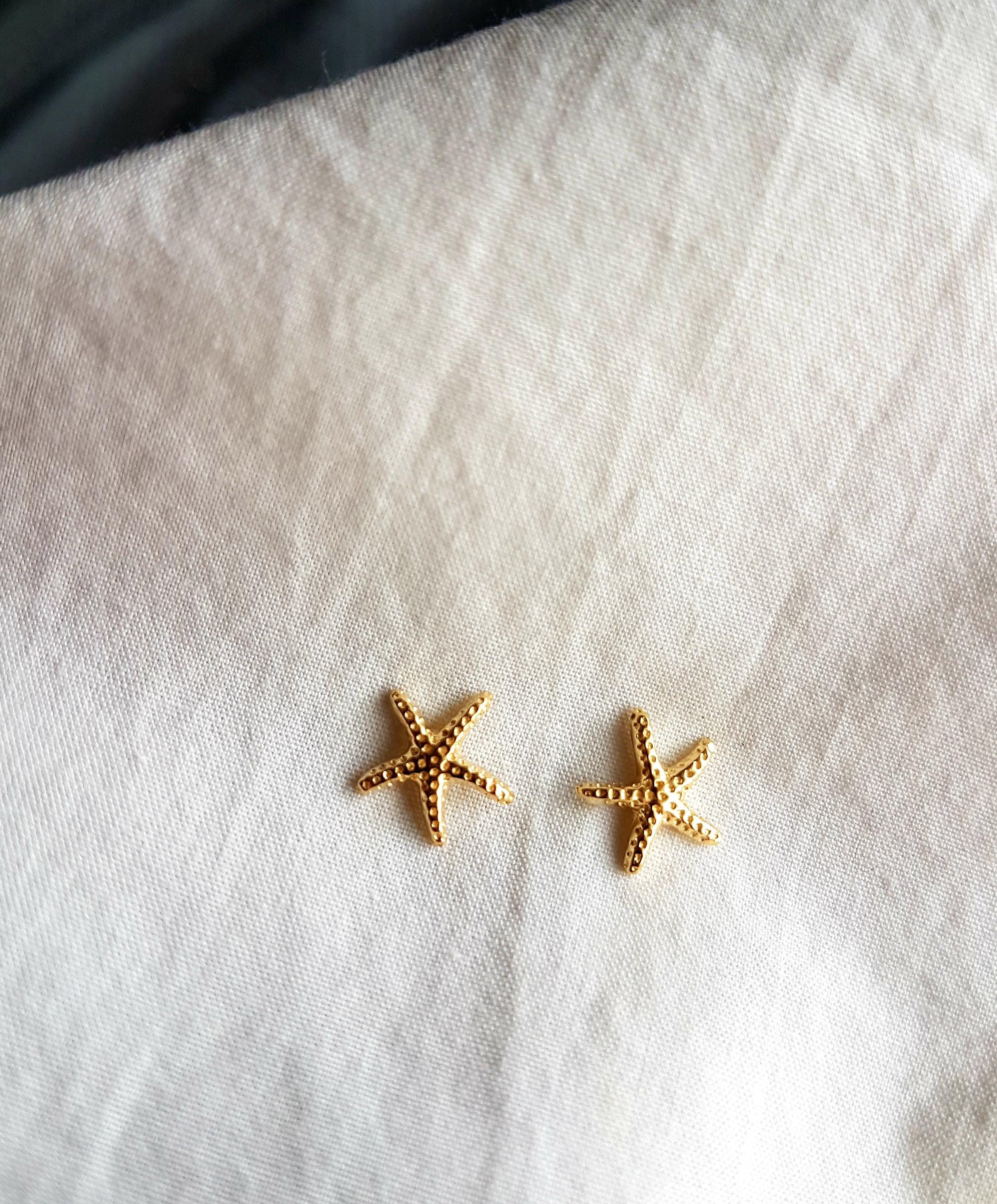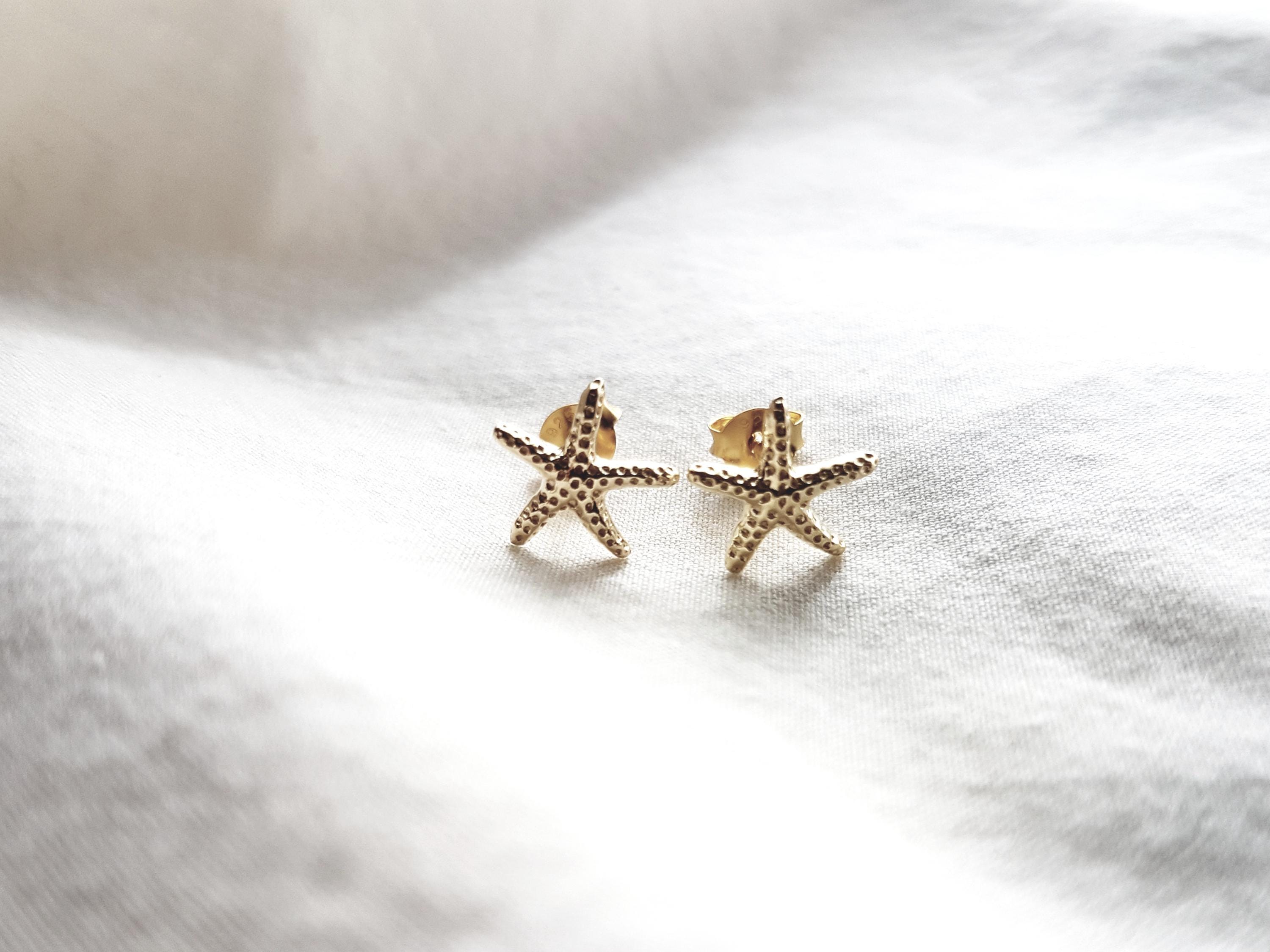 Fine starfish earrings, gold-plated on 925 sterling silver - delicate stud earrings with a clear shape and elegant shine. These minimalist starfish earrings are pleasantly light, skin-friendly, and ideal for everyday wear or special occasions. The design combines timeless simplicity with a touch of elegance - perfect for anyone who loves understated gold jewelry.