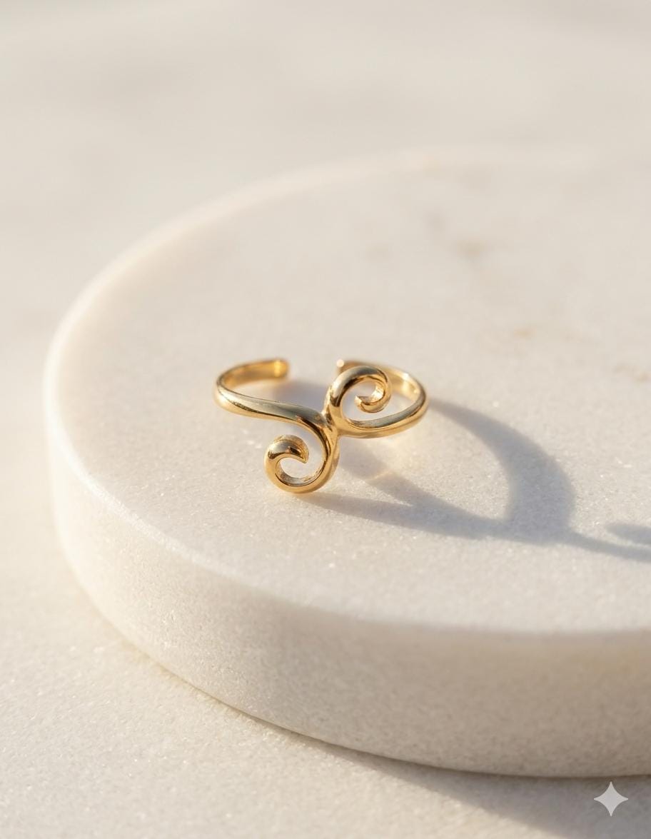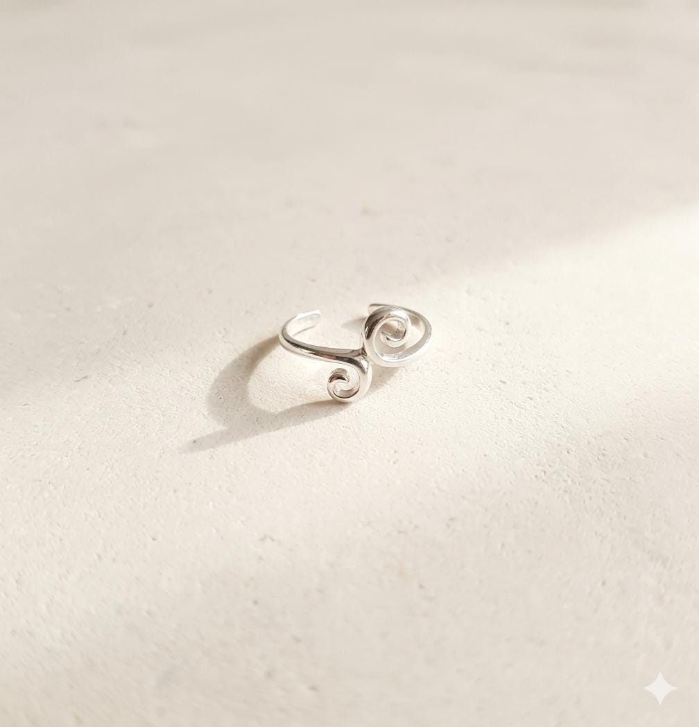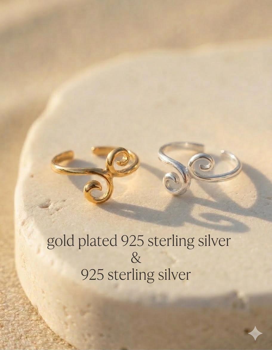 This delicate toe ring made of 925 sterling silver brings a subtle summer sparkle to your feet. With its delicate, curved design, it's a stylish eye-catcher—whether worn barefoot on the beach, on vacation, or with open sandals for everyday wear. Thanks to its open shape, the ring is adjustable and can be customized. You can choose between classic silver or elegant 14-karat gold plating—so the ring complements every look.