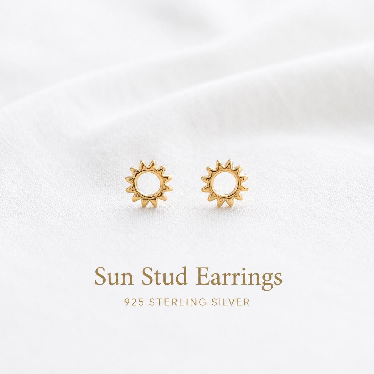Delicate gold-plated stud earrings with a small sun – a minimalist design symbolizing warmth and light. A special piece of jewelry that brings a touch of sunshine even on gray winter days – ideal as a thoughtful gift for women who appreciate naturalness and minimalist design.