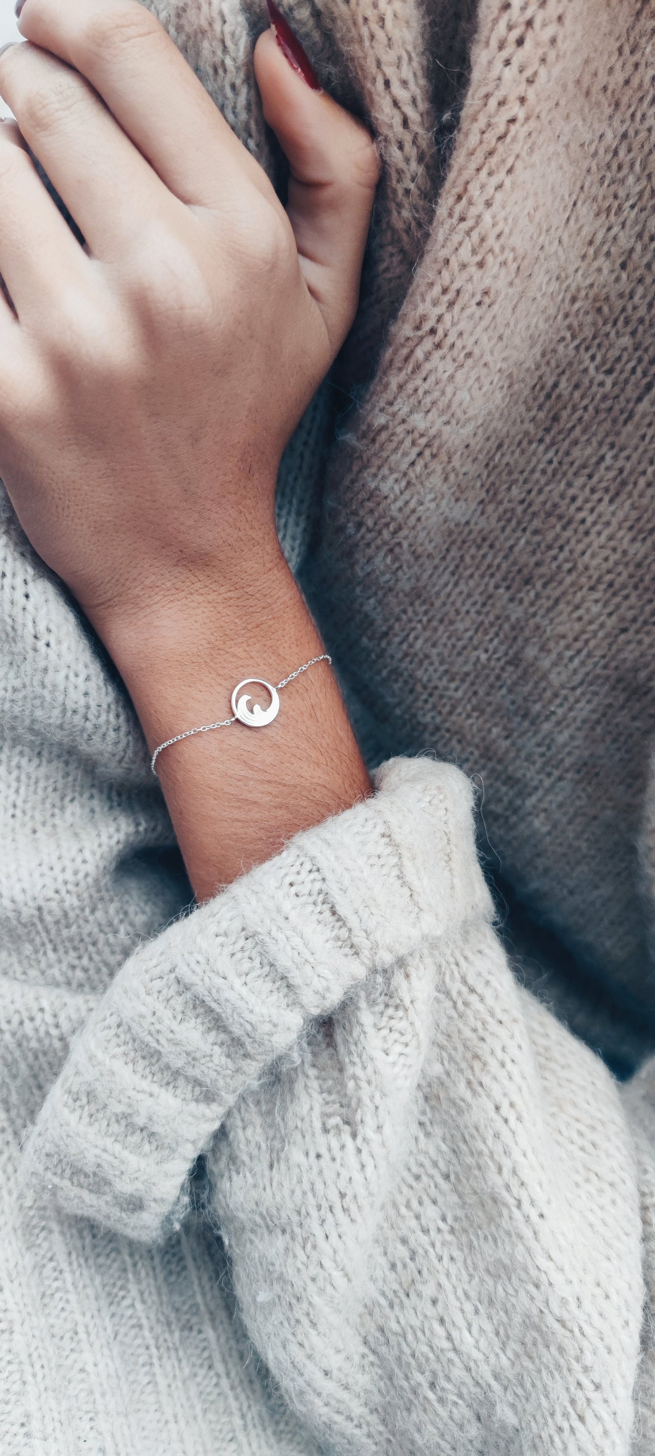 A delicate 925 sterling silver bracelet with a wave symbol, inspired by the ocean – a timeless gift for surfers and sea lovers. Minimalist, meaningful, and beautifully crafted.