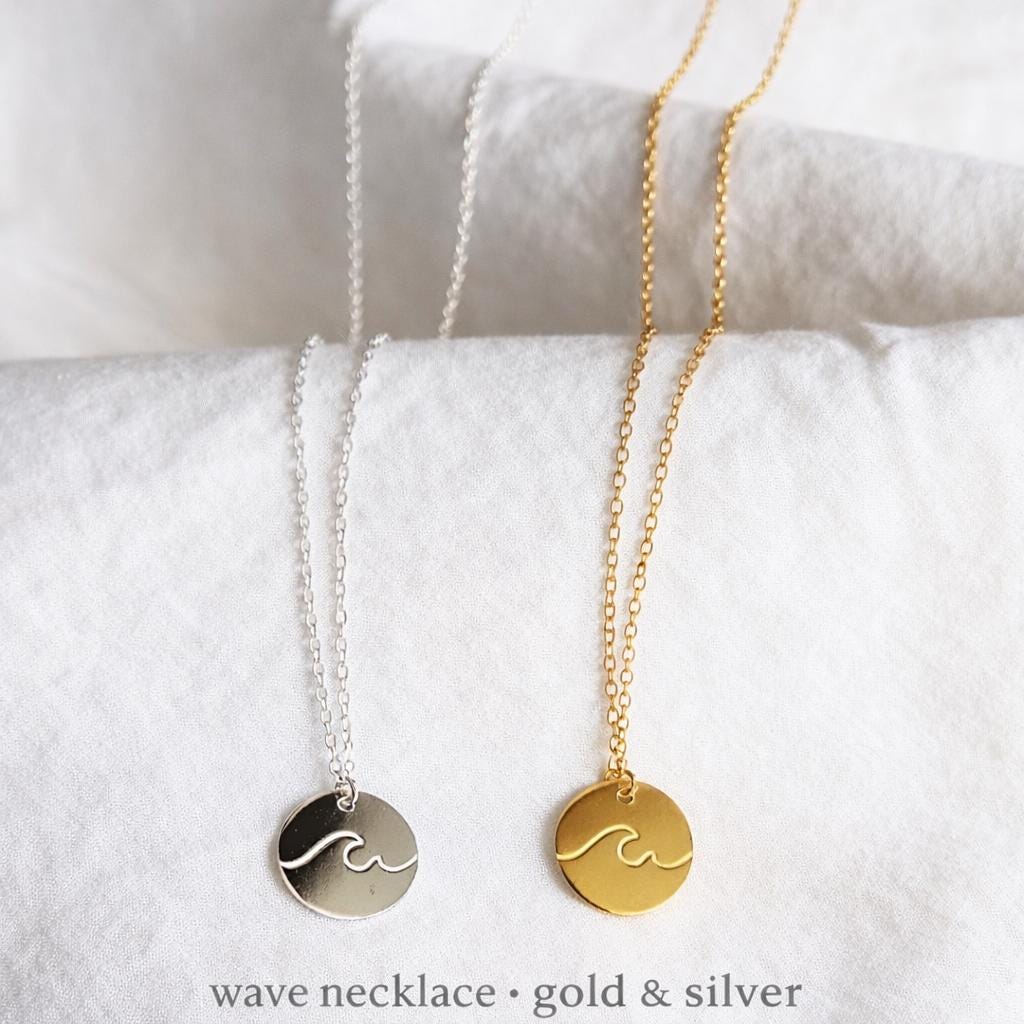 • 1x Sterling Silver wave Pendant Necklace, available in silver or gold