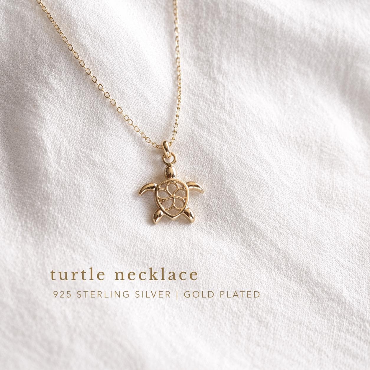 A delicate necklace with a turtle pendant, crafted from high-quality 925 sterling silver with an 18-karat multi-layer gold plating. The piece is coated with two layers of gold – a base and a top layer – which enhances the durability of the plating. The necklace is available in lengths of 40 cm, 45 cm, and 50 cm.