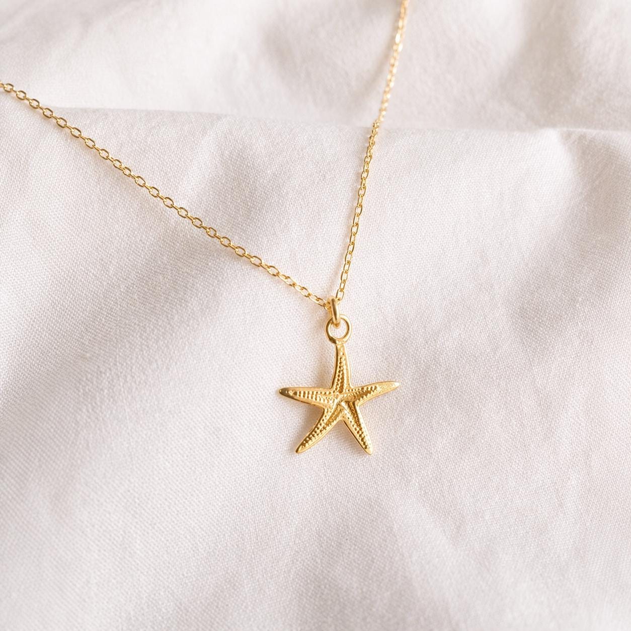 Necklace with a small starfish made of high-quality 925 sterling silver with 18 karat multi-layer gold plating - maritime, high-quality and elegant.