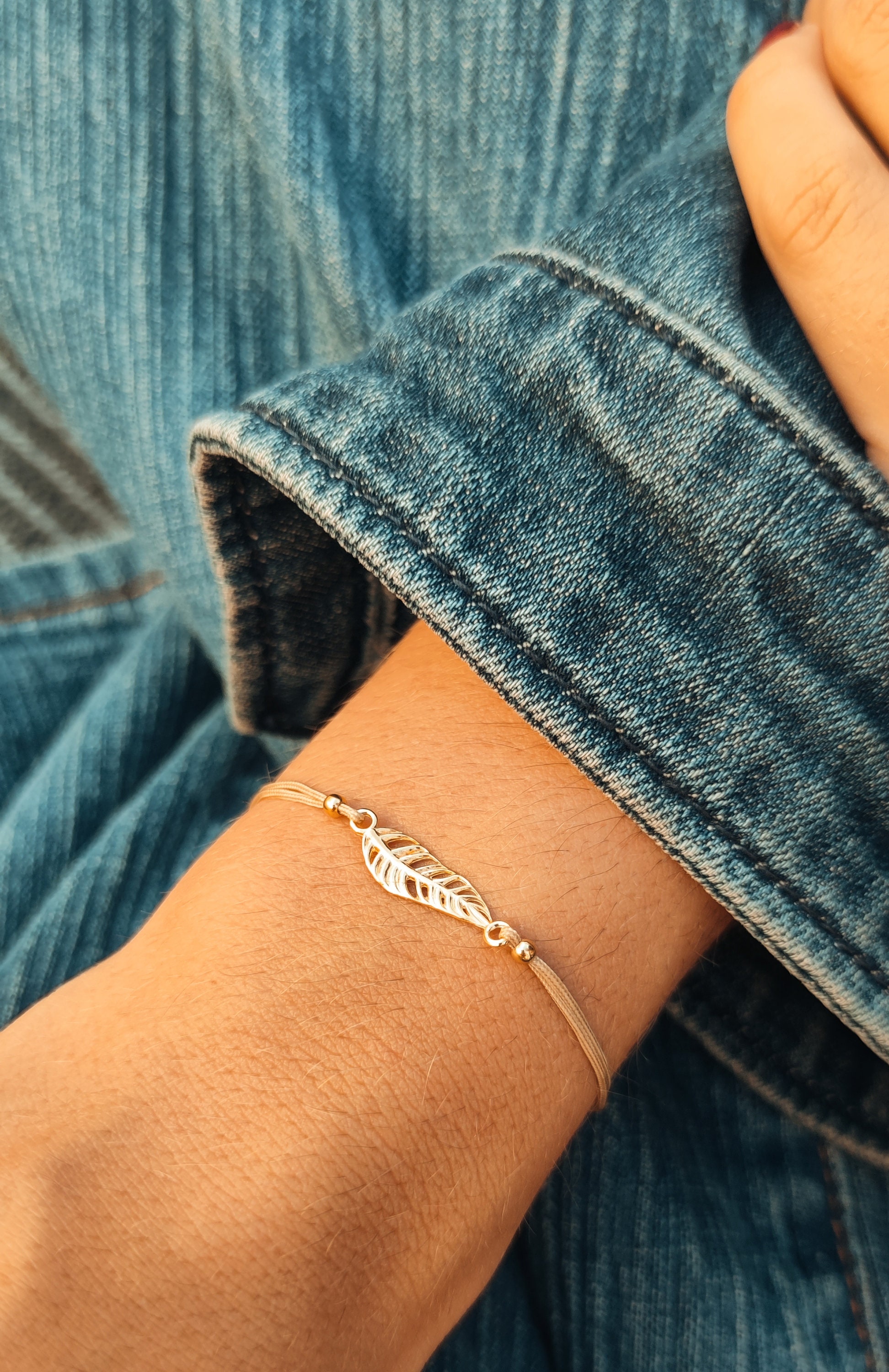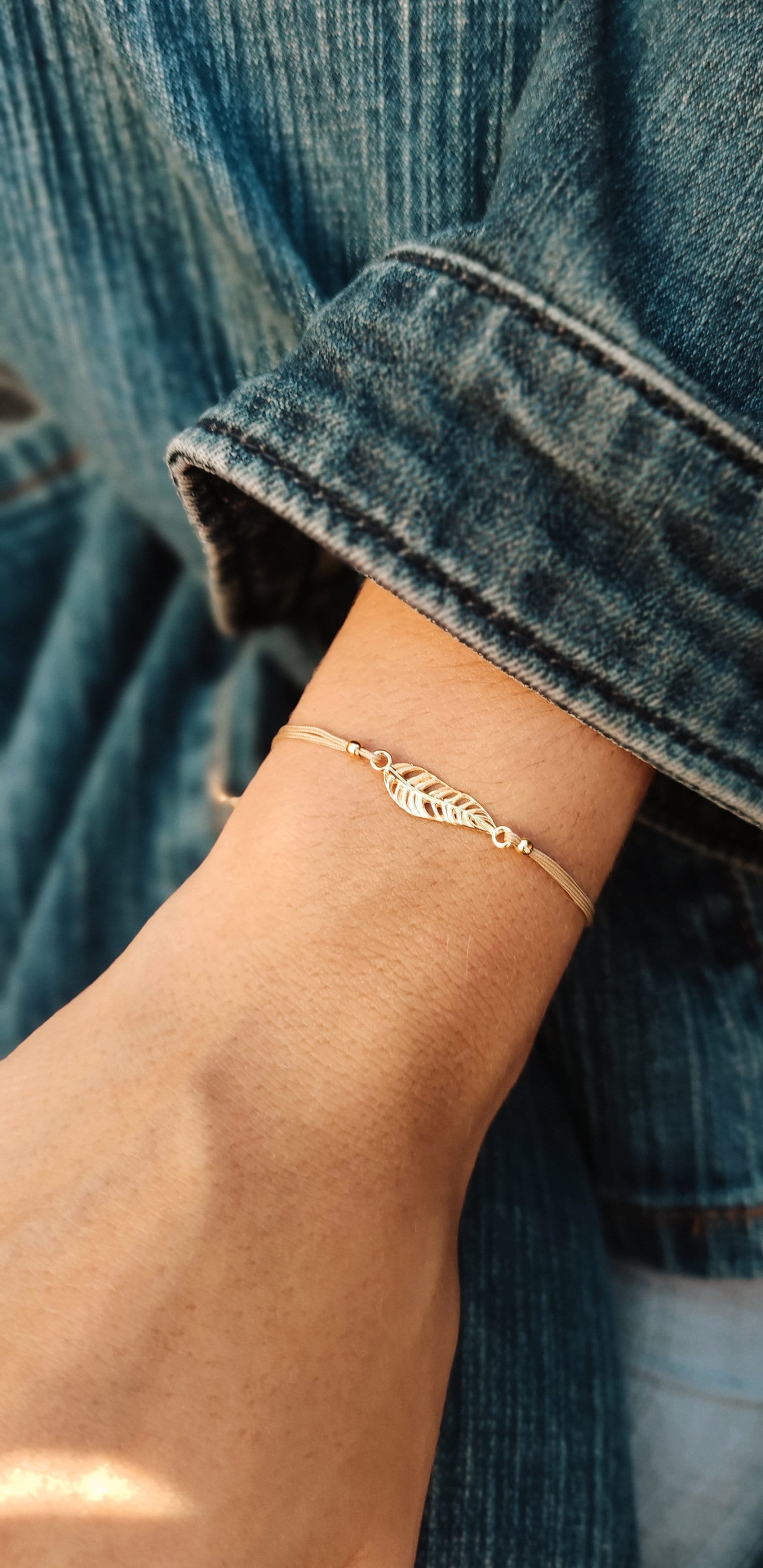 Bracelet with a small spring, plated in 14-karat gold, available in a variety of colors. The bracelet can be easily adjusted to a smaller or larger size thanks to the sliding clasp, but has a maximum size of approximately 23 cm. The spring measures 18 mm.