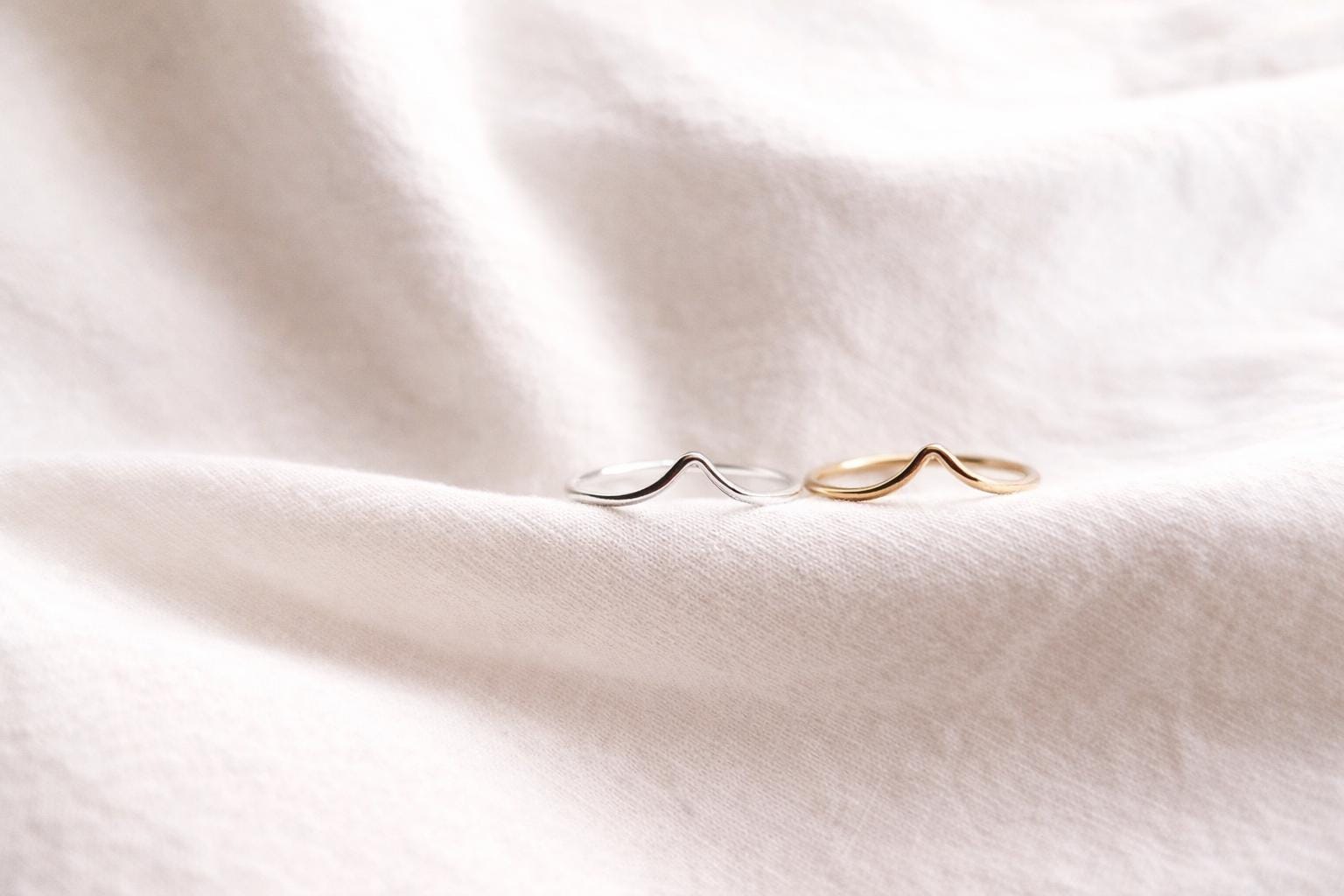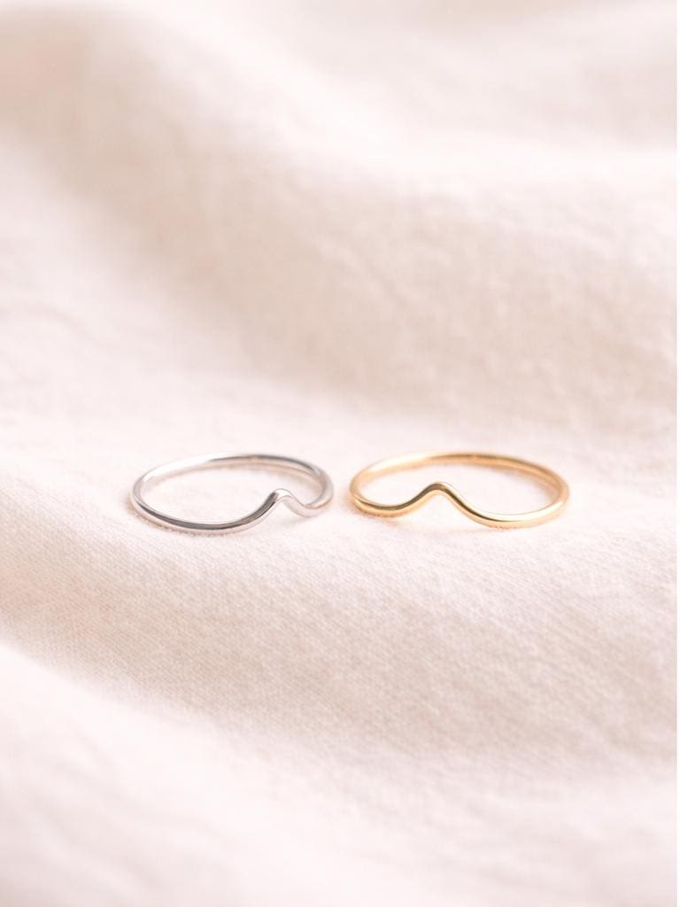 Minimalist wave ring. Available in 925 sterling silver or gold-filled. Gold-filled is particularly robust and durable. It's a high-quality alternative to real gold. Gold-filled has a gold layer 100 times thicker than regular gold plating, making it particularly durable.