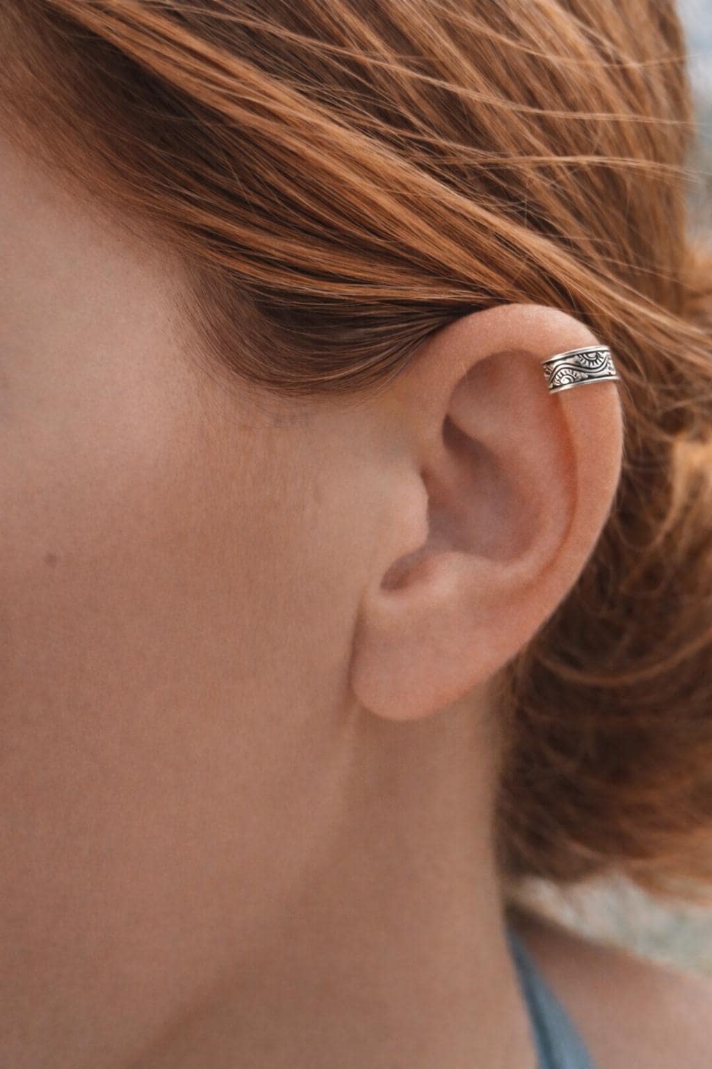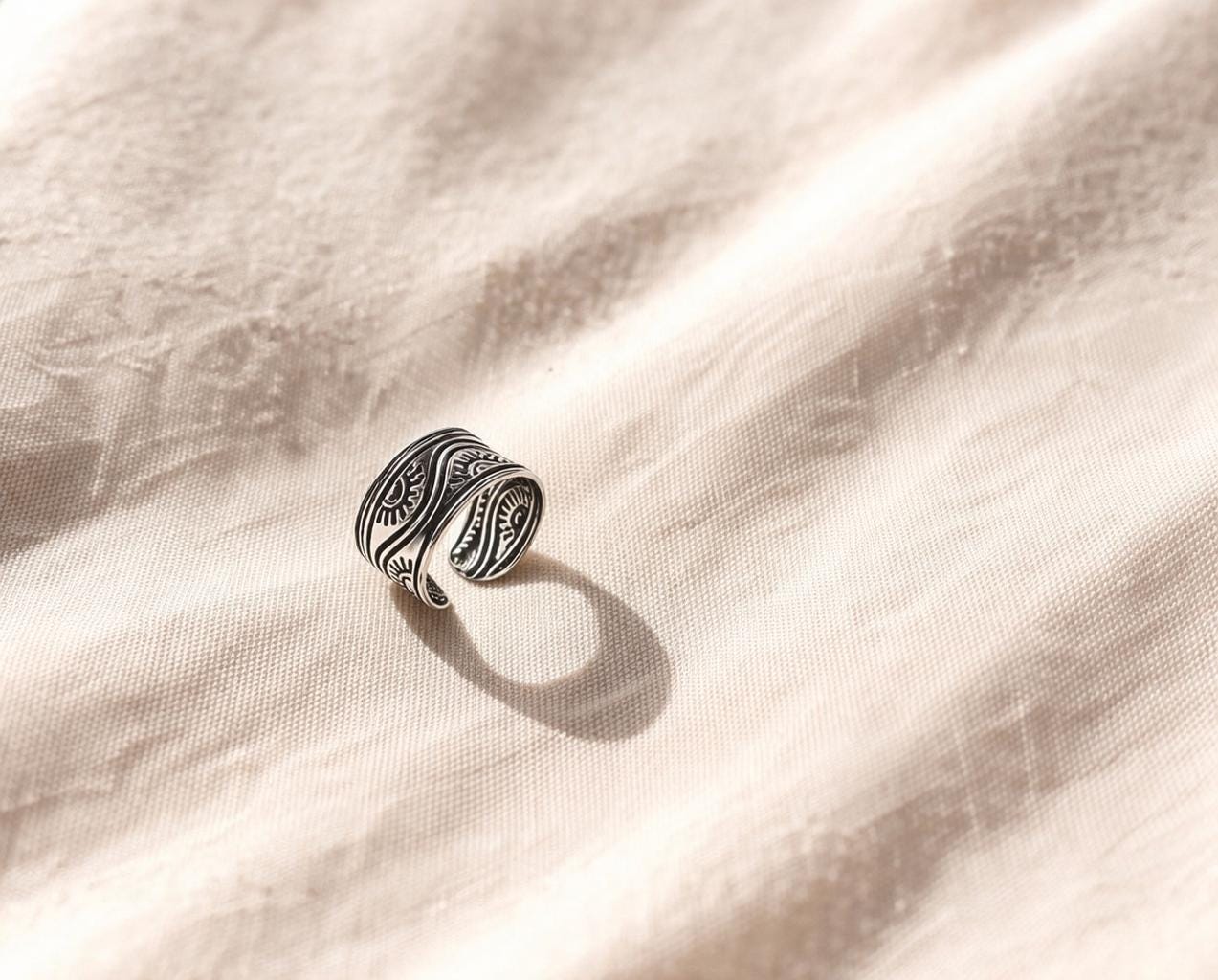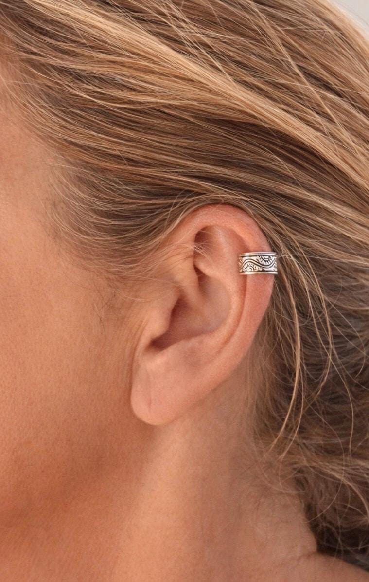 Ear cuff with a sun pattern made of 925 sterling silver. No piercing is required to wear this ear cuff! This ear cuff simply clips onto the outer, upper, or middle part of the ear and can be adjusted to your liking with a little pressure.