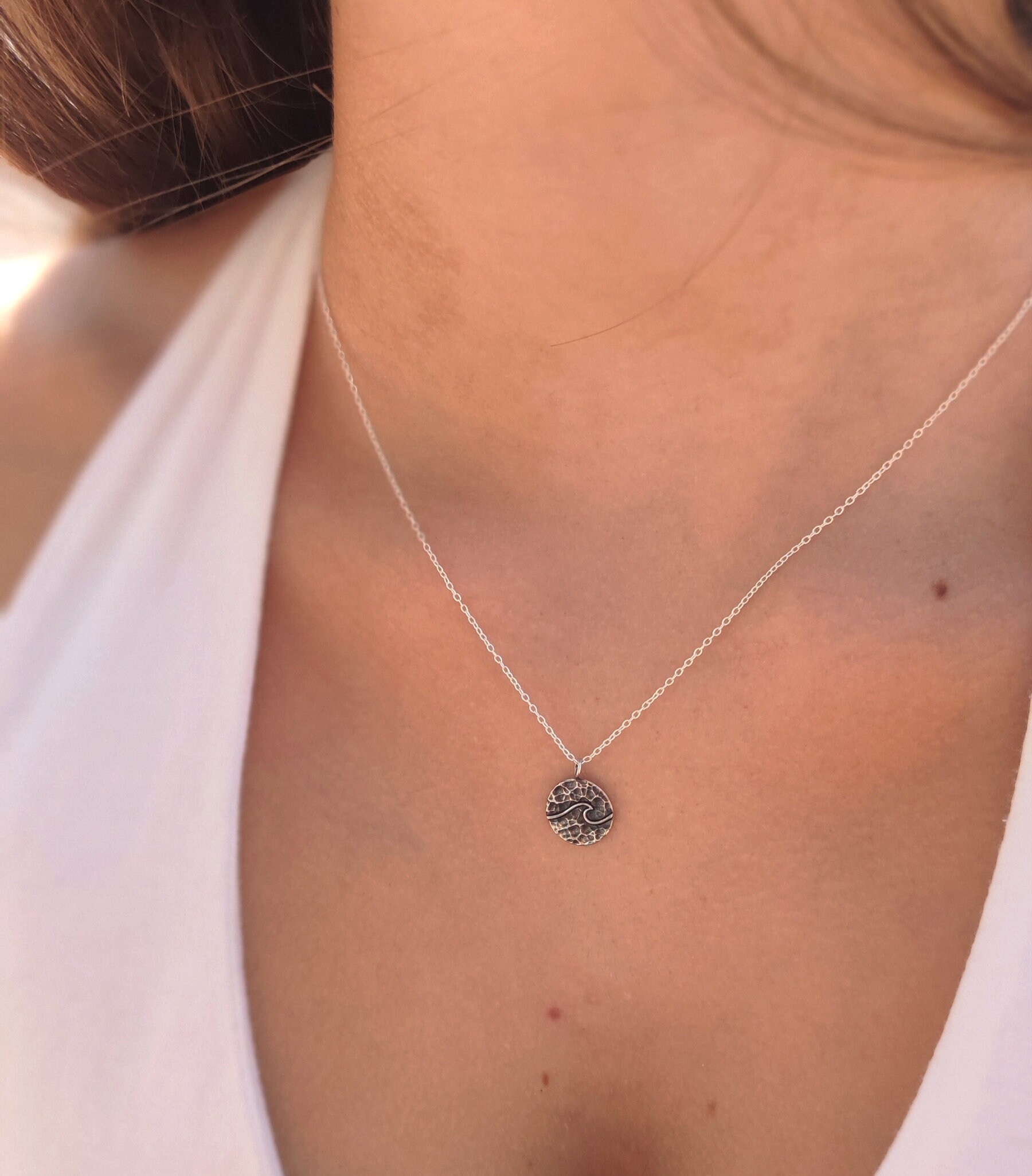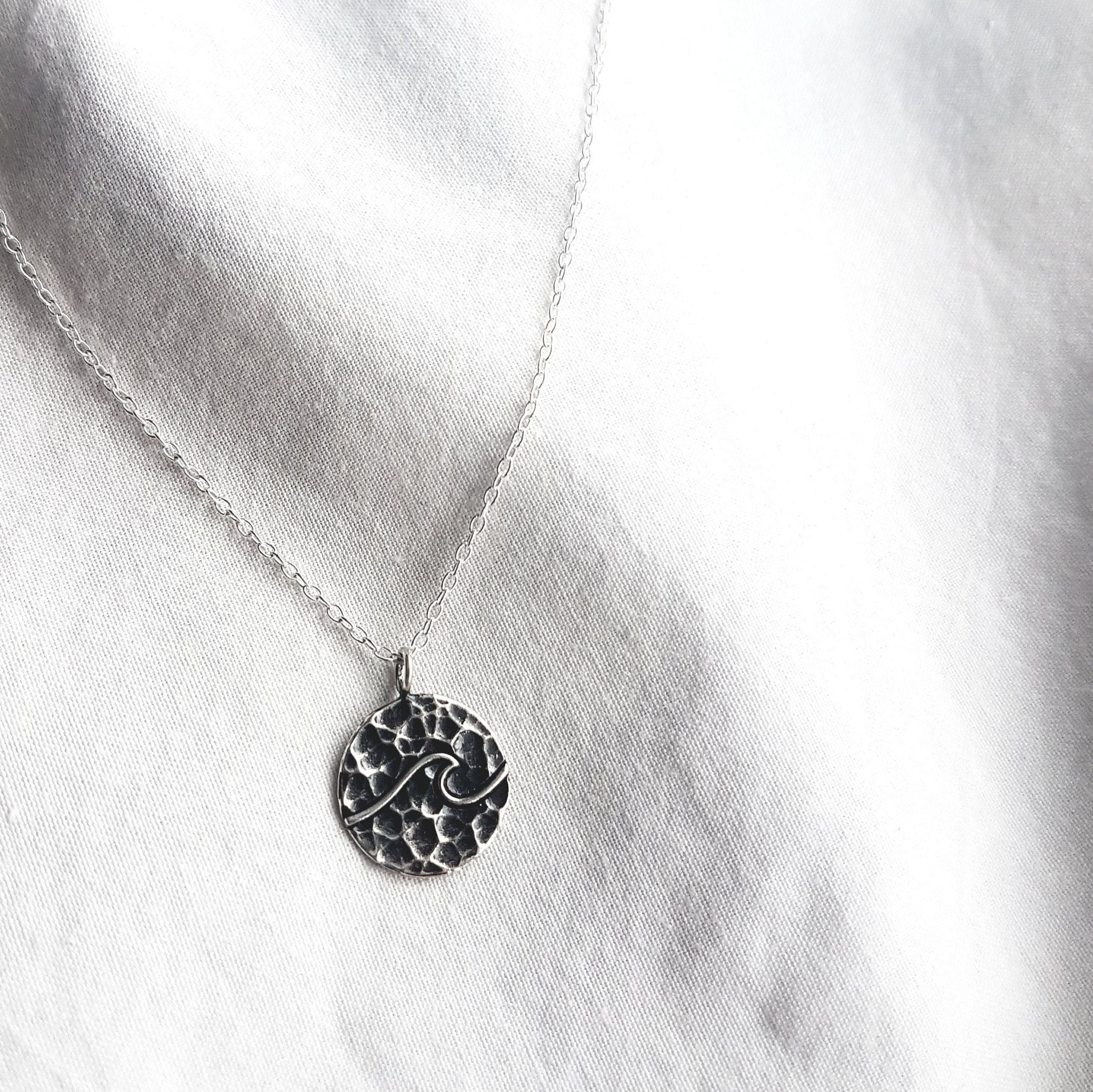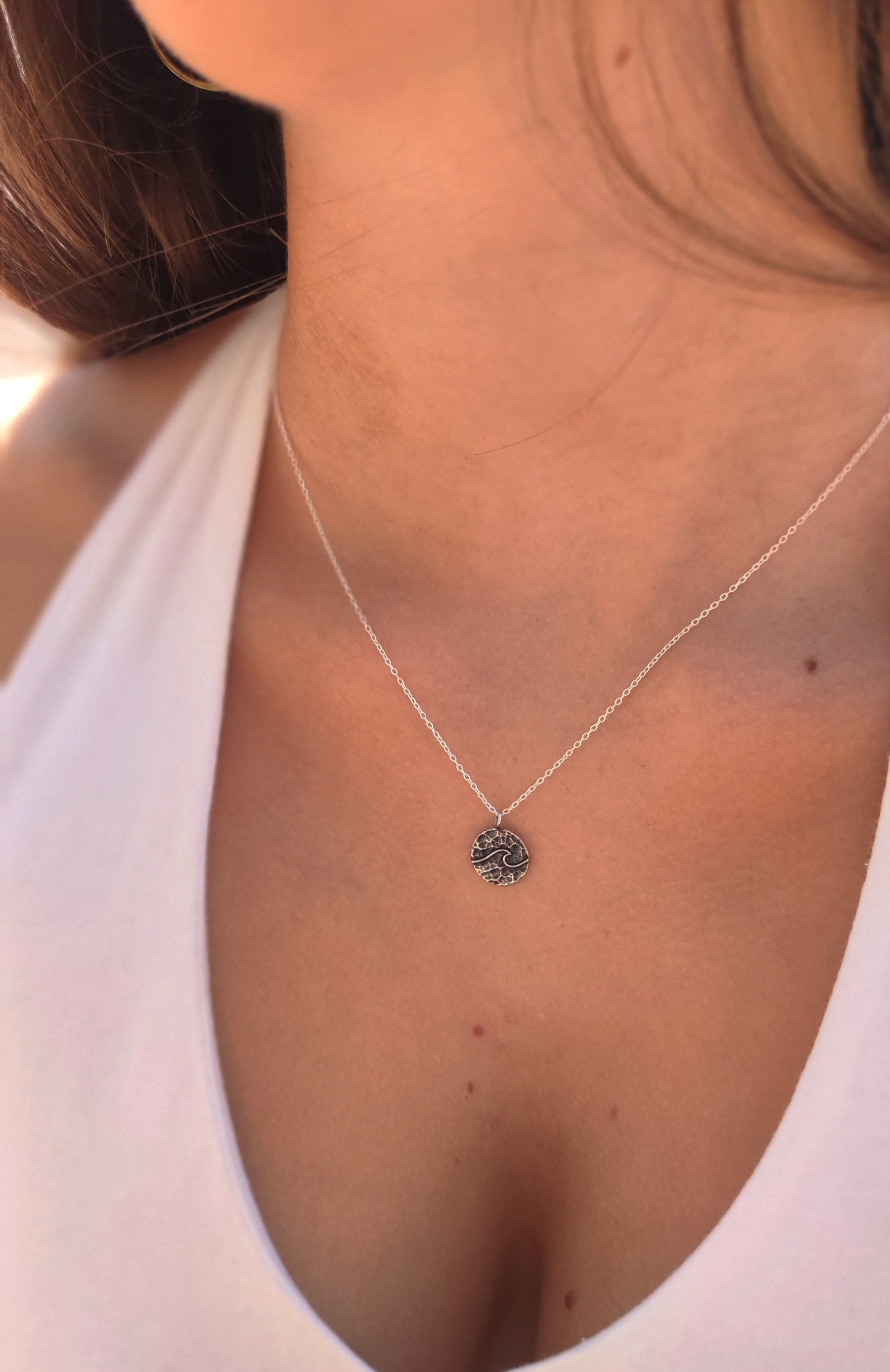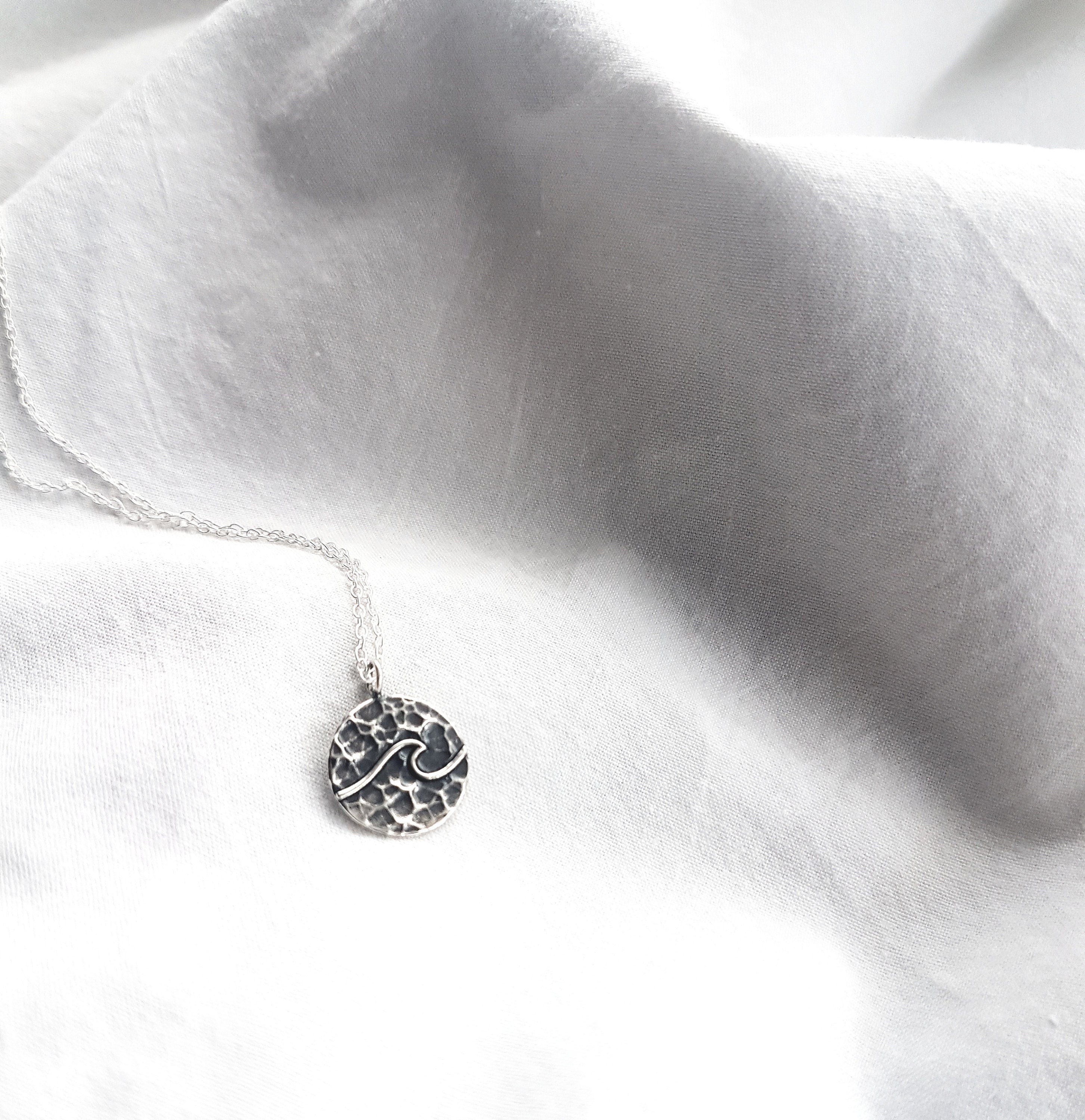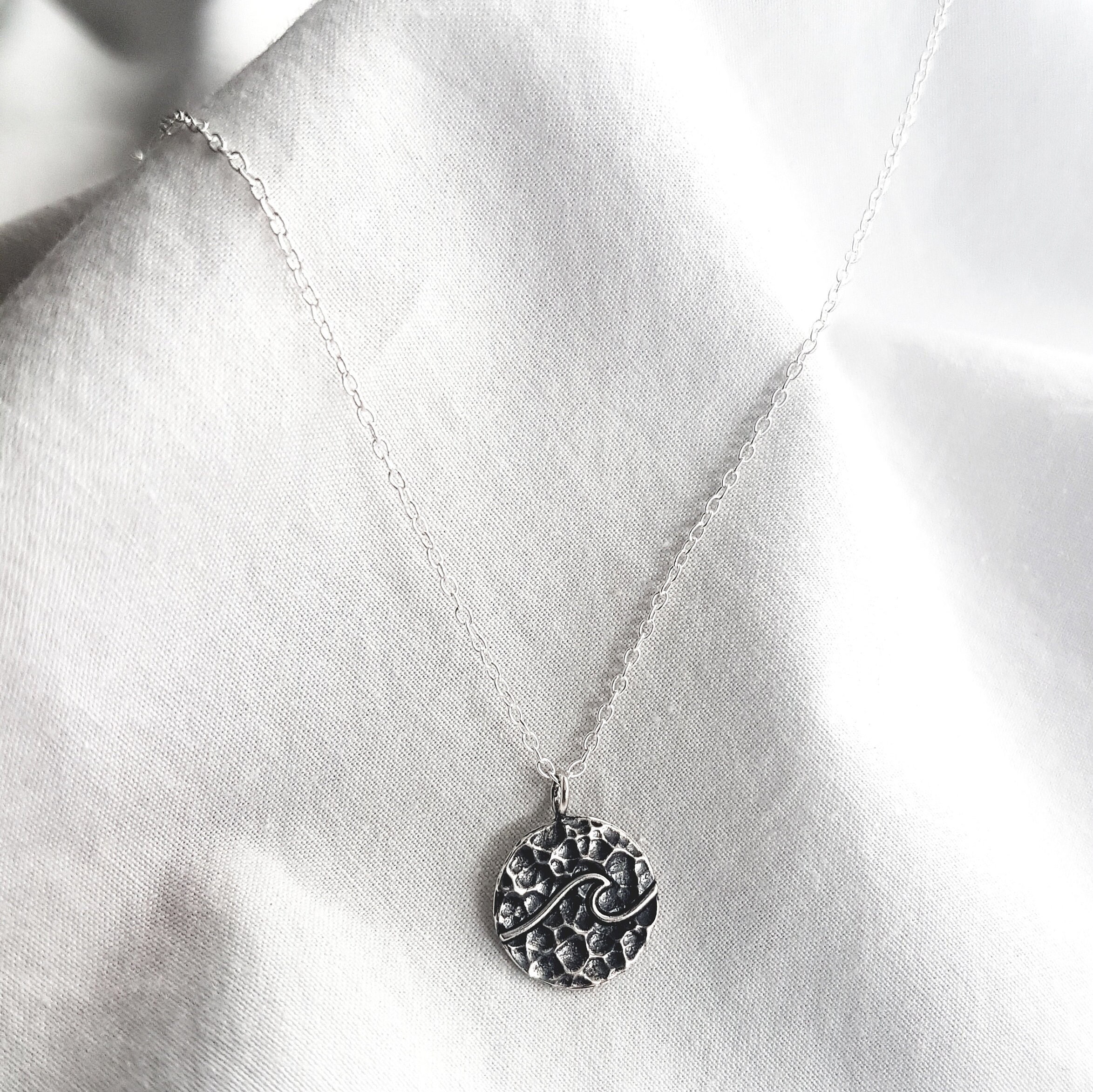 Delicate wave necklace made of 925 sterling silver with a textured surface - inspired by the rhythm of the sea and the power of the ocean.