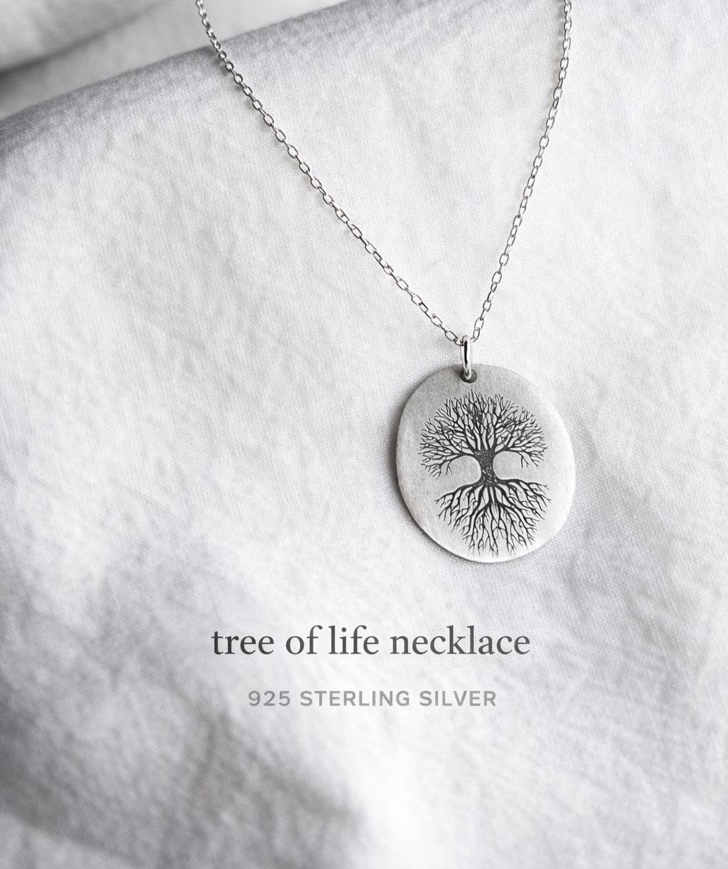 Minimalist 925 sterling silver necklace with a tree of life pendant - simple, high-quality and timeless.