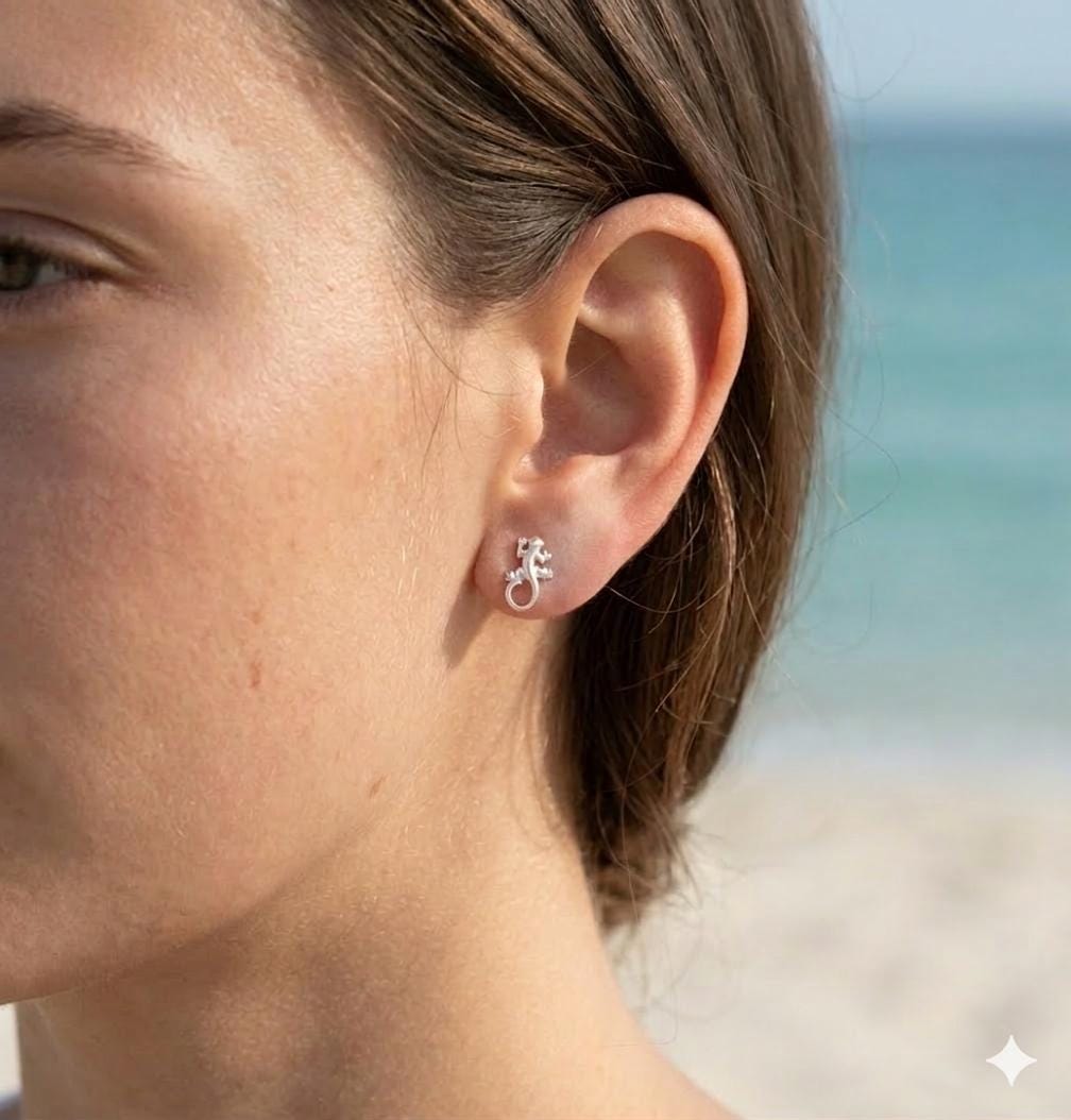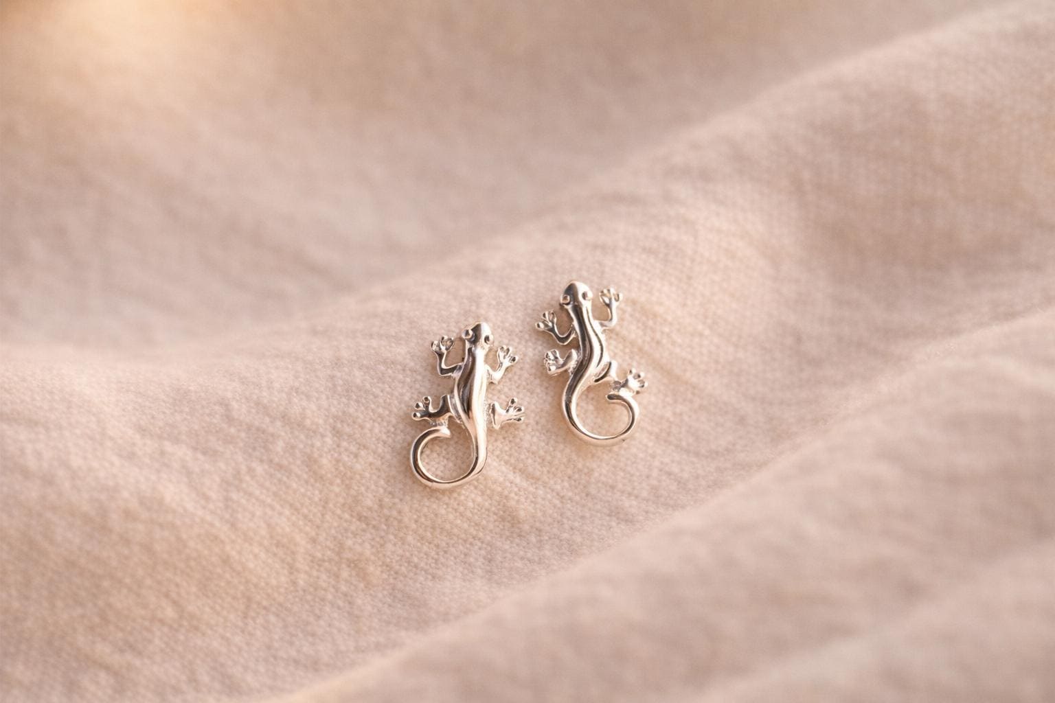 • 1 pair of gecko stud earrings made of 925 sterling silver