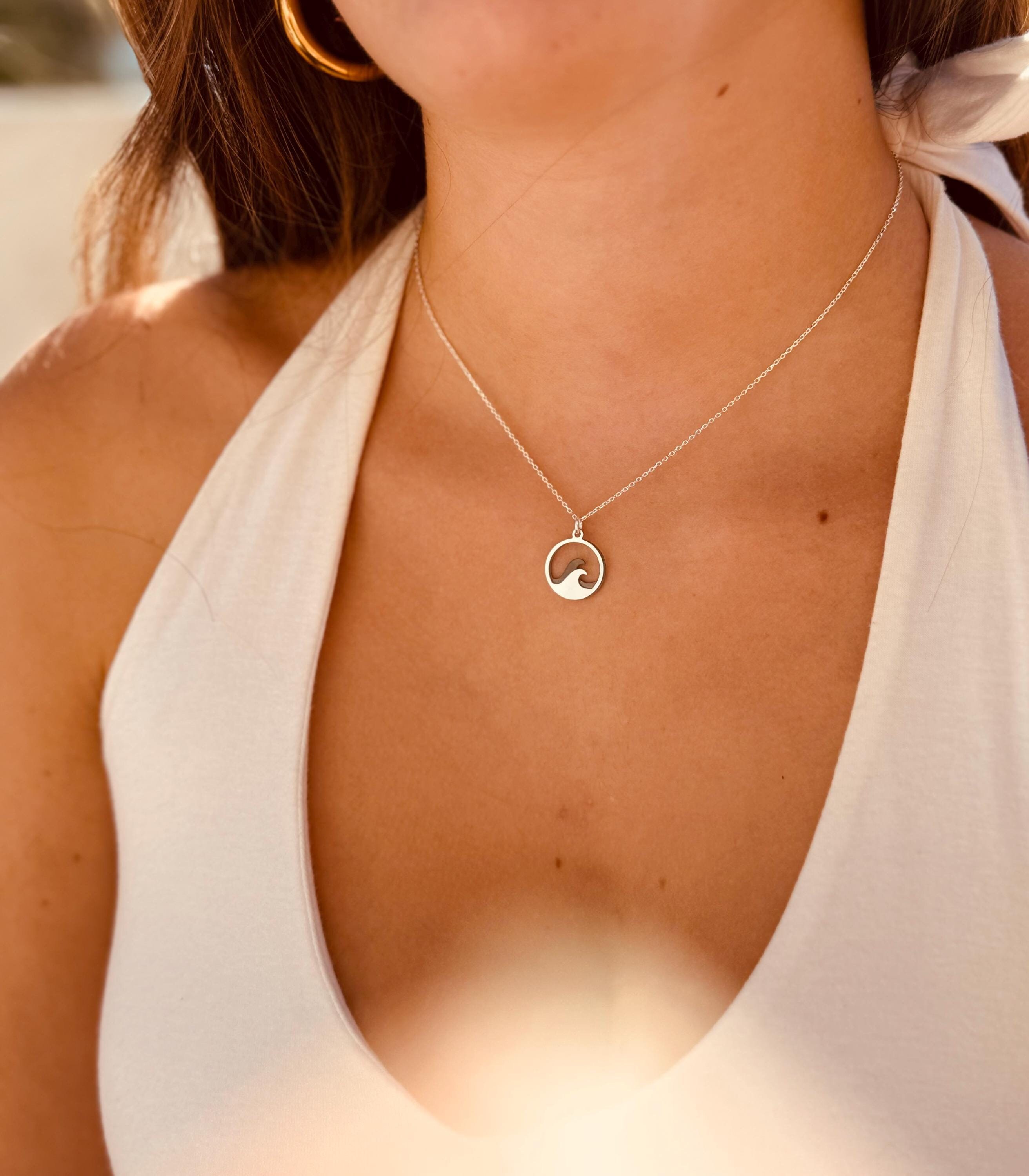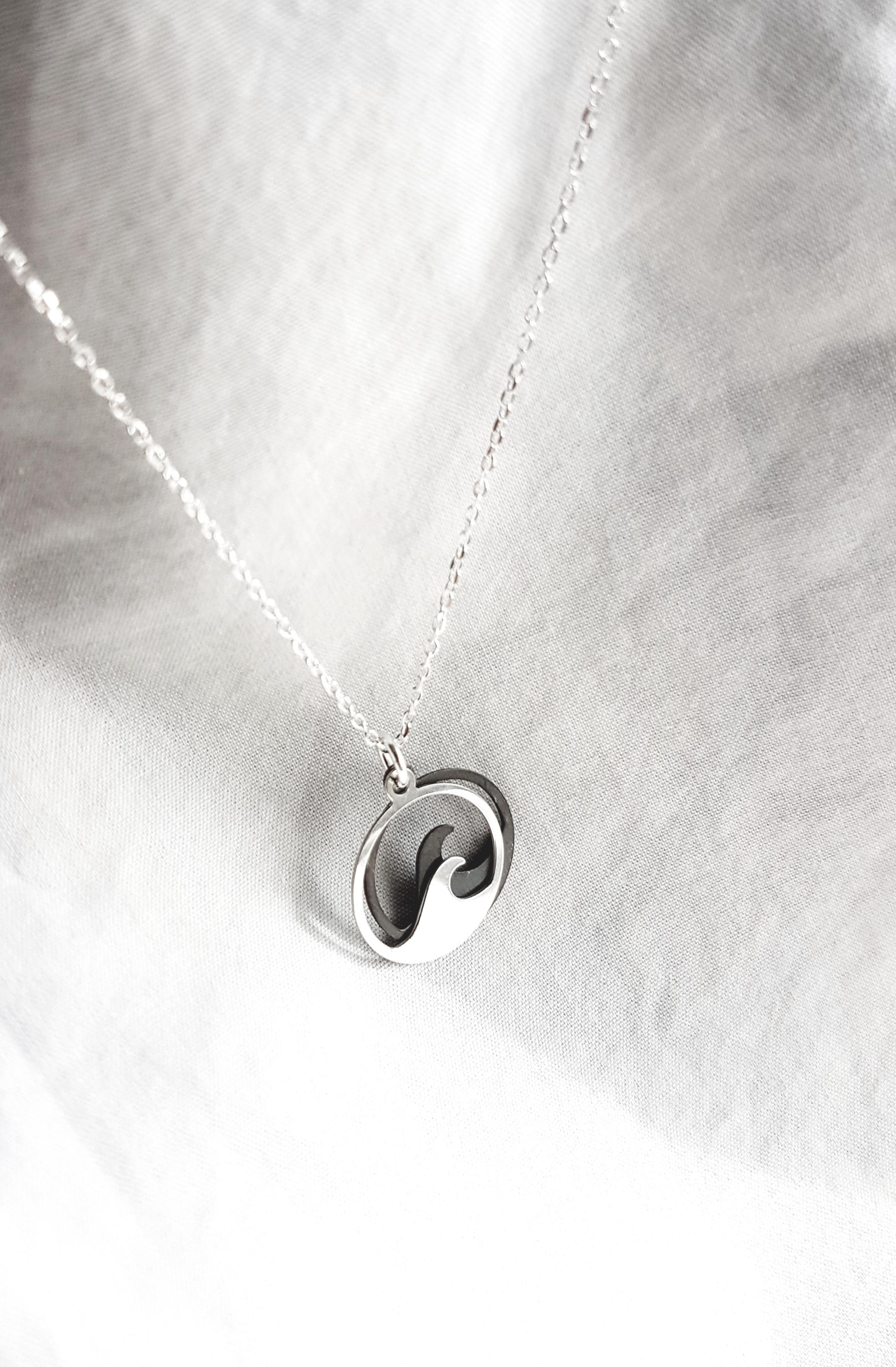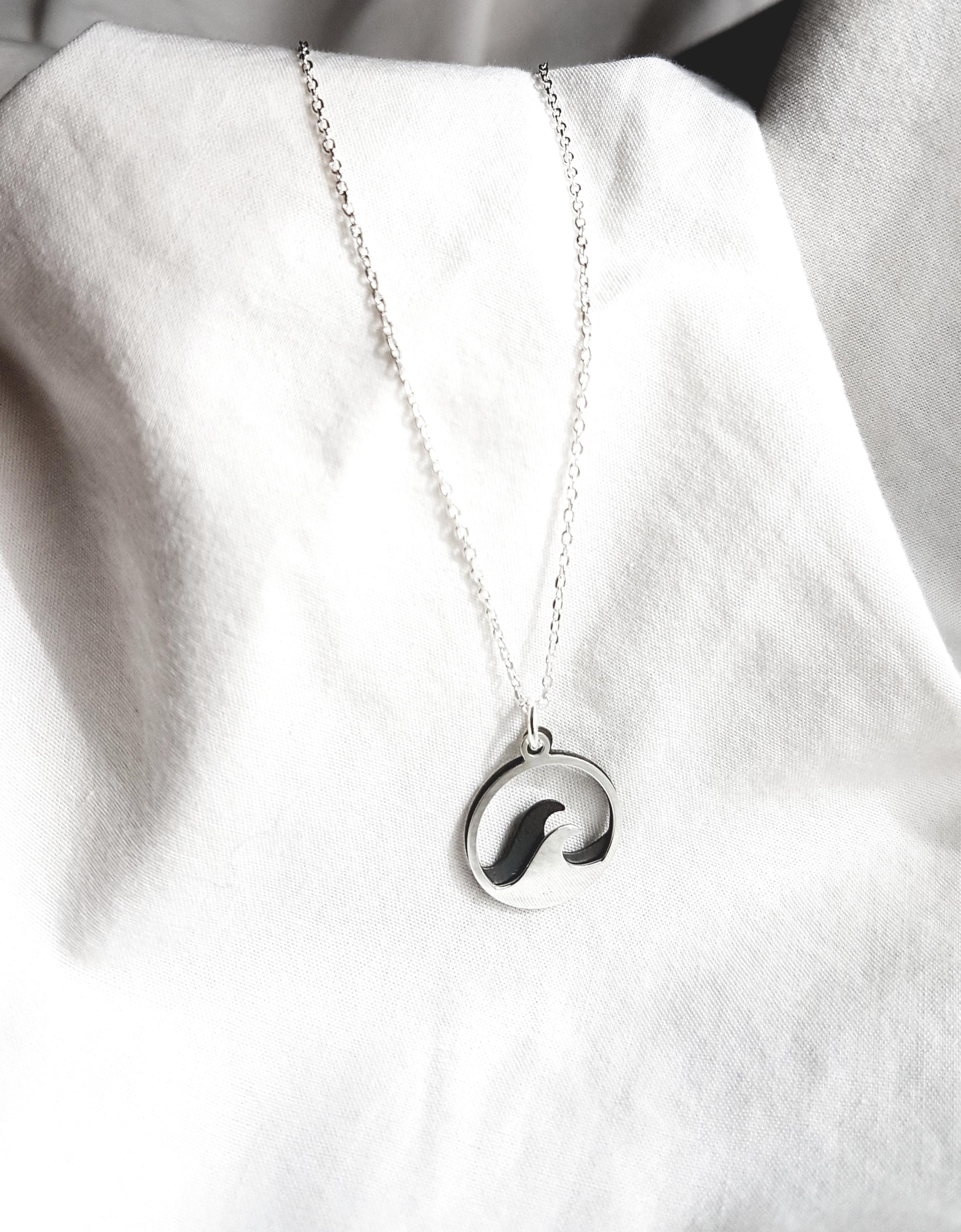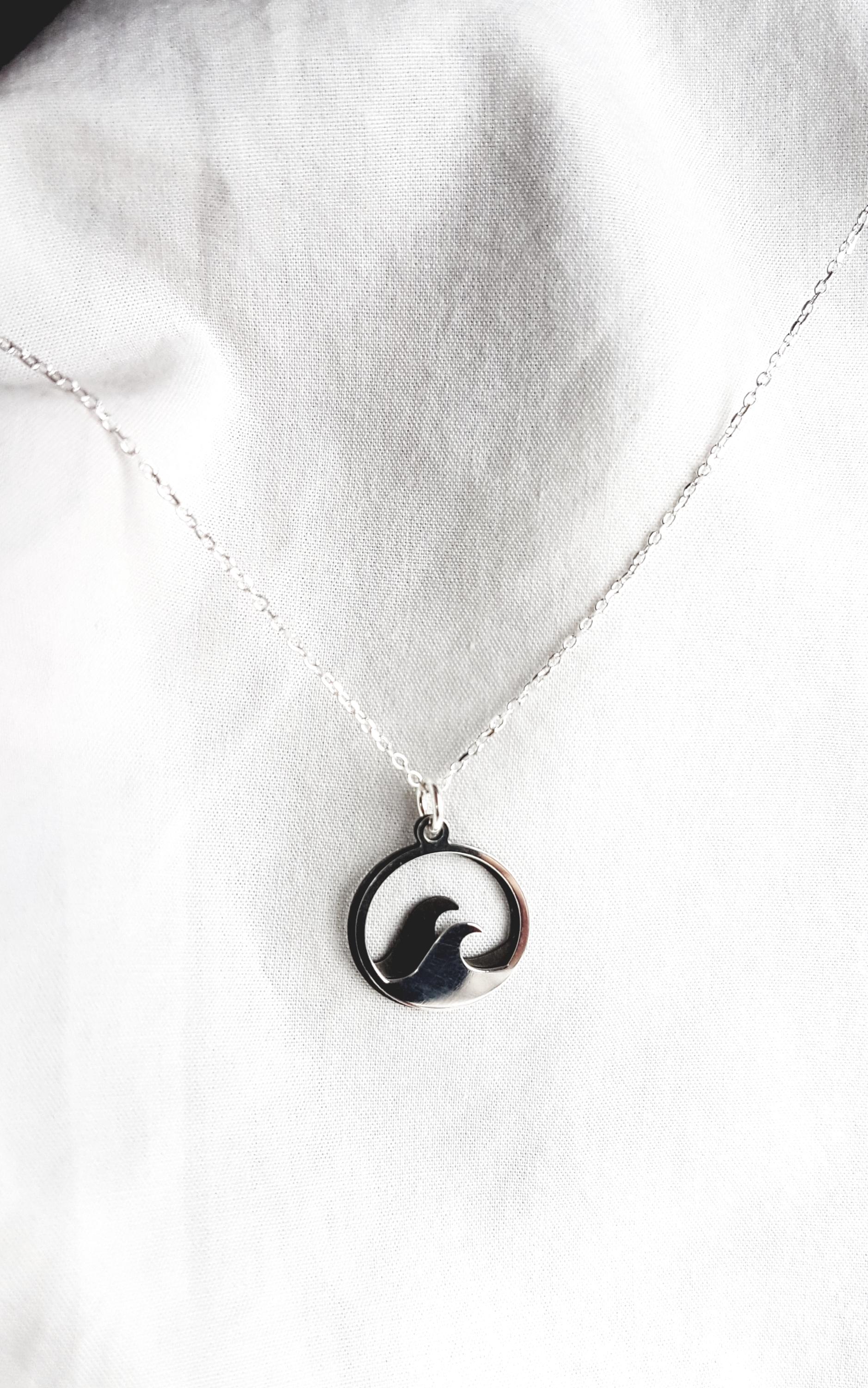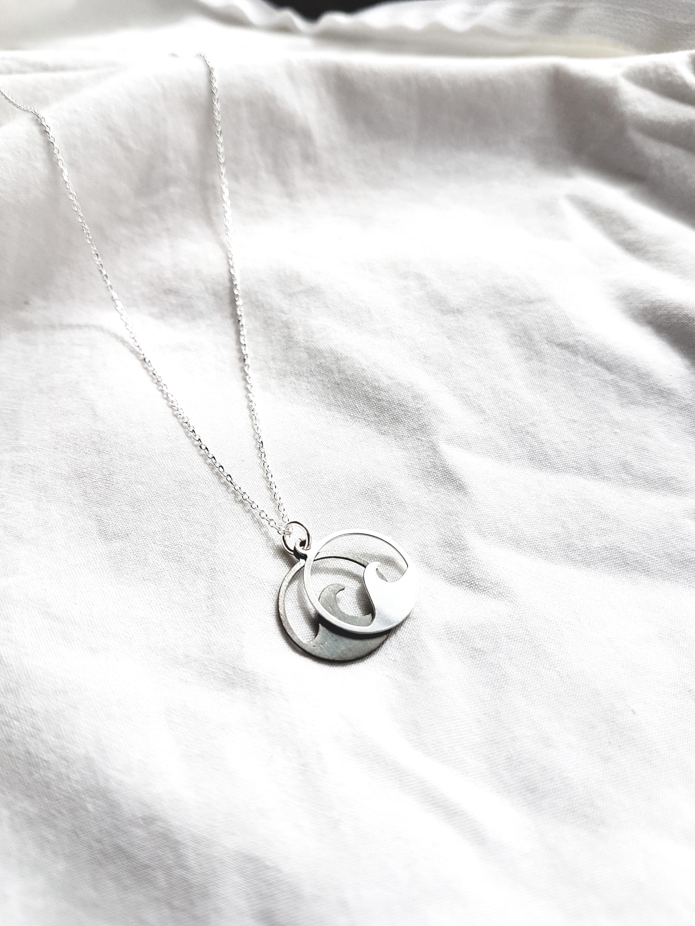 925 sterling silver necklace with two wave pendants. The chain is available in lengths of 40 cm, 45 cm and 50 cm and comes with an extension of 3 cm. The chain is available as a snake chain (snake) or as an anchor chain (cable).