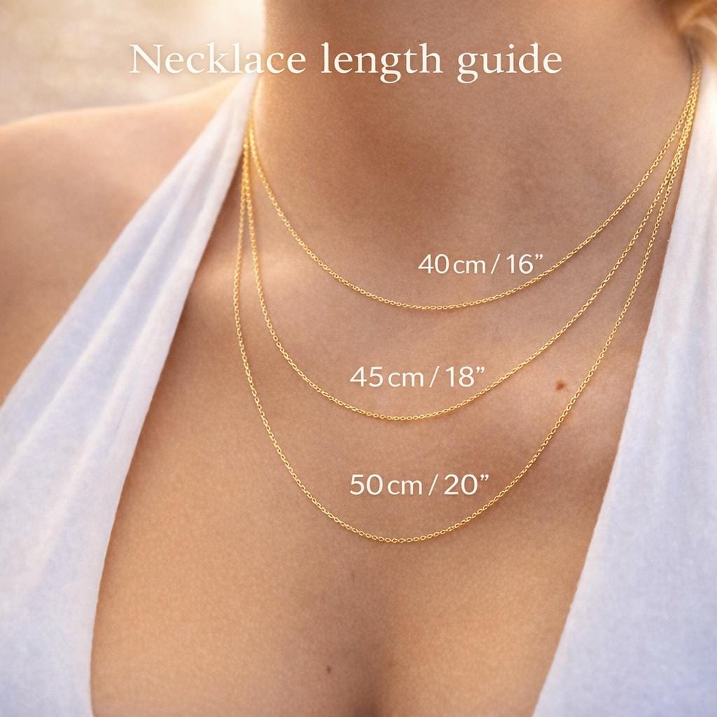 The necklace is plated with two layers of gold – a base layer and a top layer – which increases the durability of the plating. This necklace is available in three lengths. We also offer an optional delicate extension chain for flexible, stepless length adjustment.