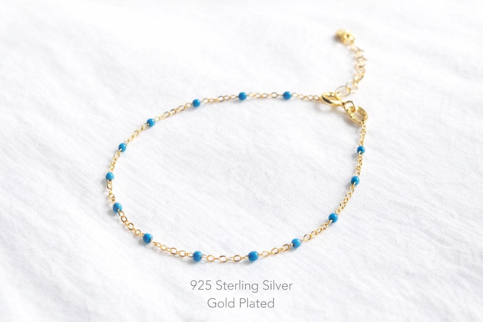 Delicate, gold-plated bracelet with small dark blue enamel beads - an elegant piece of jewelry with a modern, clear color contrast.
