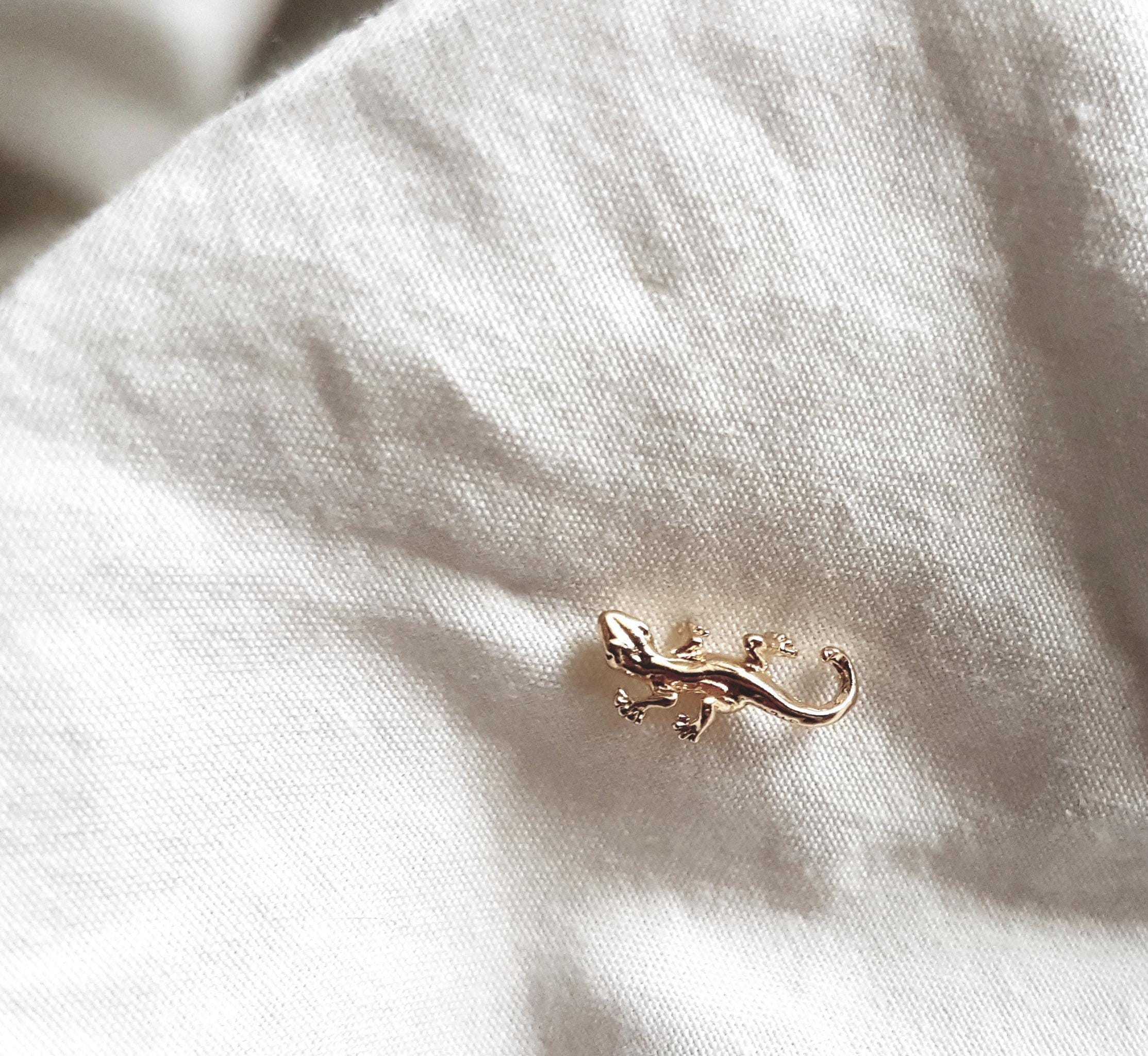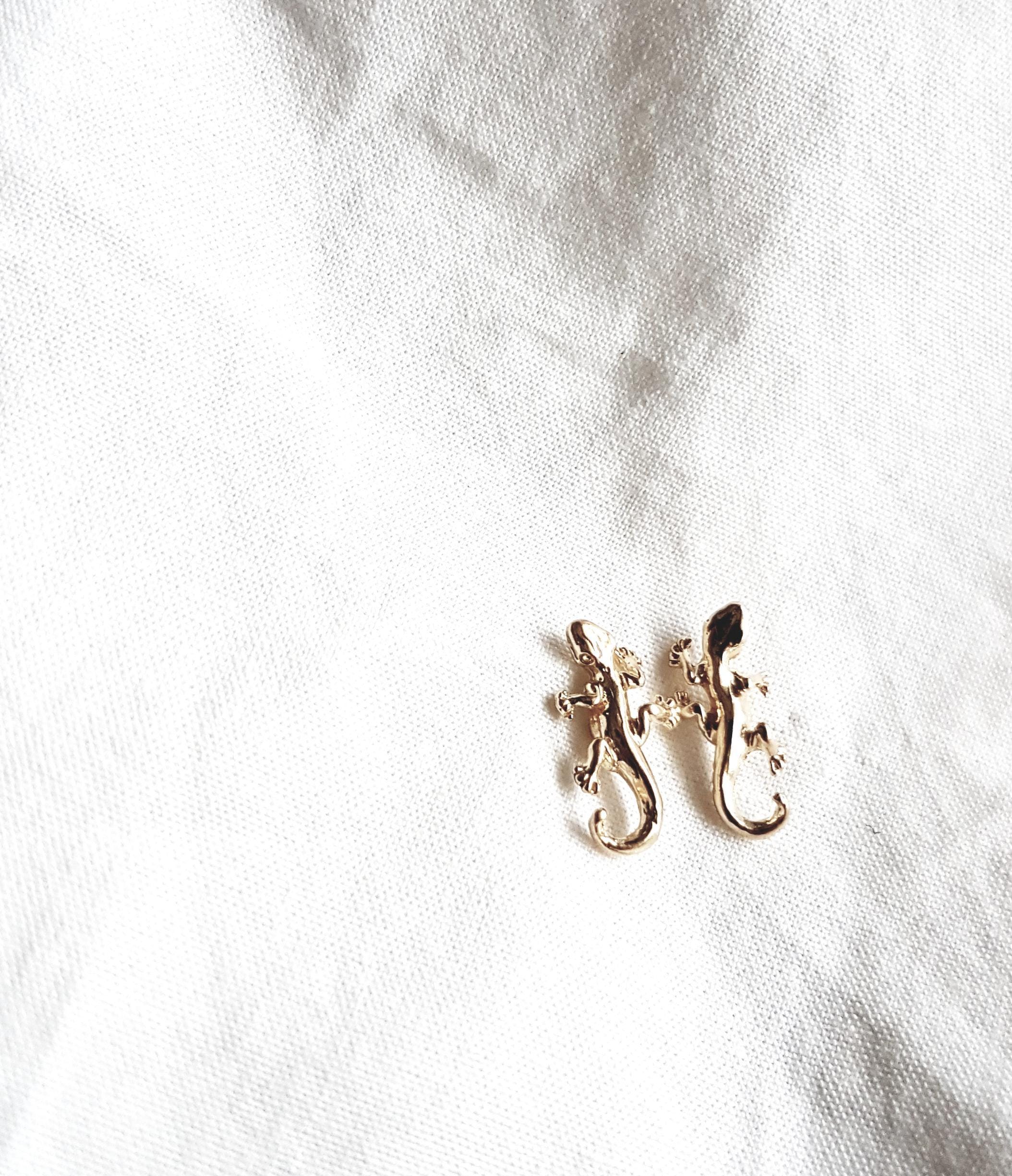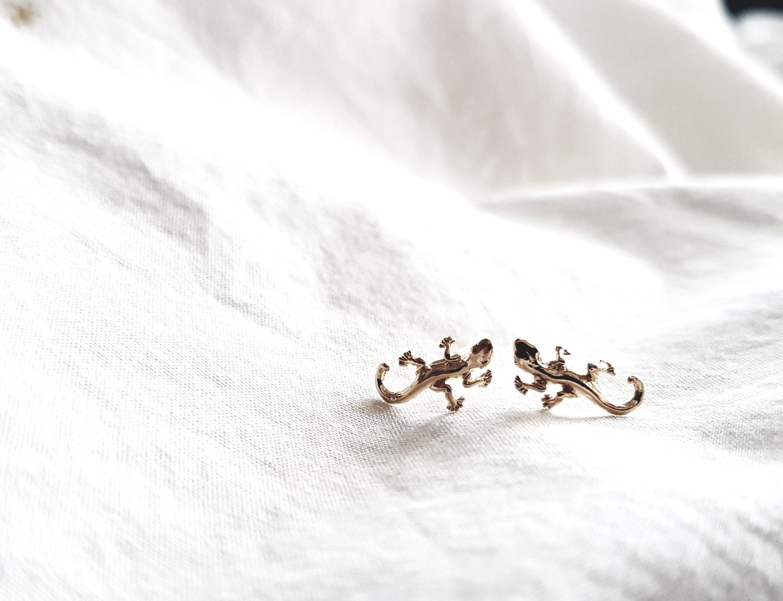 Playful gecko stud earrings made of gold-plated 925 sterling silver. The delicate details give the little lizard a lively expression.