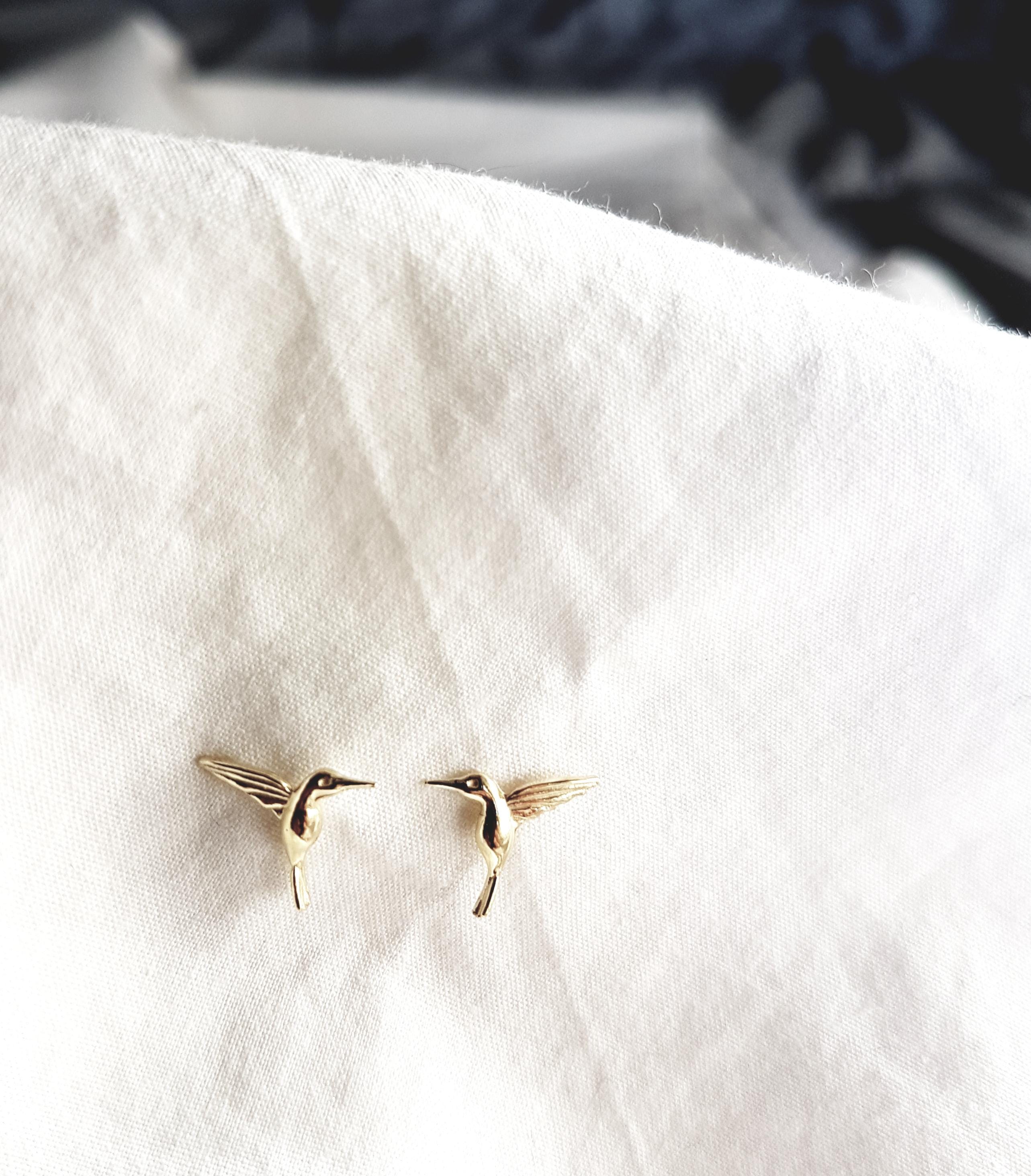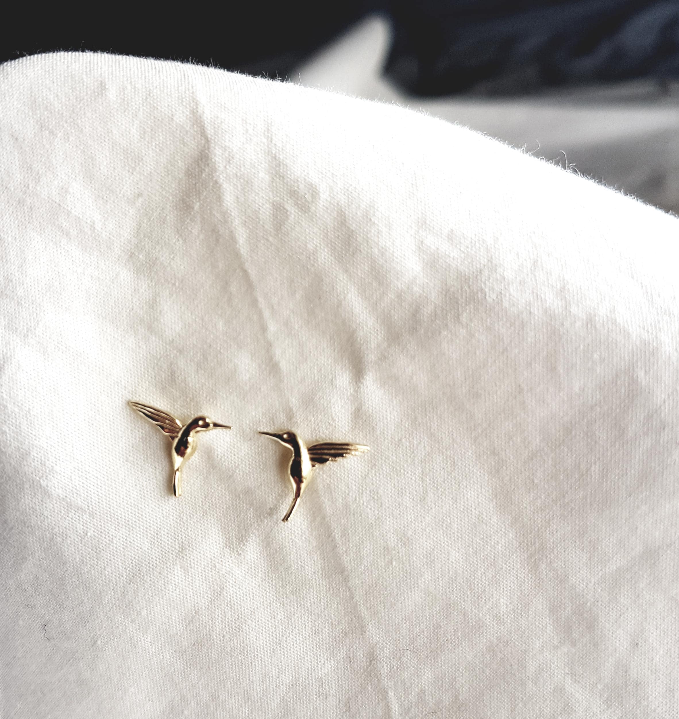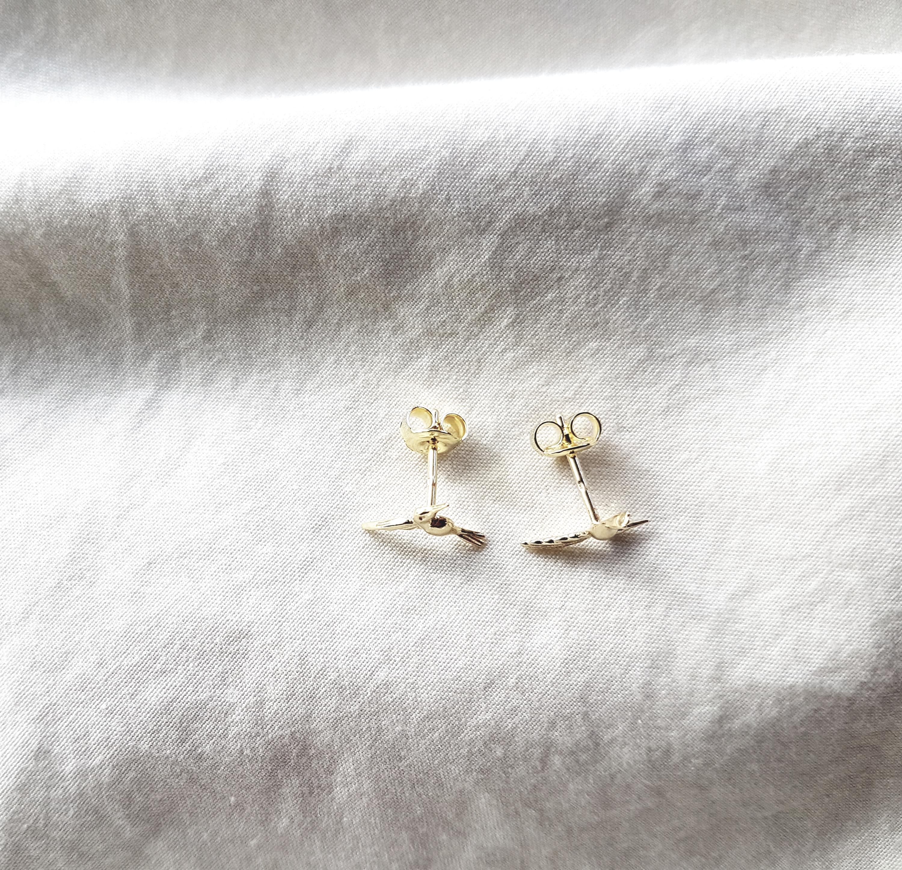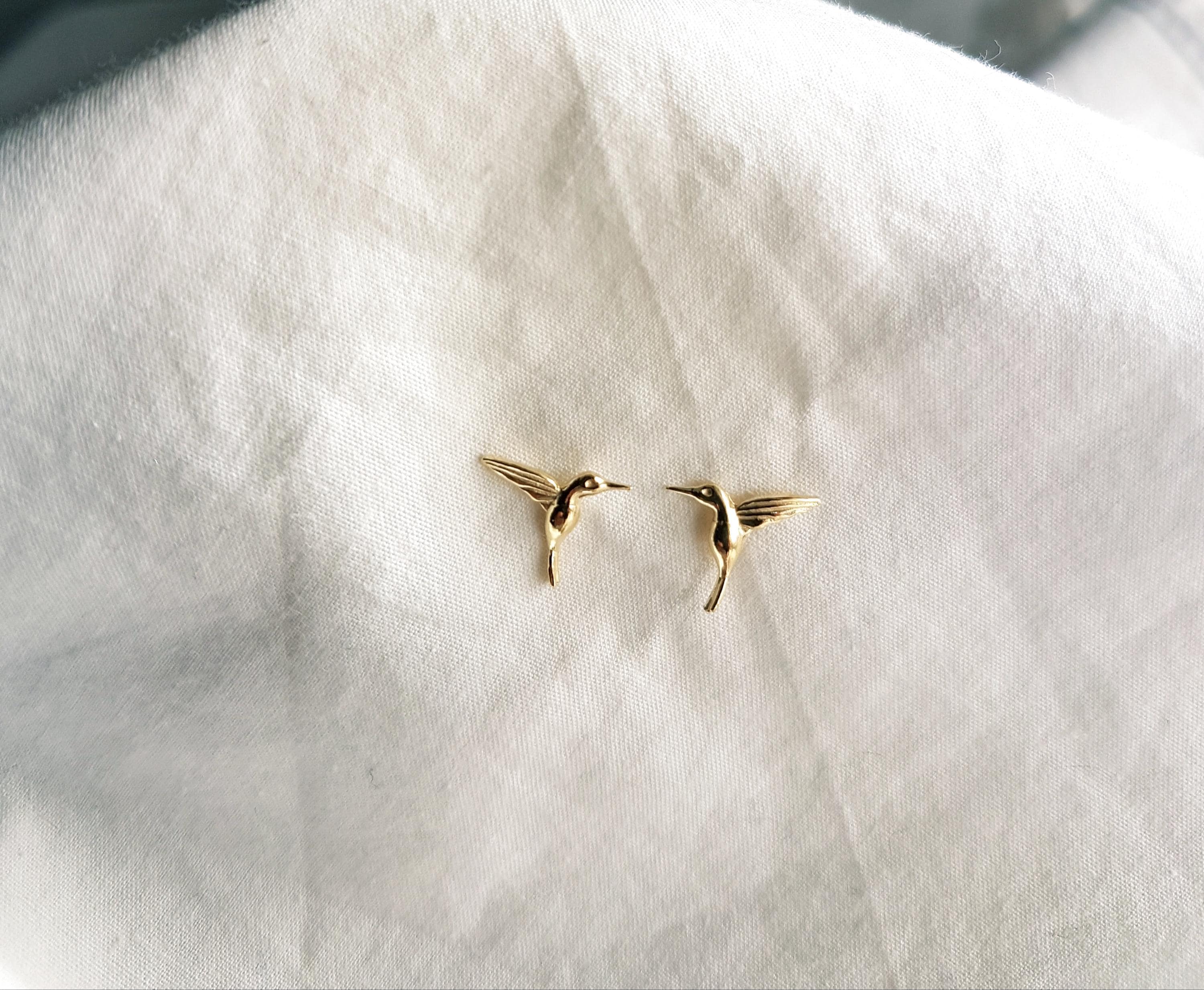 Delicate hummingbird stud earrings – gold-plated, intricate, and full of symbolism. A beautiful, lightweight accessory for everyday wear and a thoughtful gift idea for Christmas, for nature lovers, travelers, and anyone who appreciates something special.
