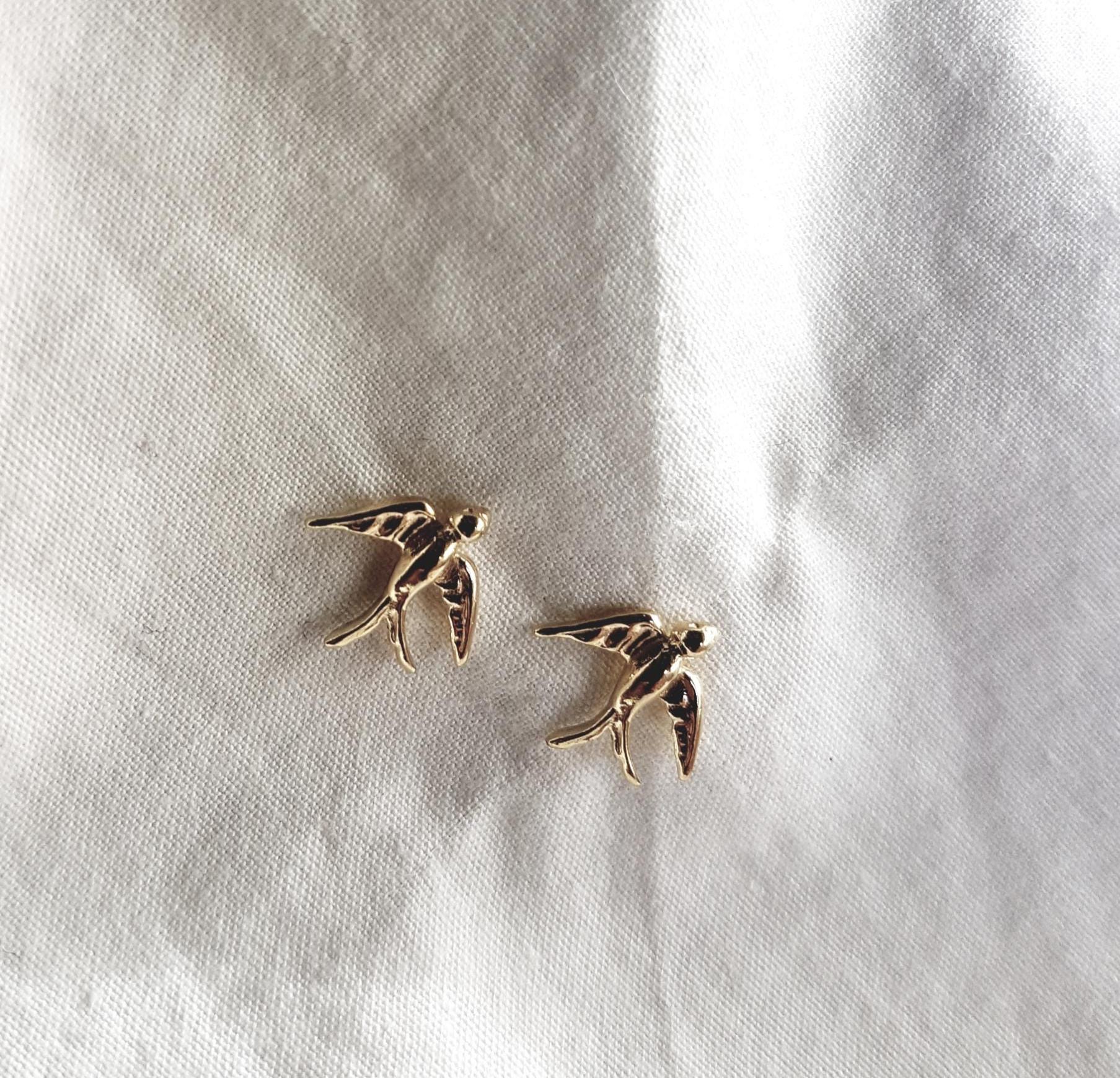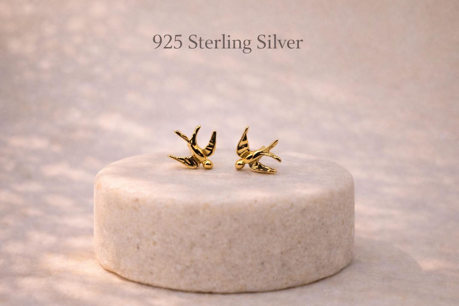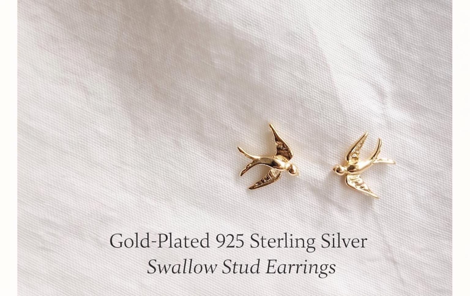 Delicate swallow stud earrings made of high-quality sterling silver, double-plated with gold for a particularly durable layer. The little birds symbolize freedom, hope, and lightness – a beautiful and meaningful gift.