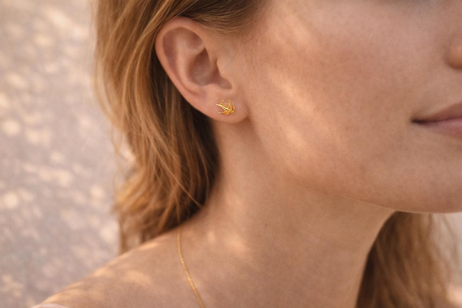 The earrings are made of 925 sterling silver, which has been plated with two layers of 18K gold. The double plating gives the surface a particularly warm and radiant appearance, while also significantly increasing its durability.