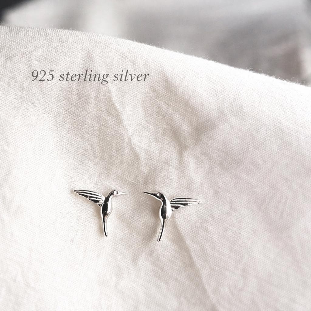 • 1 pair of hummingbird stud earrings made of 925 sterling silver