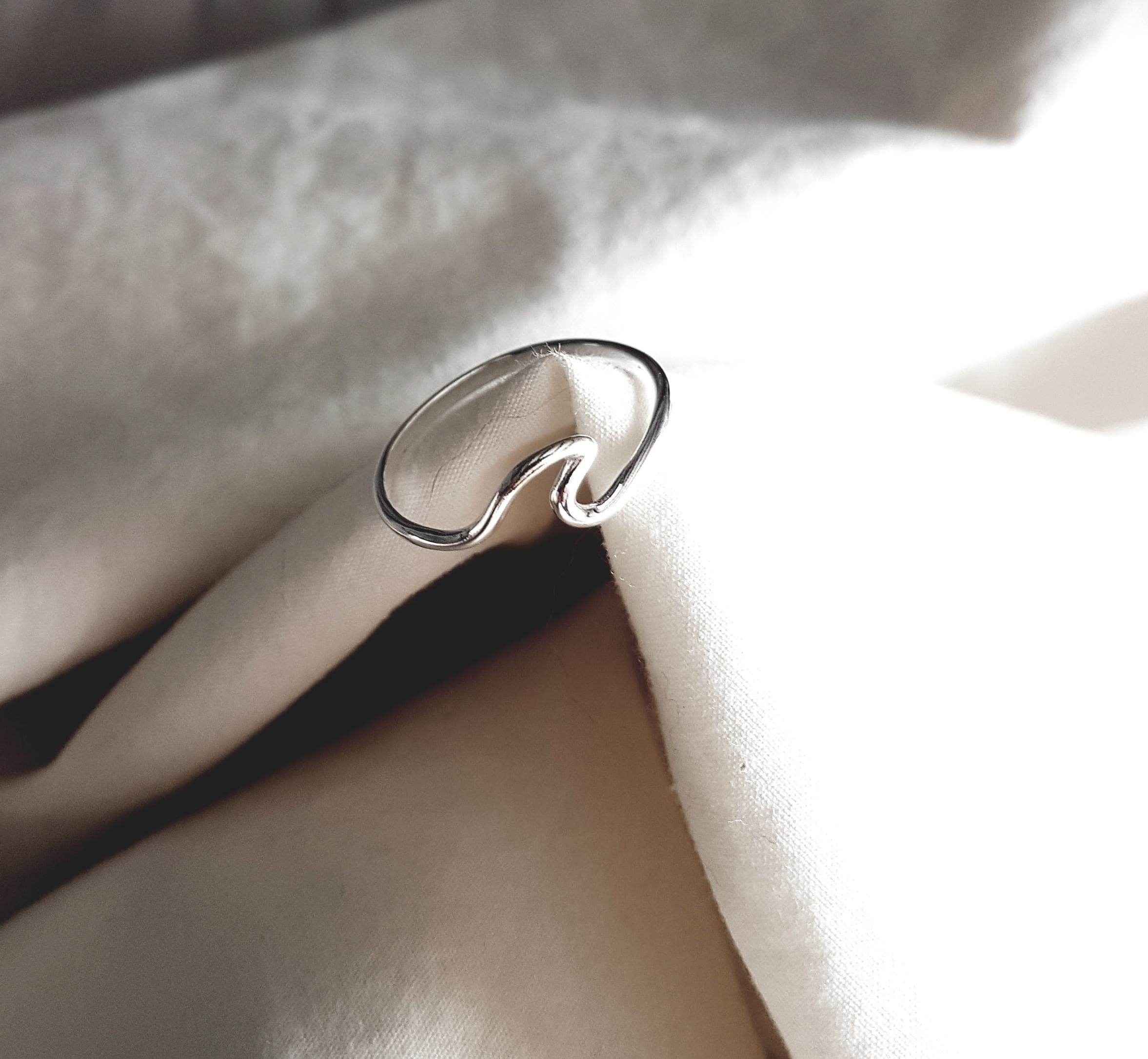 Minimalist wave-shaped silver ring crafted from high-quality 925 sterling silver – inspired by the sea and the feeling of freedom.