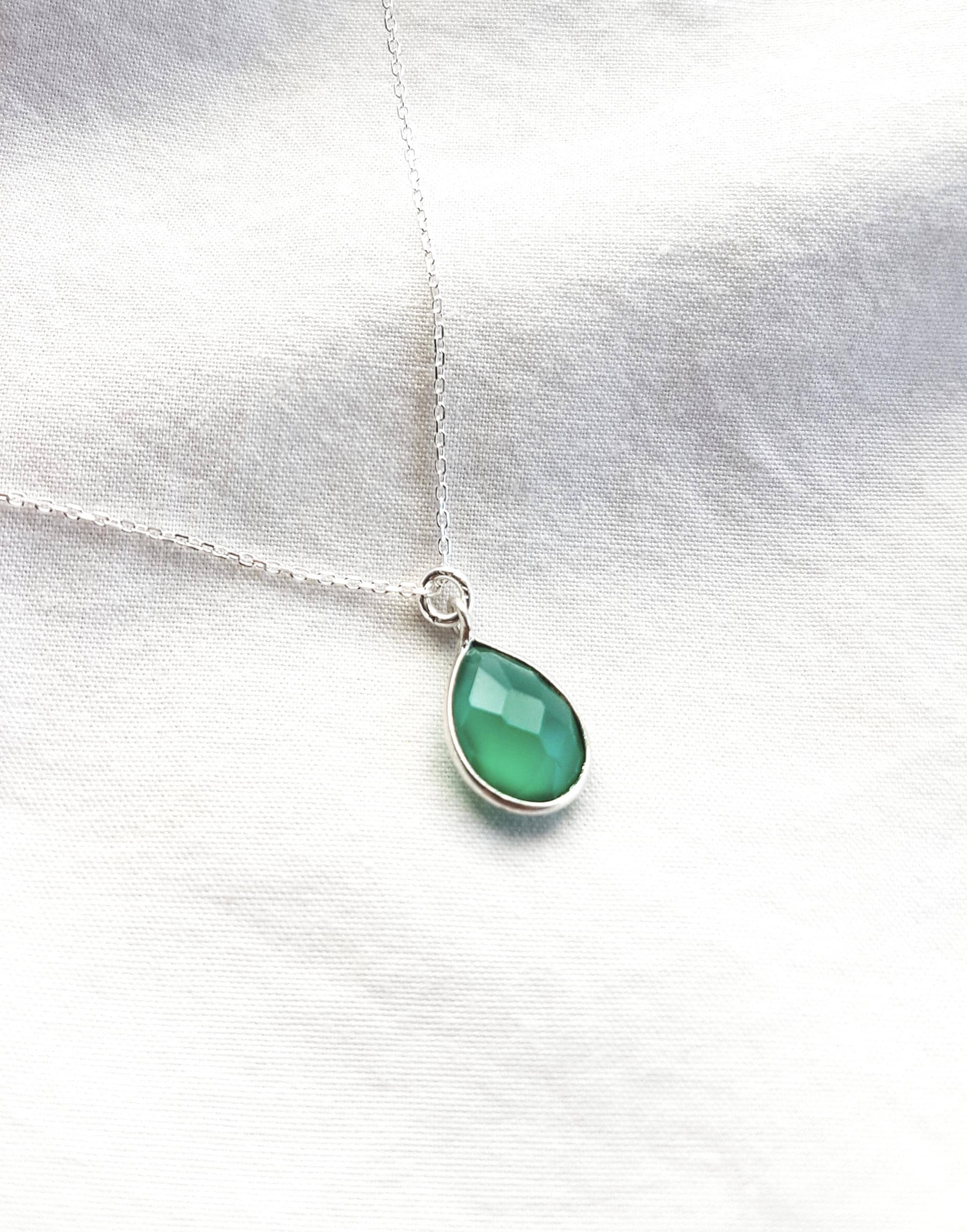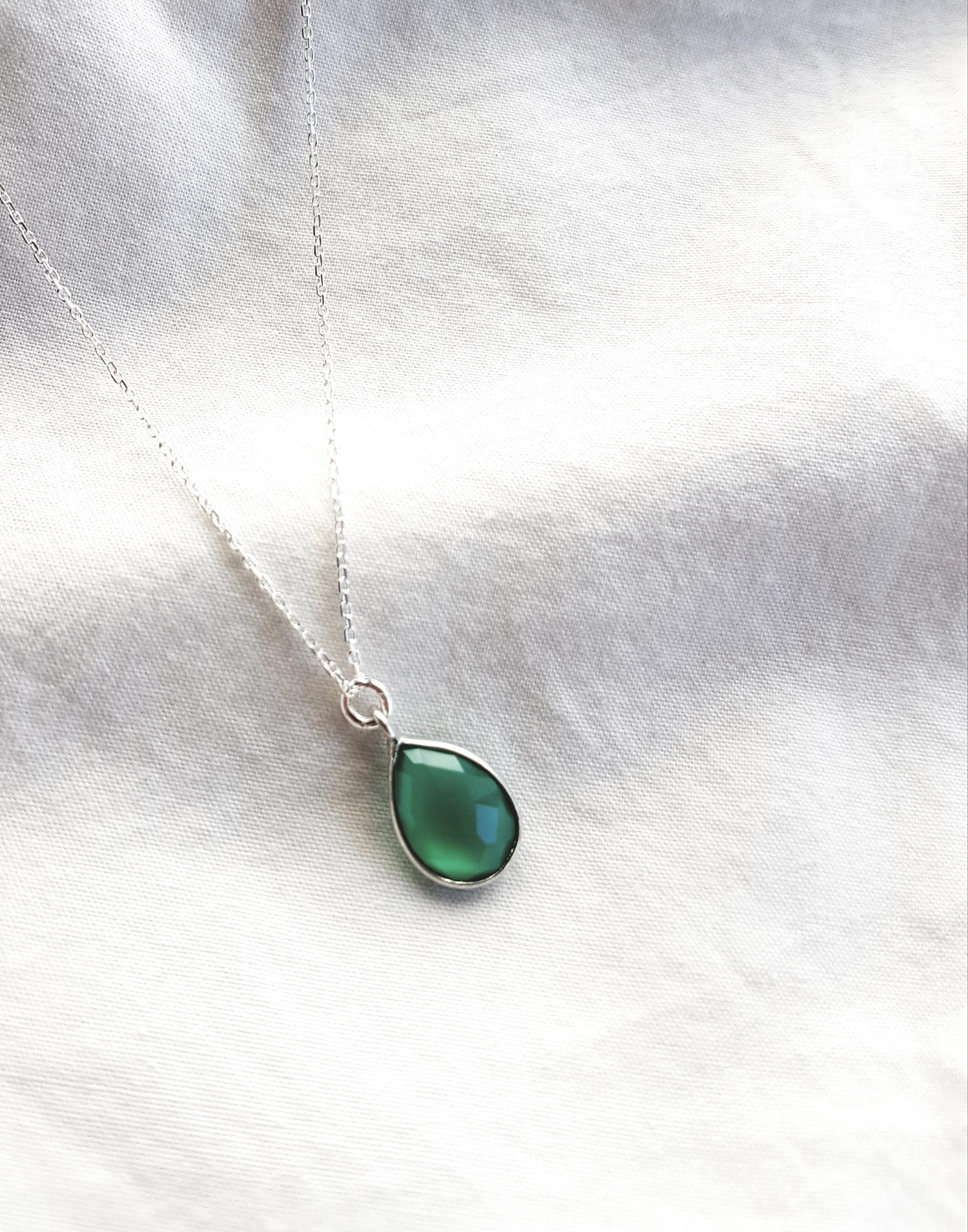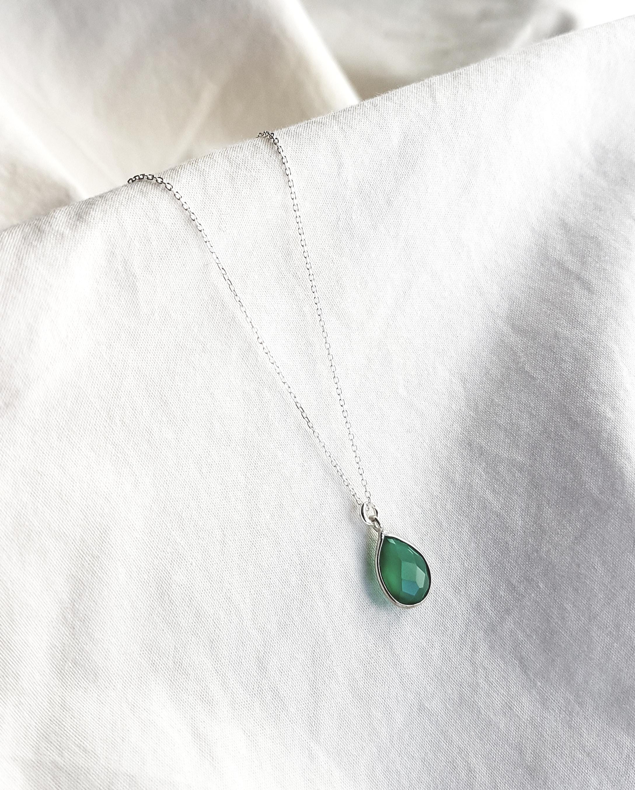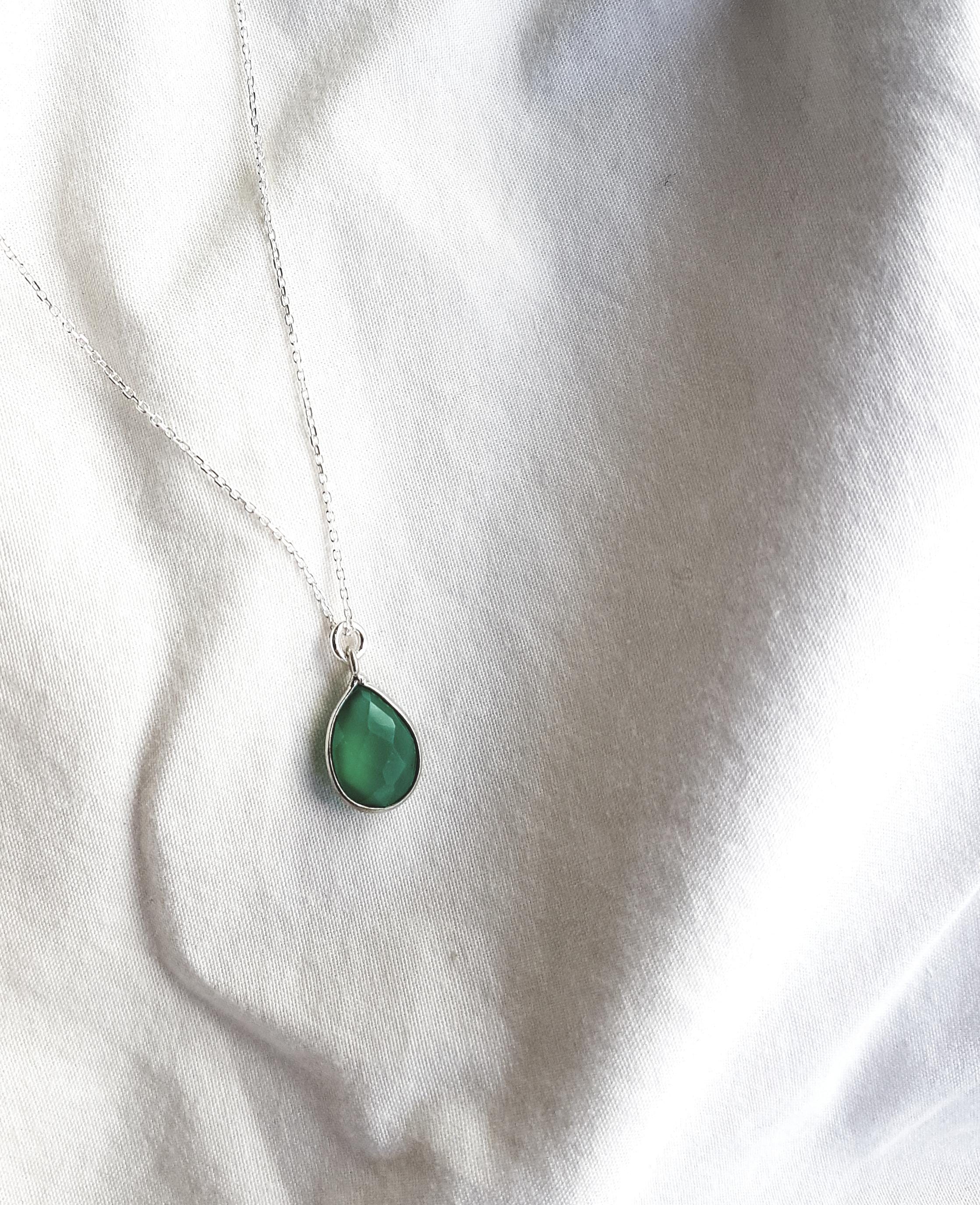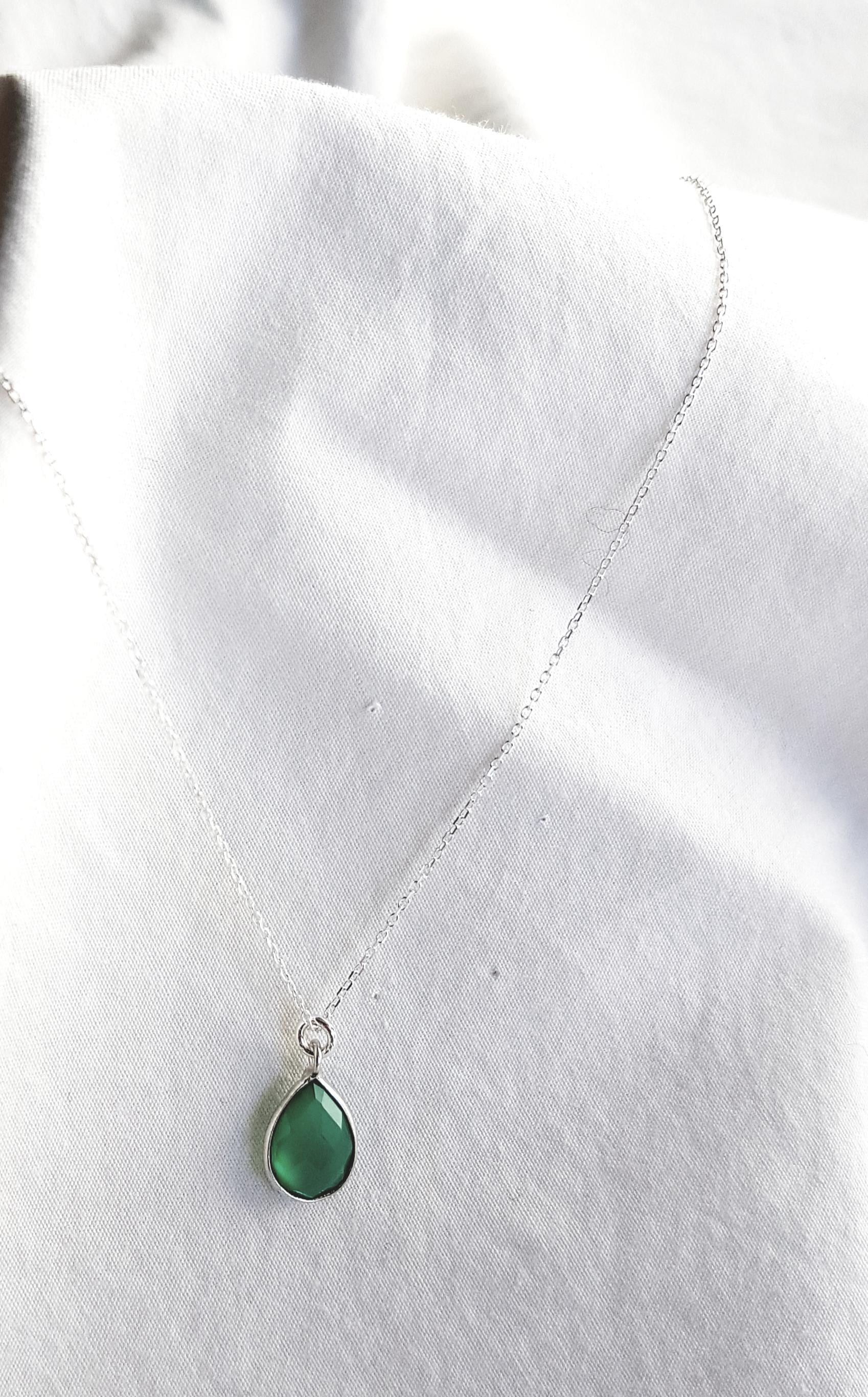 Delicate 925 sterling silver necklace with green drop pendant - timeless, elegant and versatile.