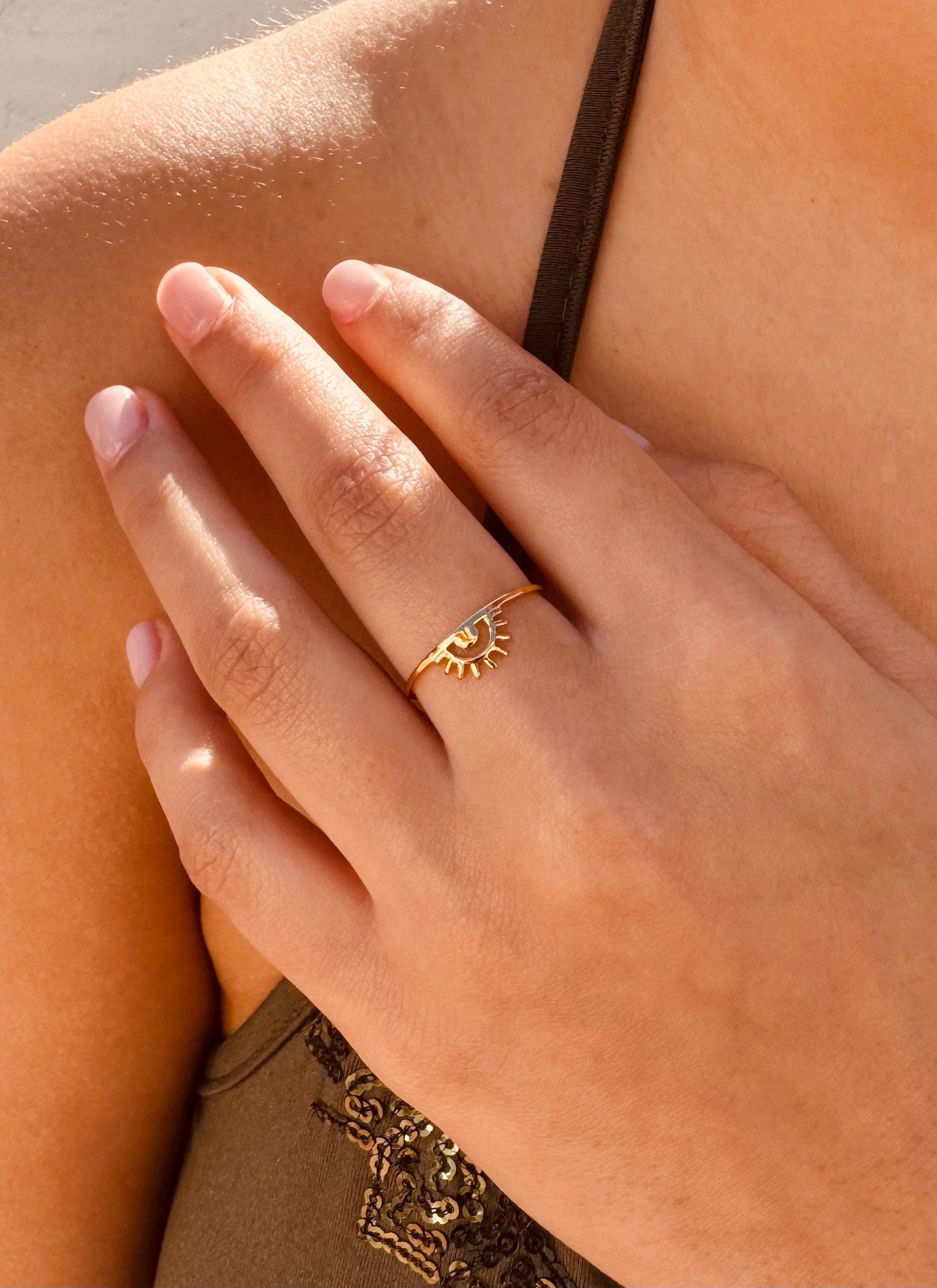 A delicate gold plated sterling silver sun ring designed for effortless everyday wear.