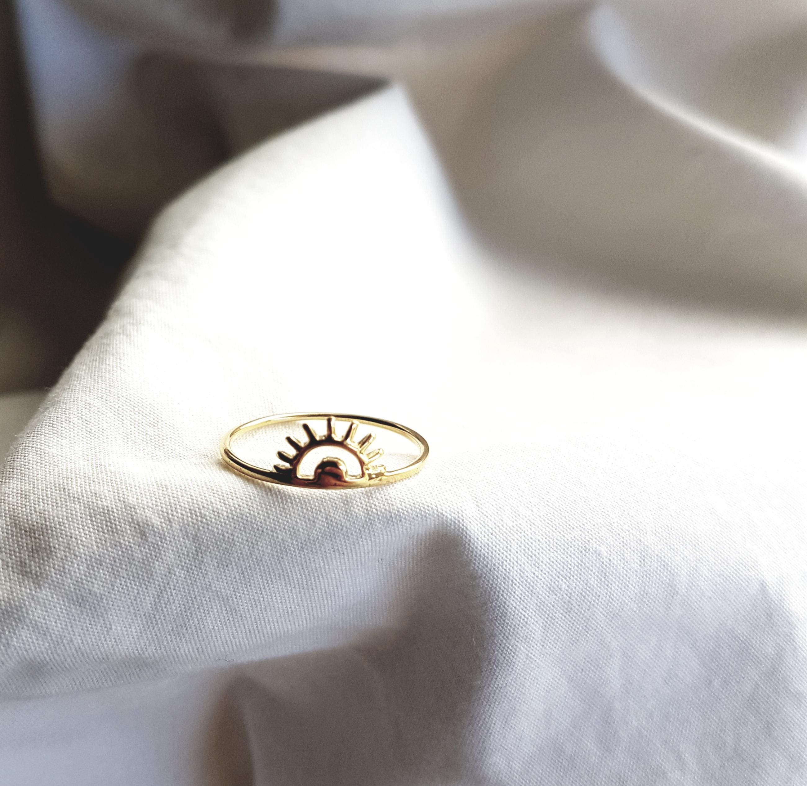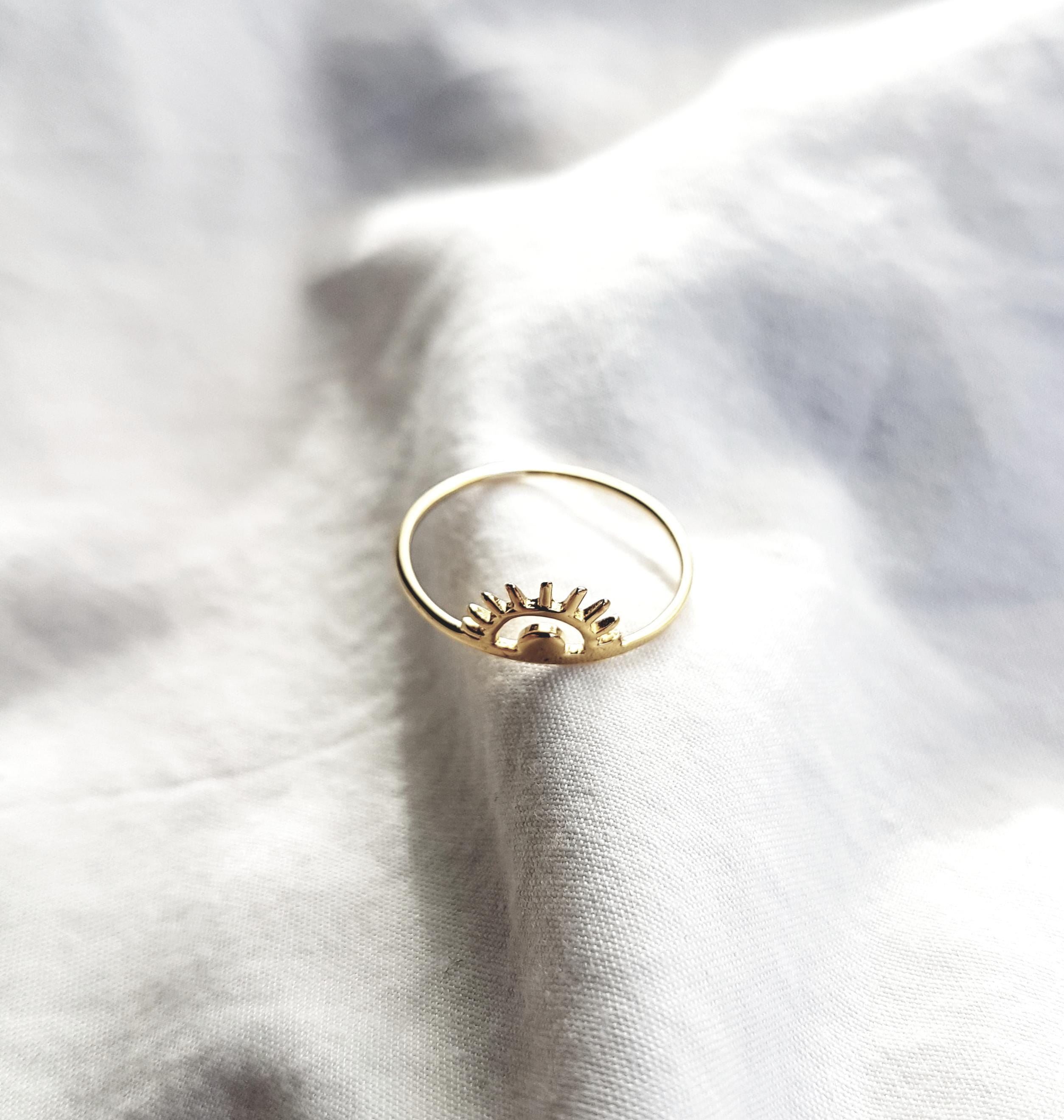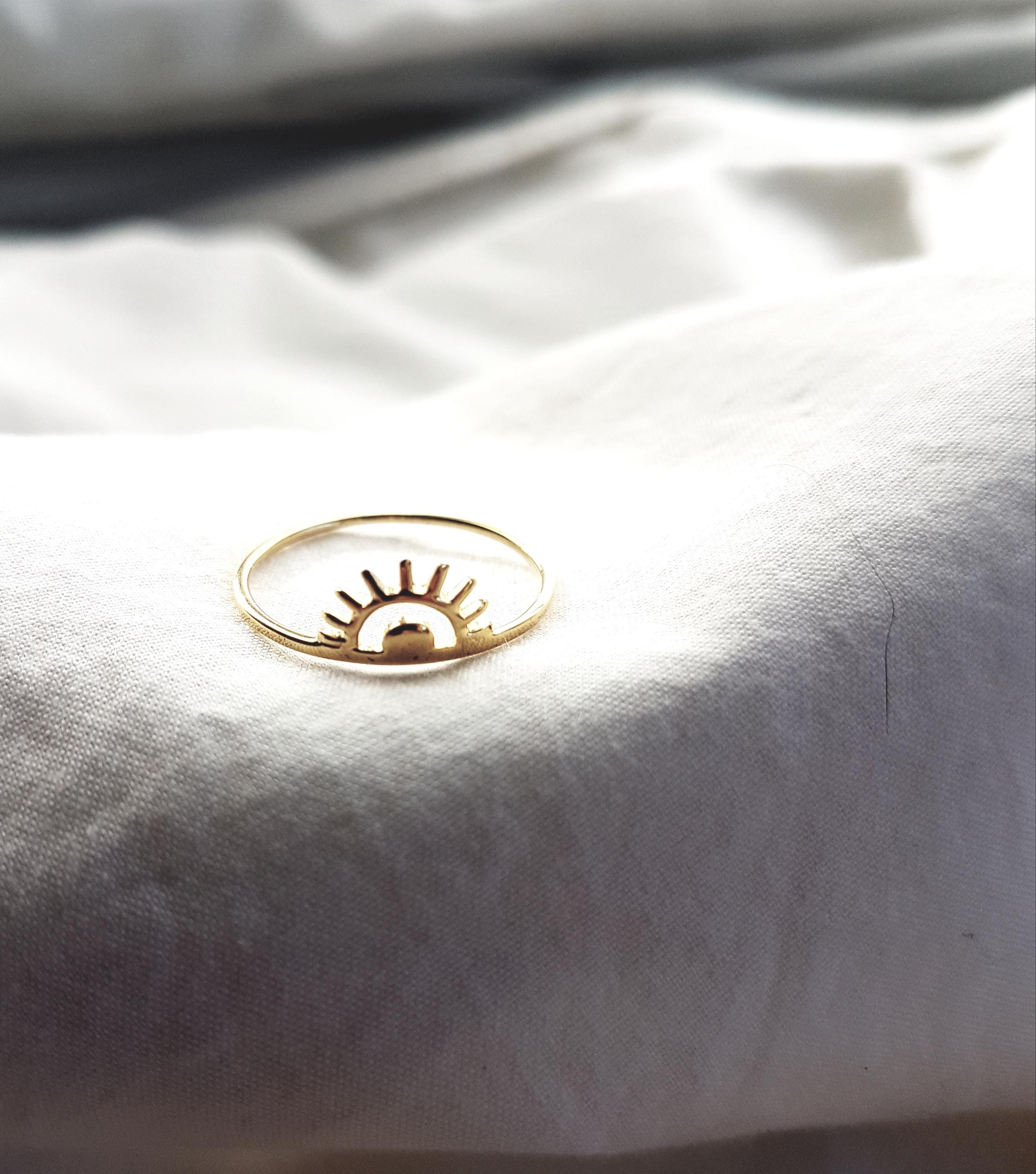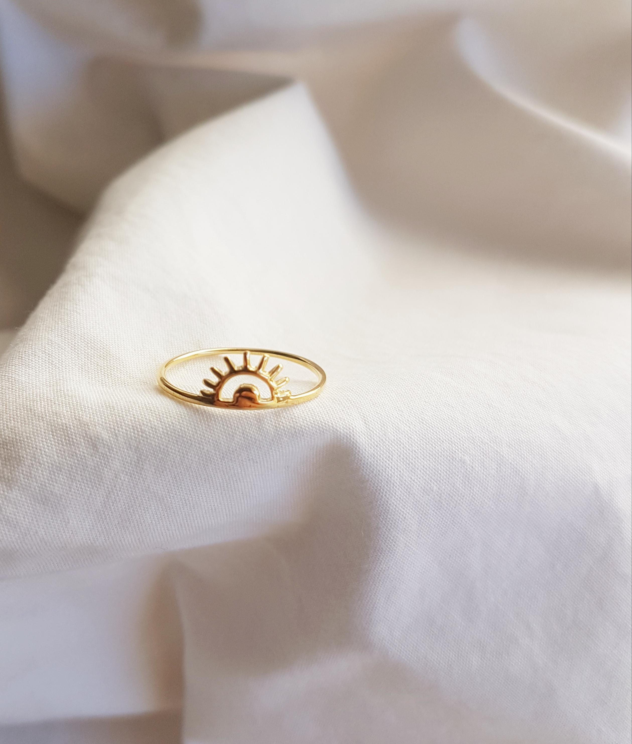 A delicate gold plated sterling silver sun ring designed for effortless everyday wear.