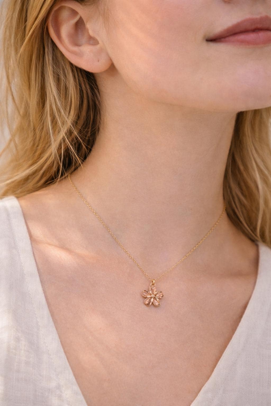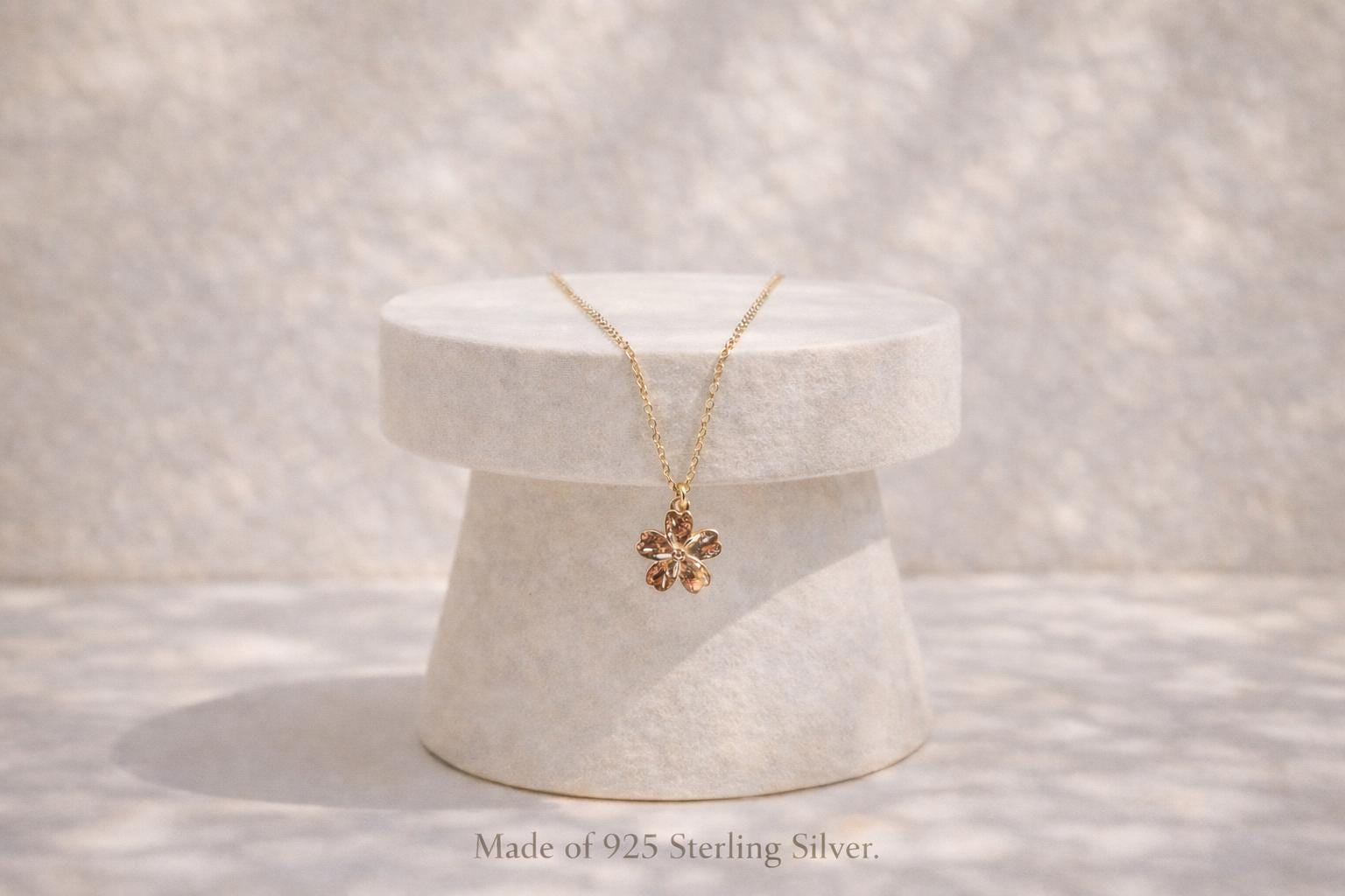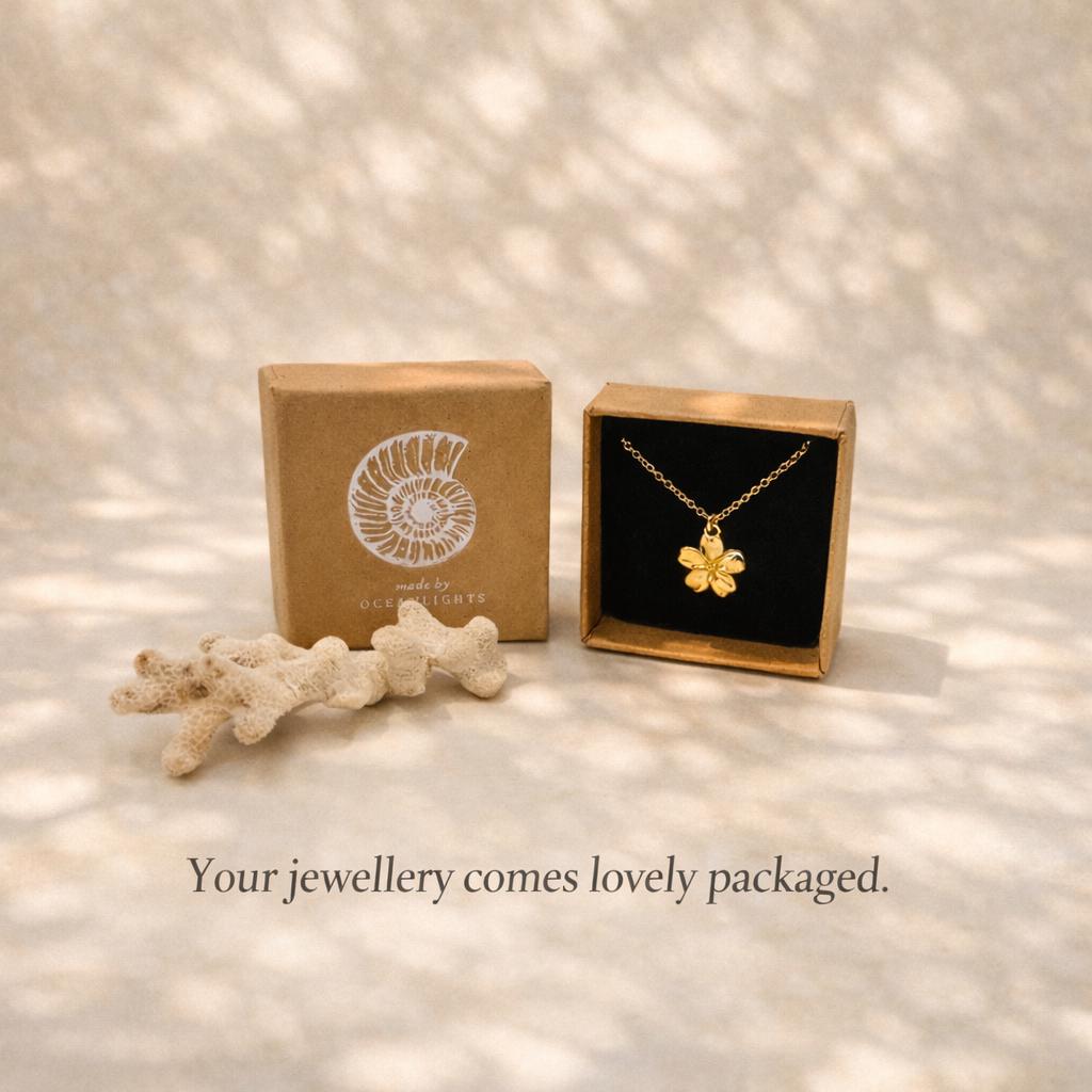 Diese minimalistische Blütenkette mit vergoldetem Anhänger ist ein zartes Alltagsschmuckstück und ein stilvolles Geschenk für Frauen zu Geburtstag, Jahrestag oder besonderen Anlässen.