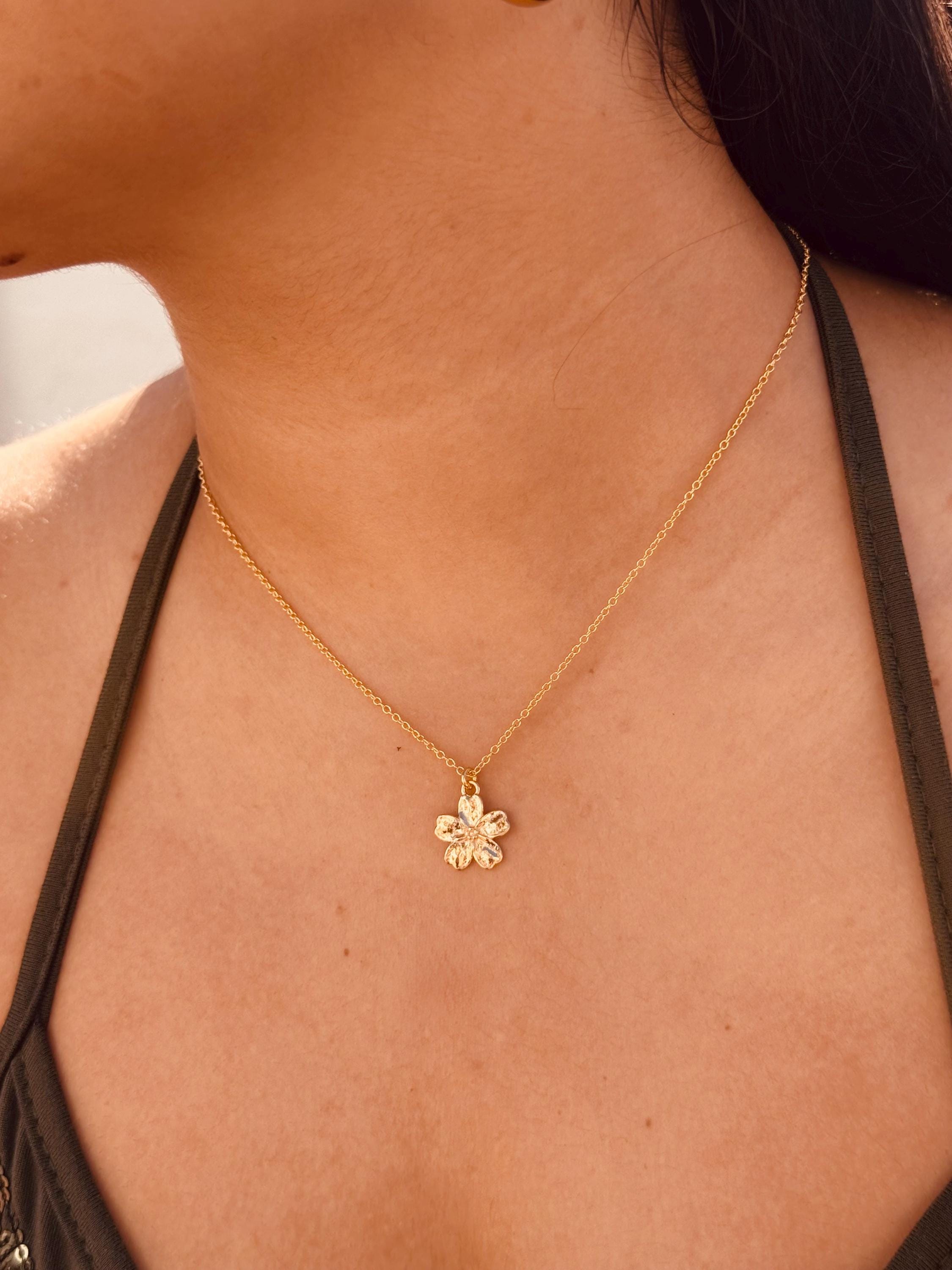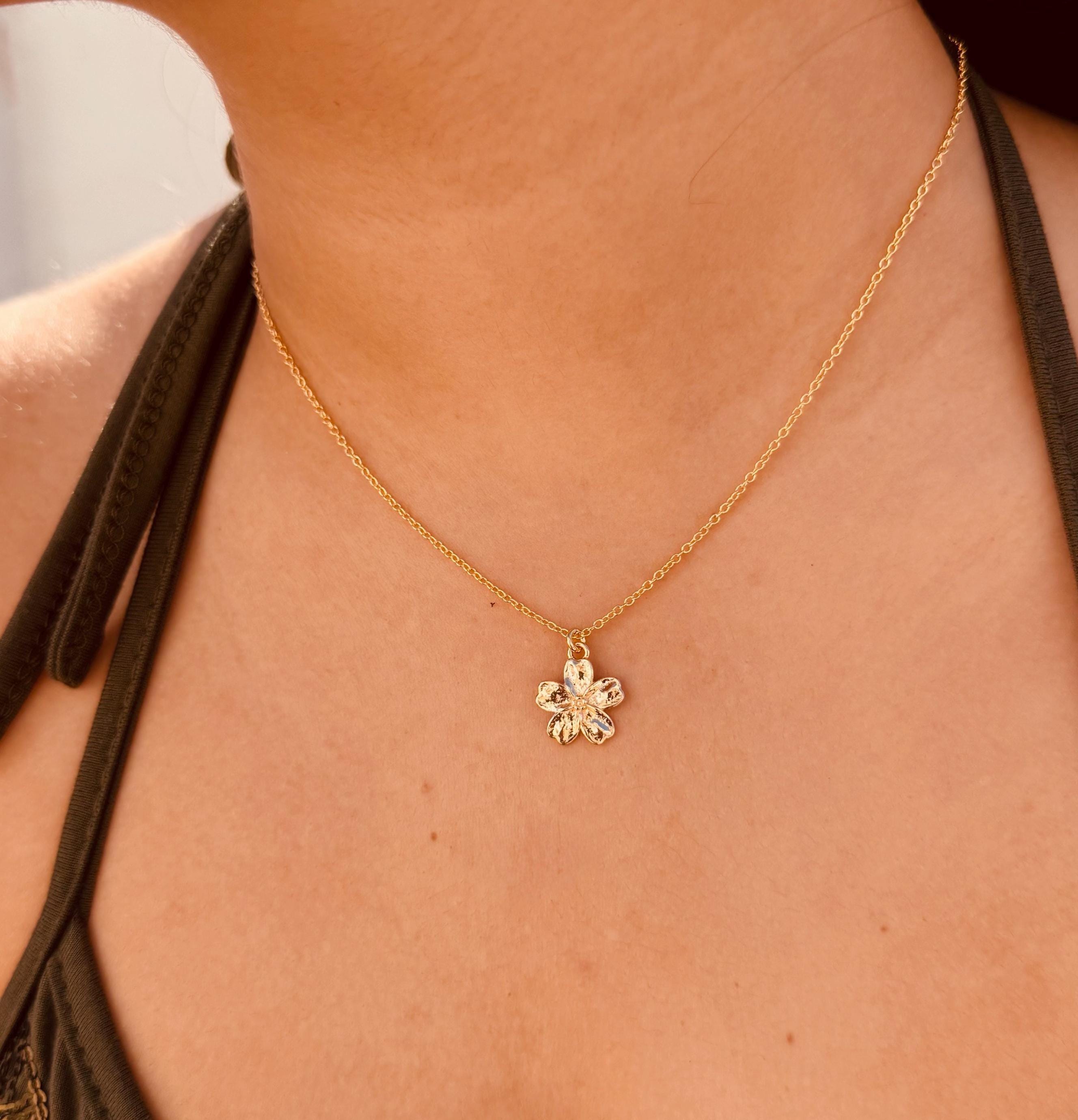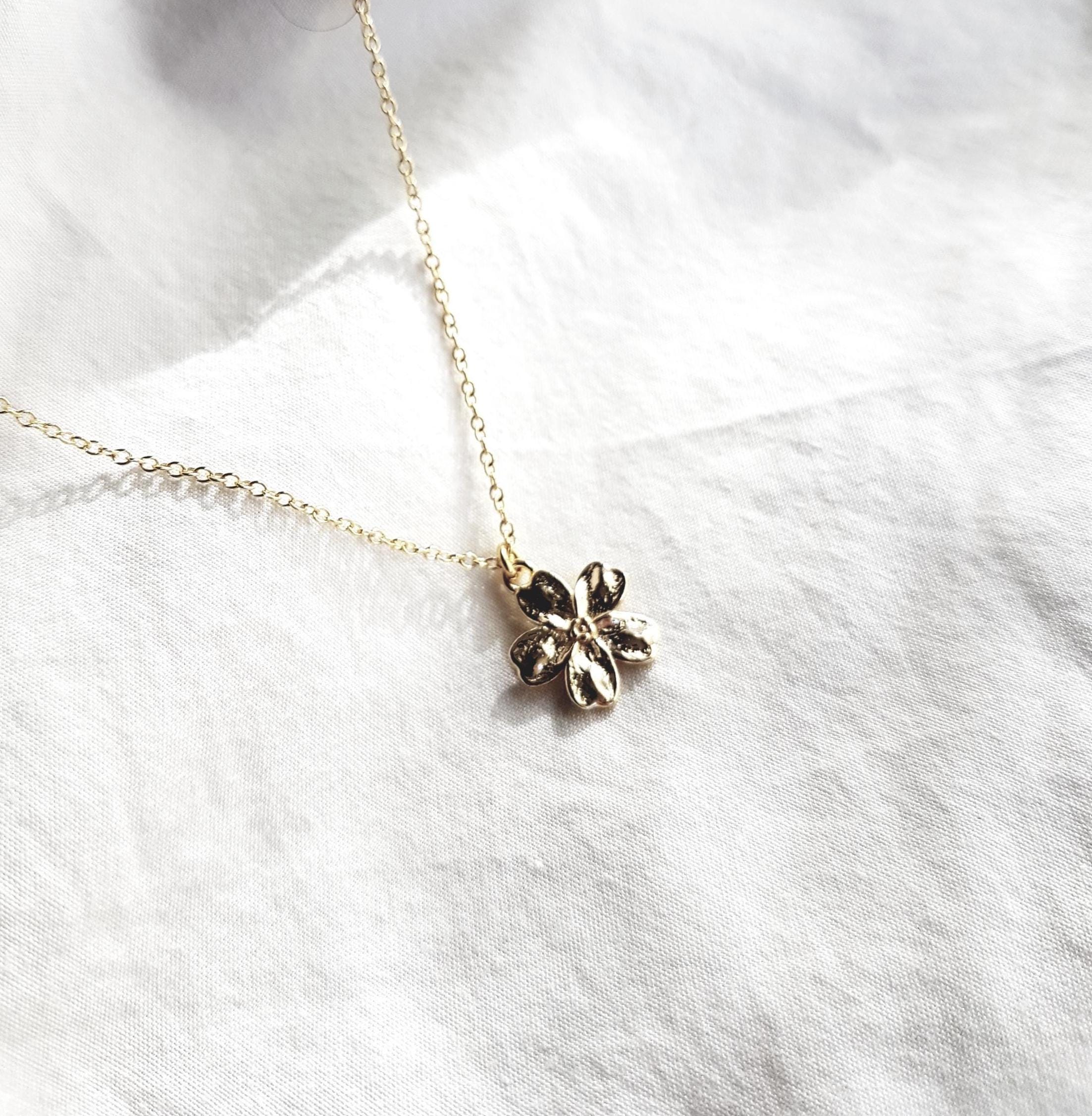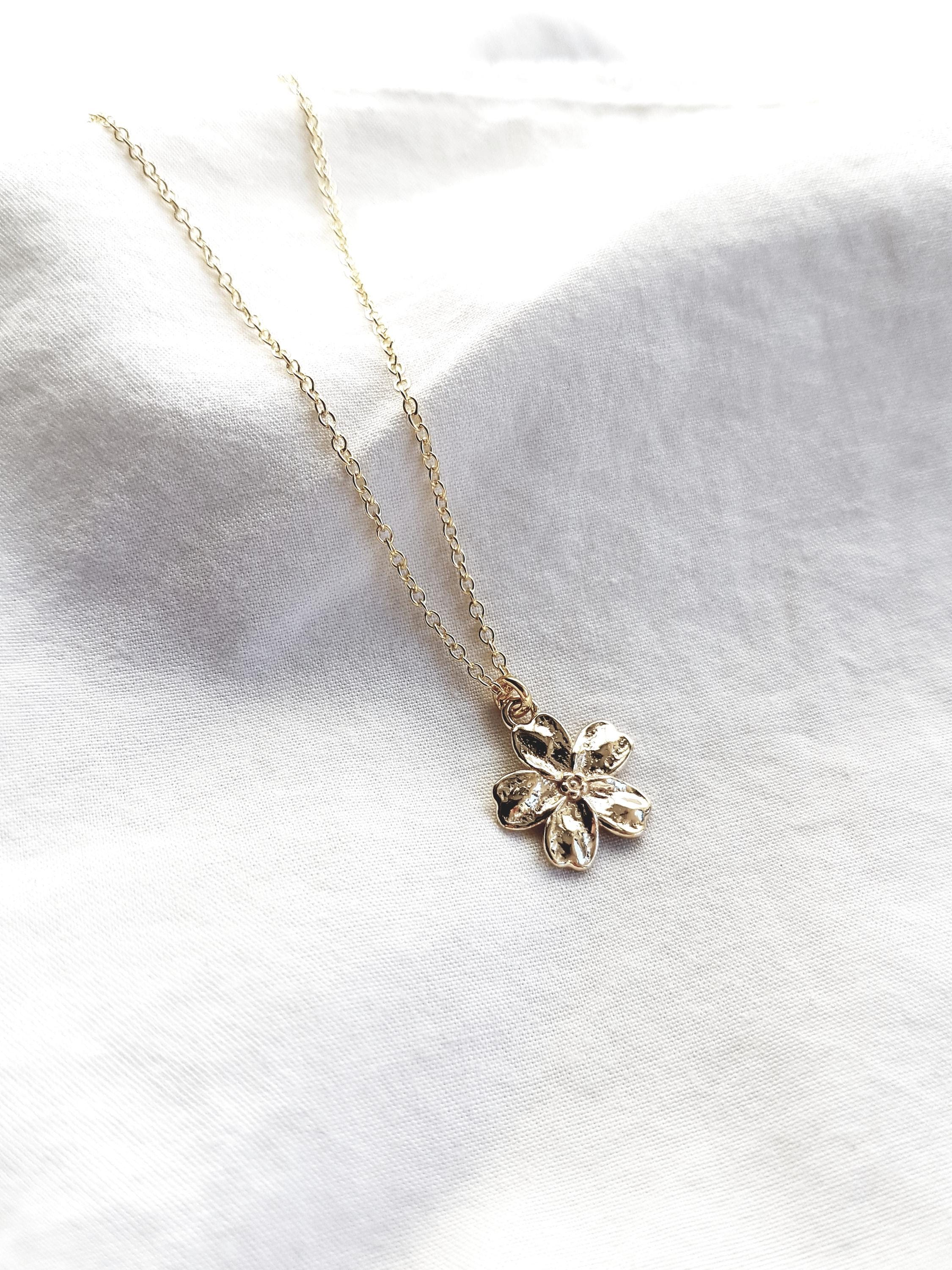 This minimalist floral necklace with a gold-plated pendant is a delicate everyday piece of jewelry and a stylish gift for women on birthdays, anniversaries, or special occasions.