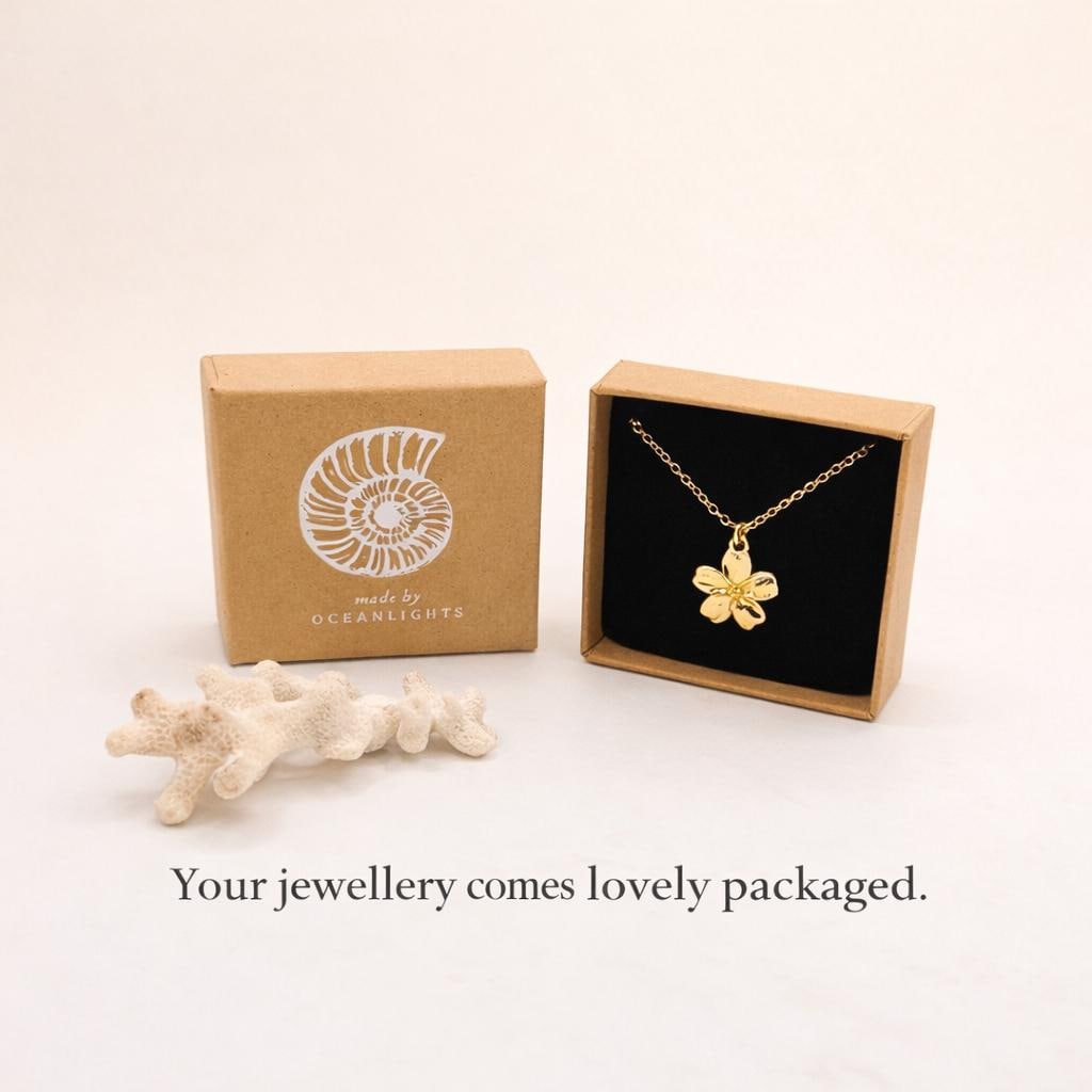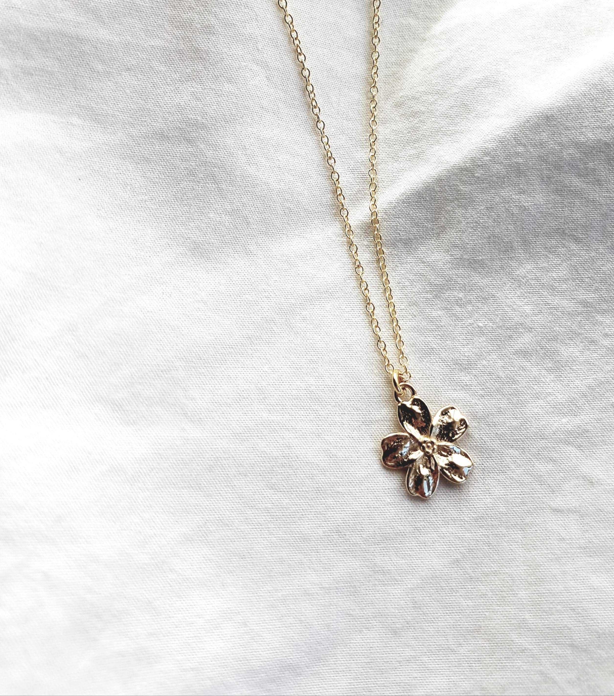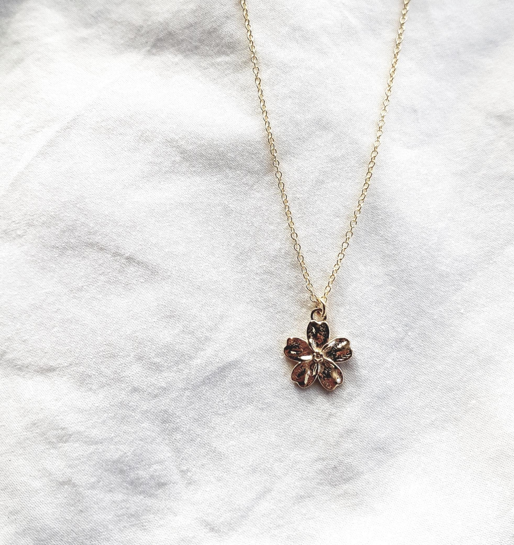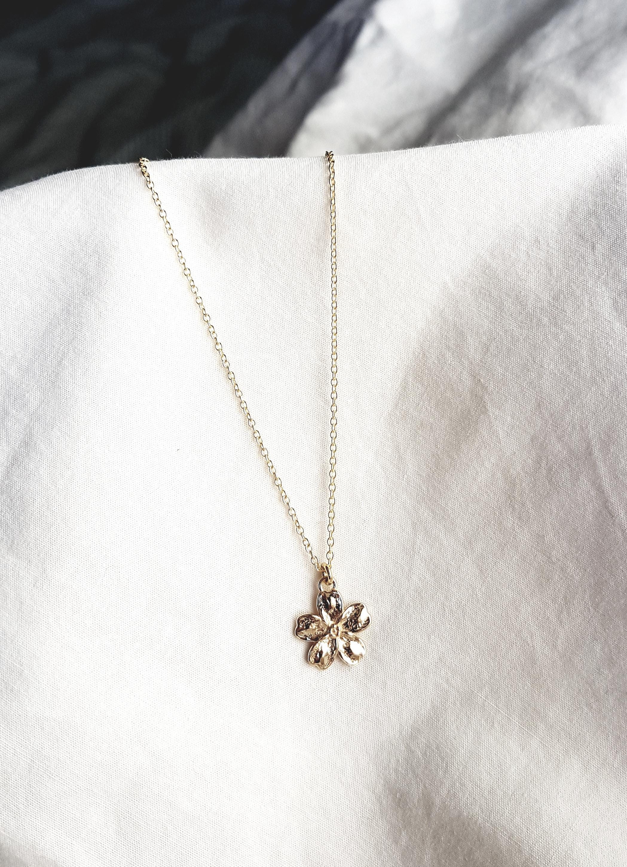A delicate gold plated flower pendant necklace with a minimalist design - perfect as a dainty everyday accessory or a meaningful gift for her.