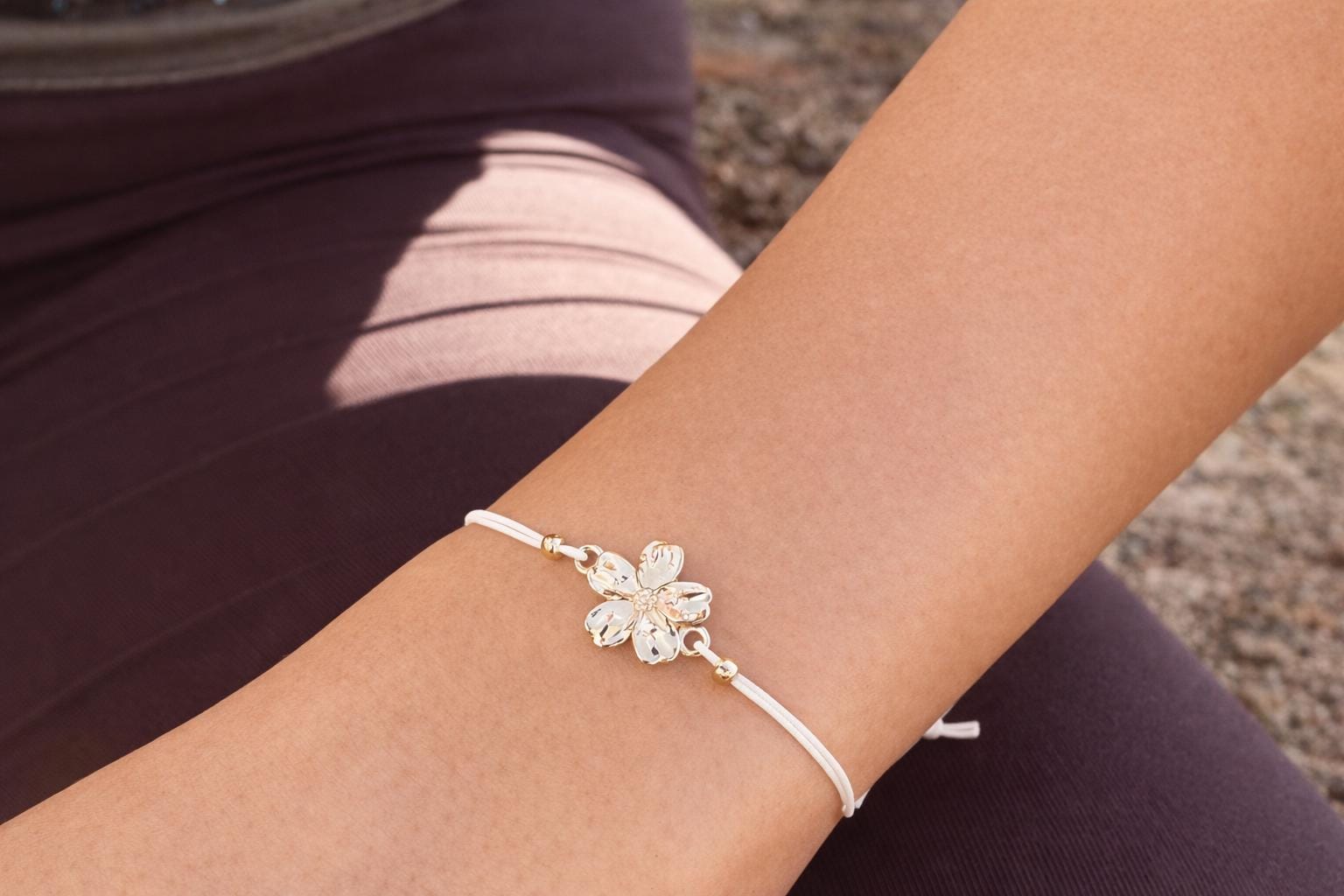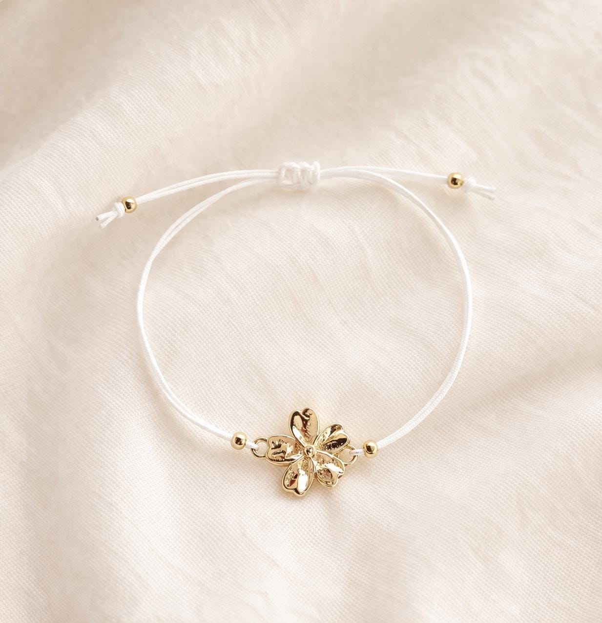 This delicate bracelet combines a gold-plated flower made of genuine 925 sterling silver with a fine, adjustable band. The flower symbolizes new beginnings, lightness, and natural beauty – a subtle piece of jewelry for everyday wear and special moments.