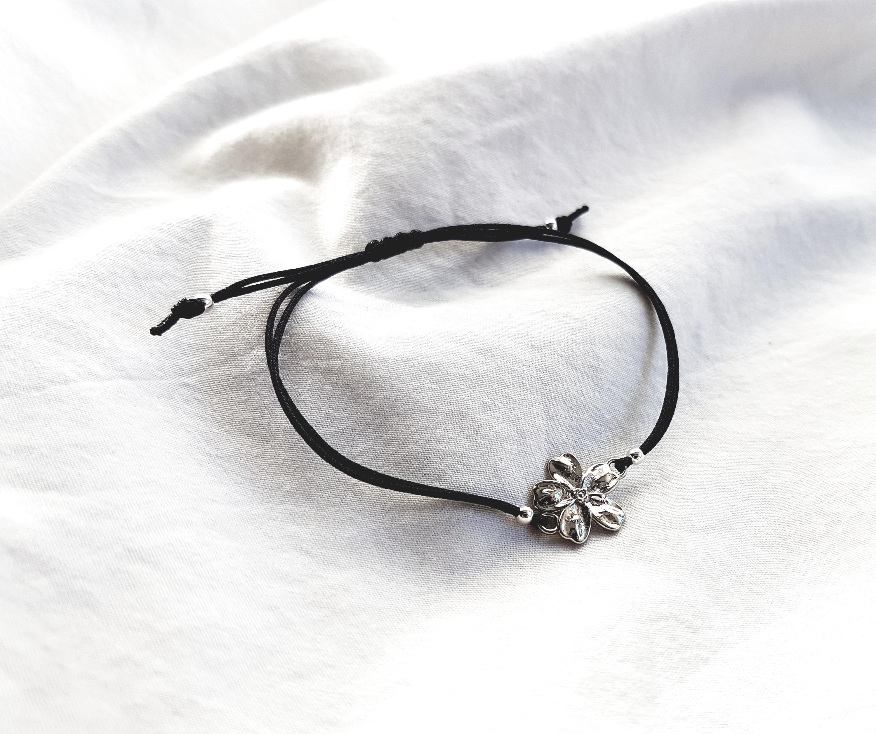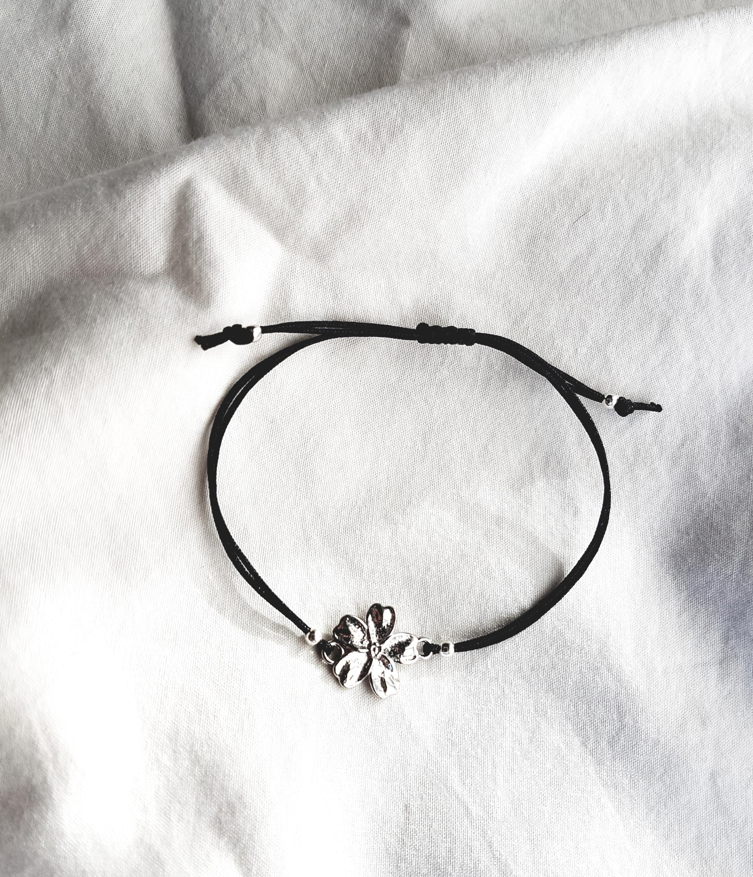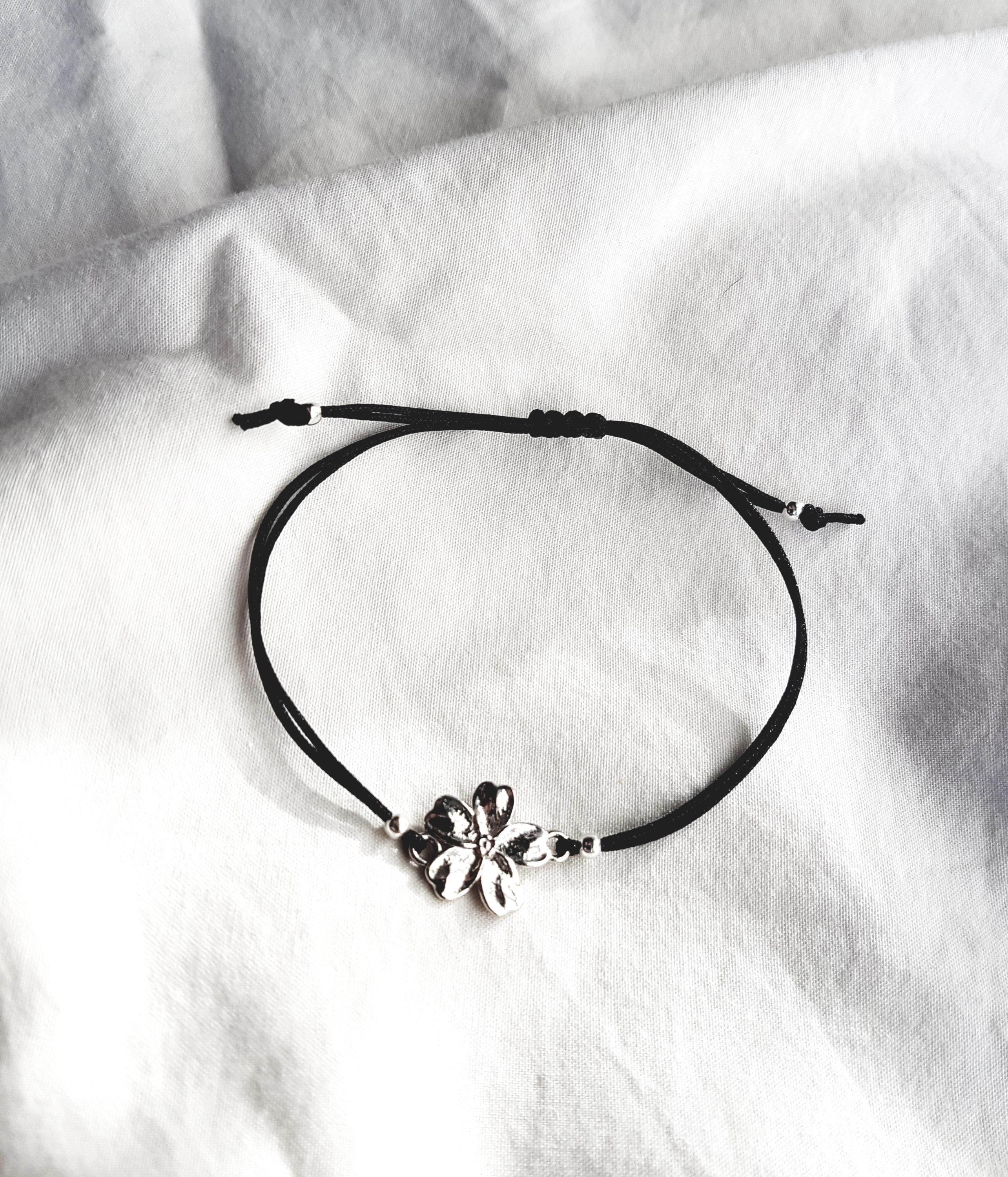 This delicate bracelet combines a flower made of genuine 925 sterling silver with a fine, adjustable band. The flower symbolizes new beginnings, lightness, and natural beauty – a subtle piece of jewelry for everyday wear and special moments.