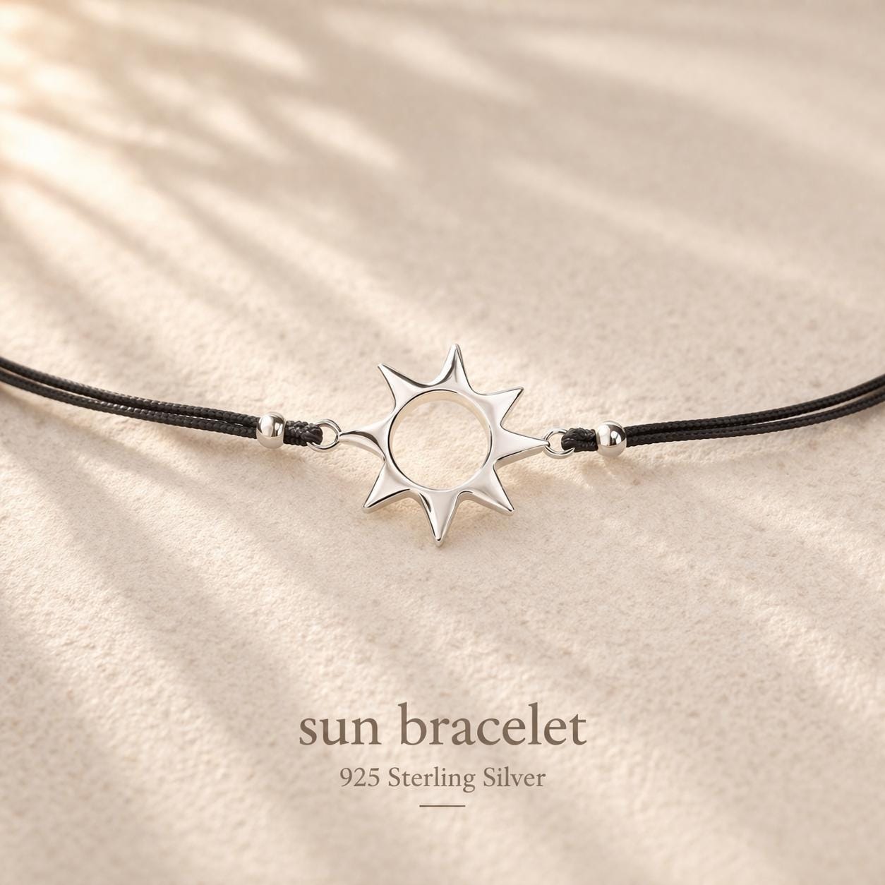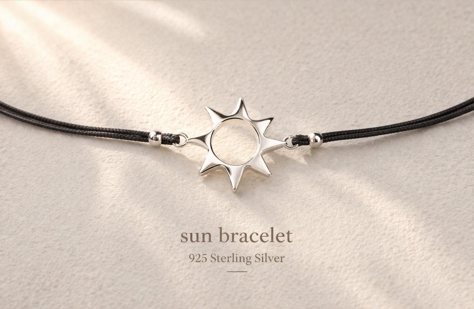 Minimalist sun bracelet made of 925 sterling silver on an adjustable band - a delicate silver bracelet inspired by the sea and sun, perfect as a gift for women and lovers of ocean and beach jewelry.