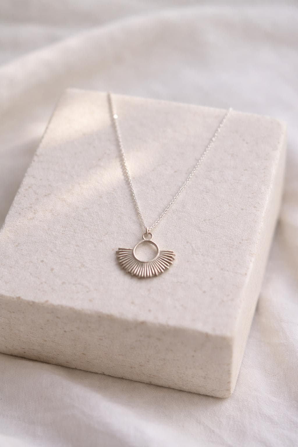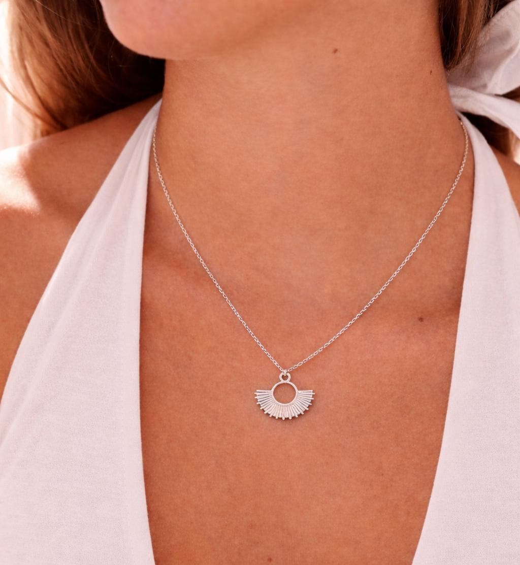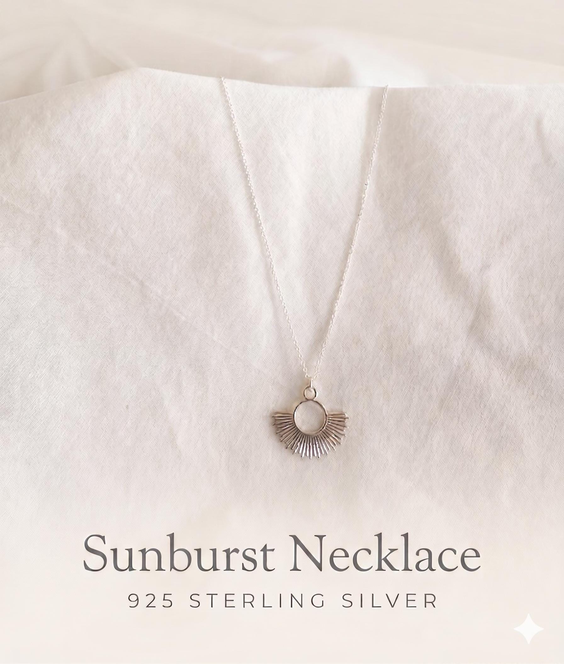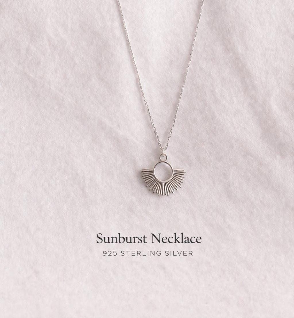 A delicate sunburst necklace crafted from 925 sterling silver – a timeless piece inspired by light, warmth, and effortless elegance.
