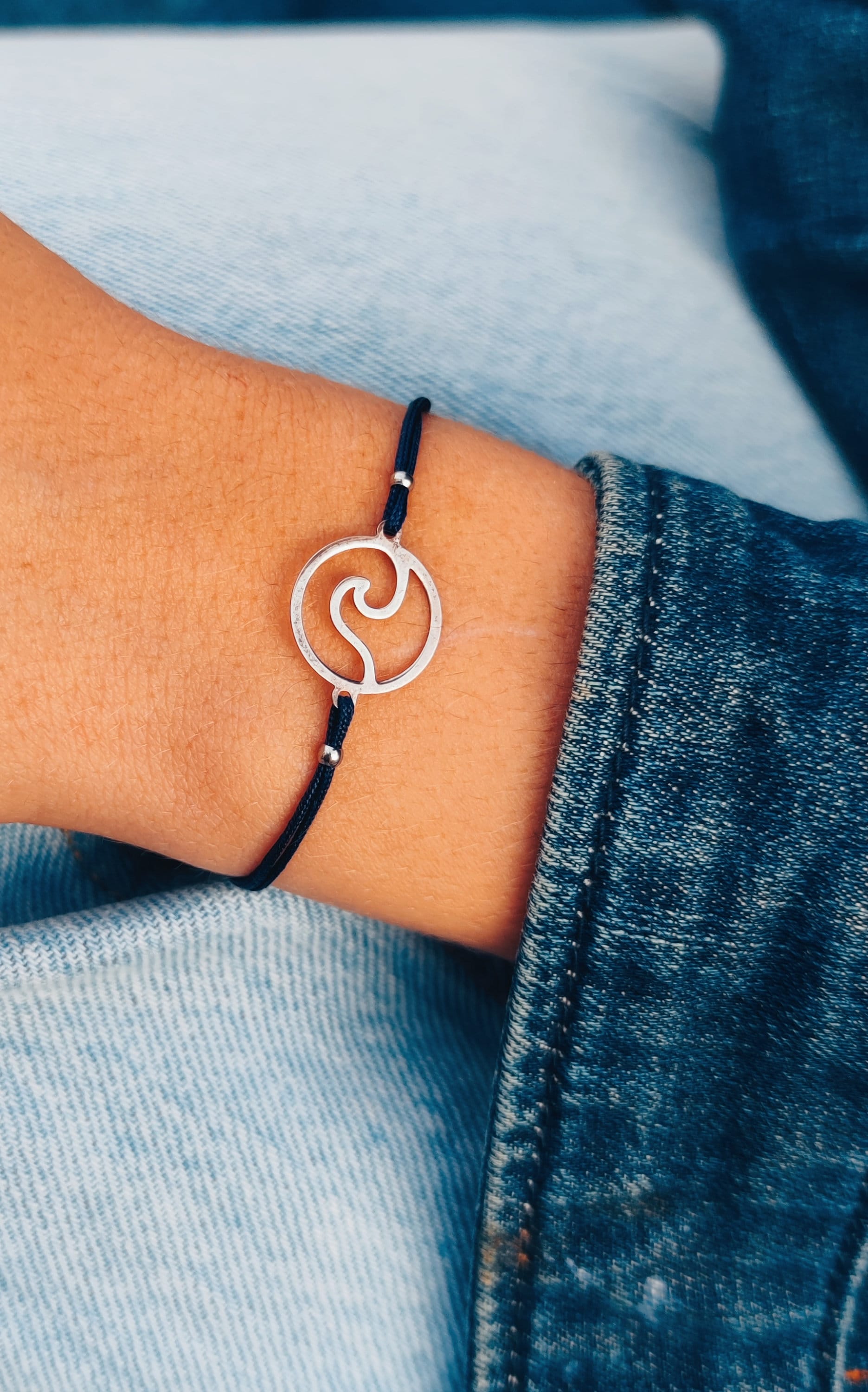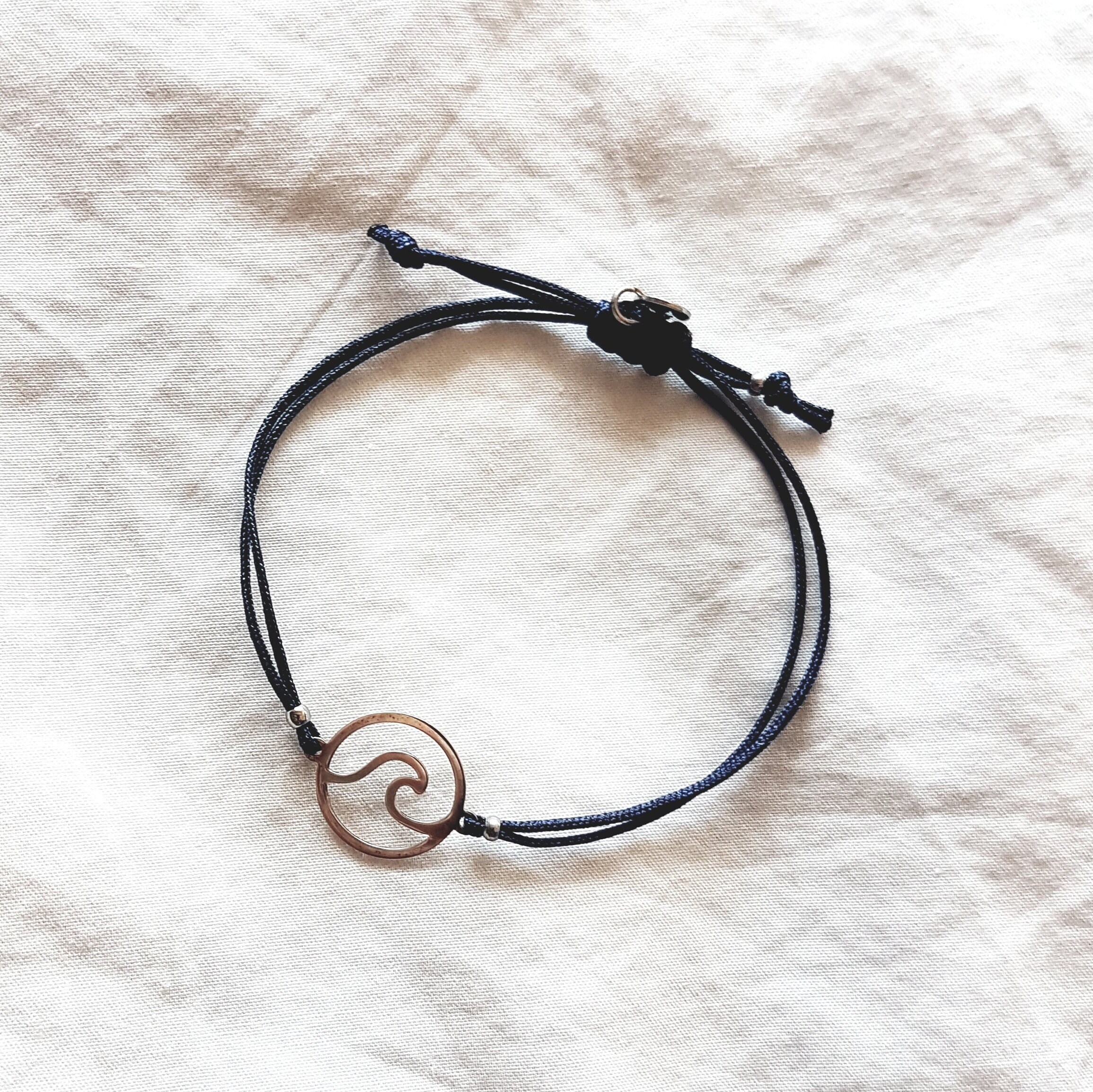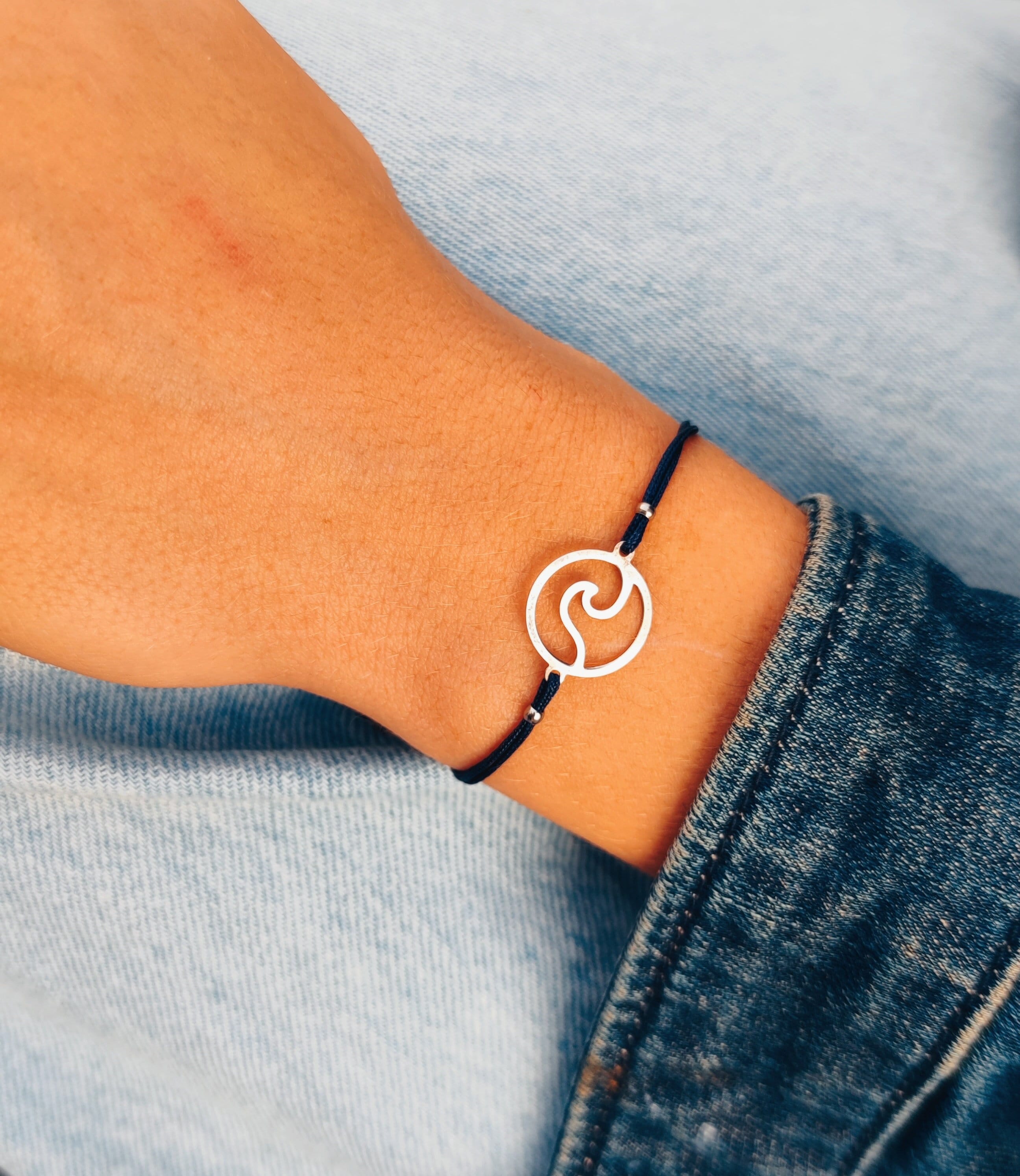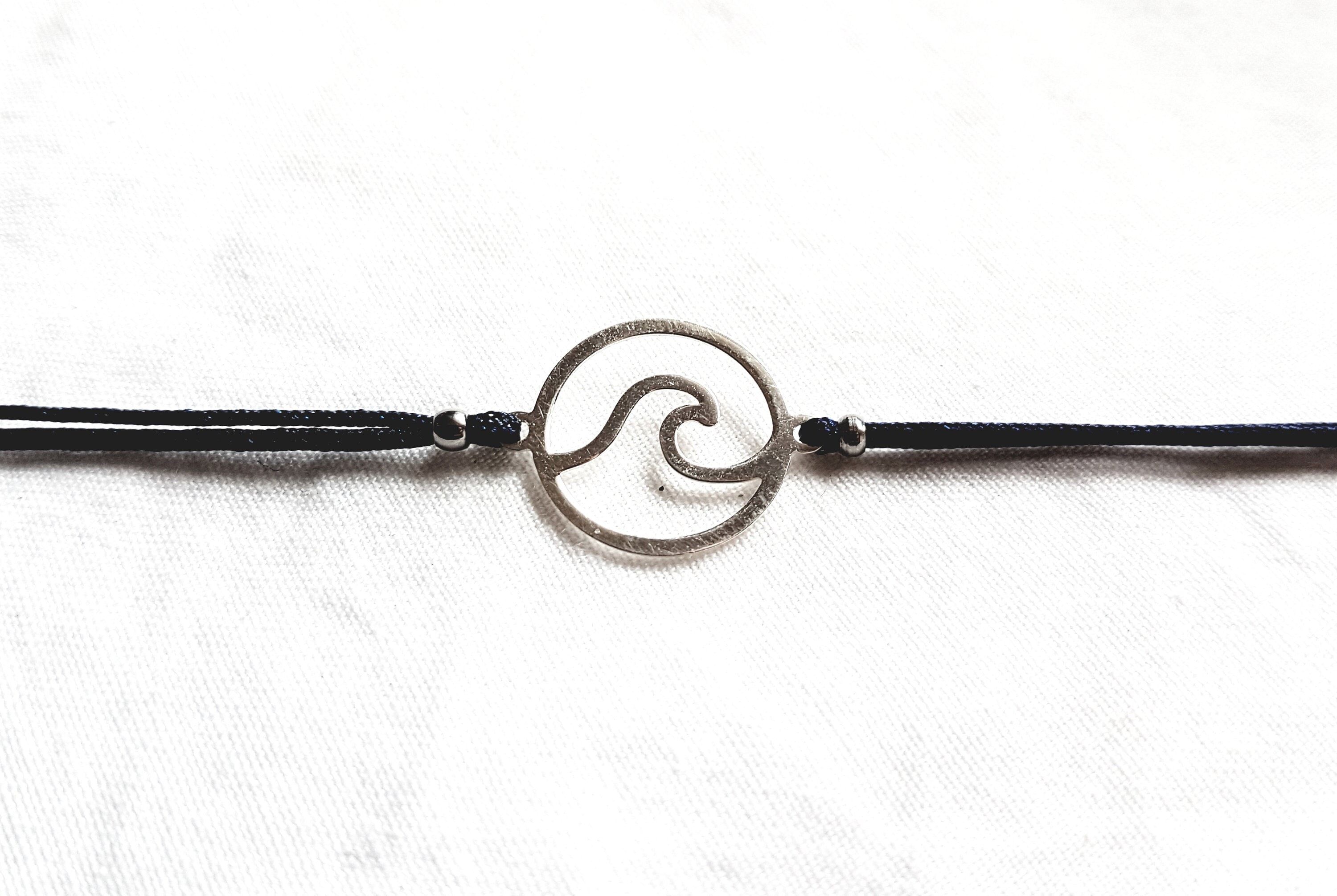 Beautiful bracelet with silver wave connector available in different colours. The bracelet can easily be made very small or large by the sliding clasp, but has a maximum size of approx. 22cm.The wave has a size of approx. 10mm.